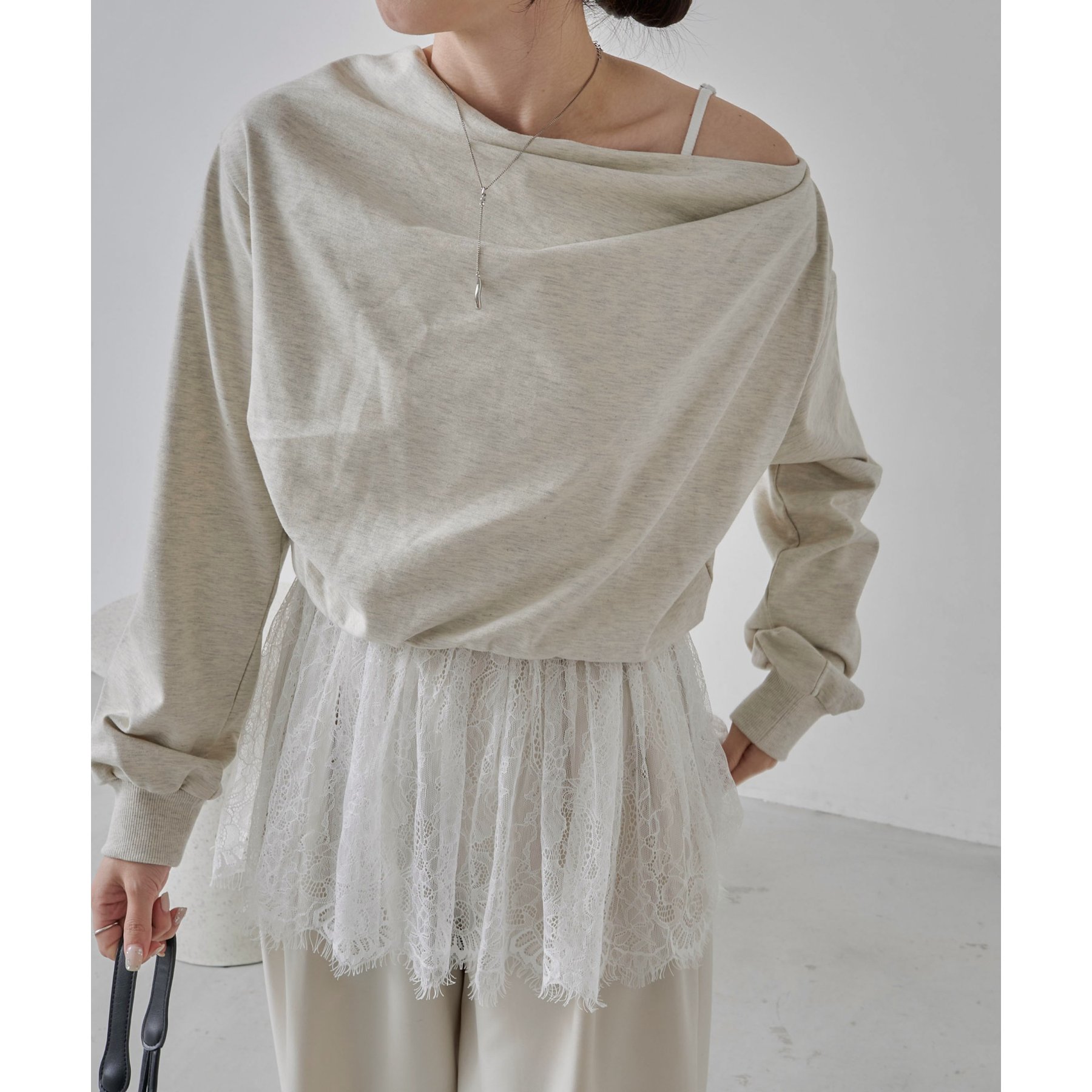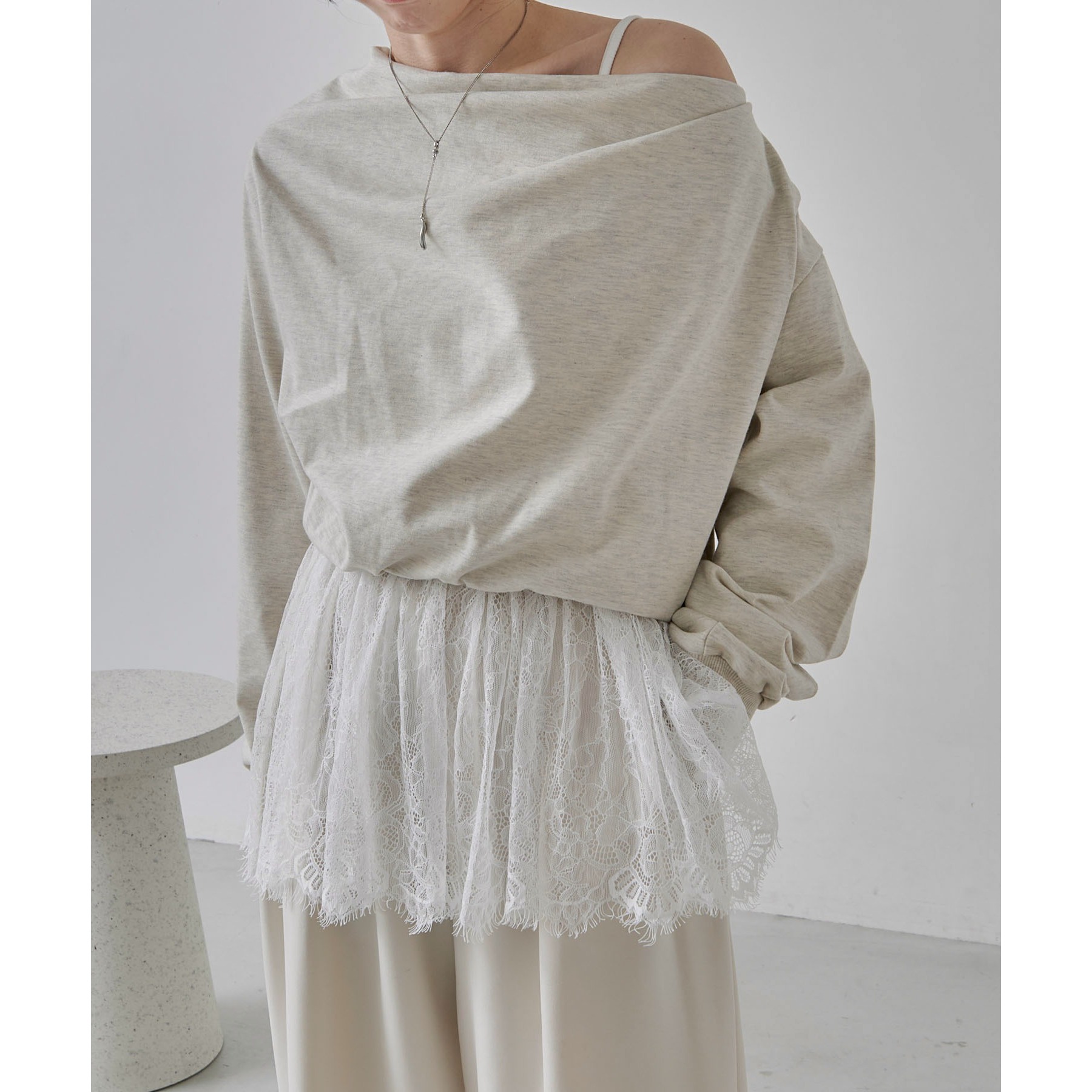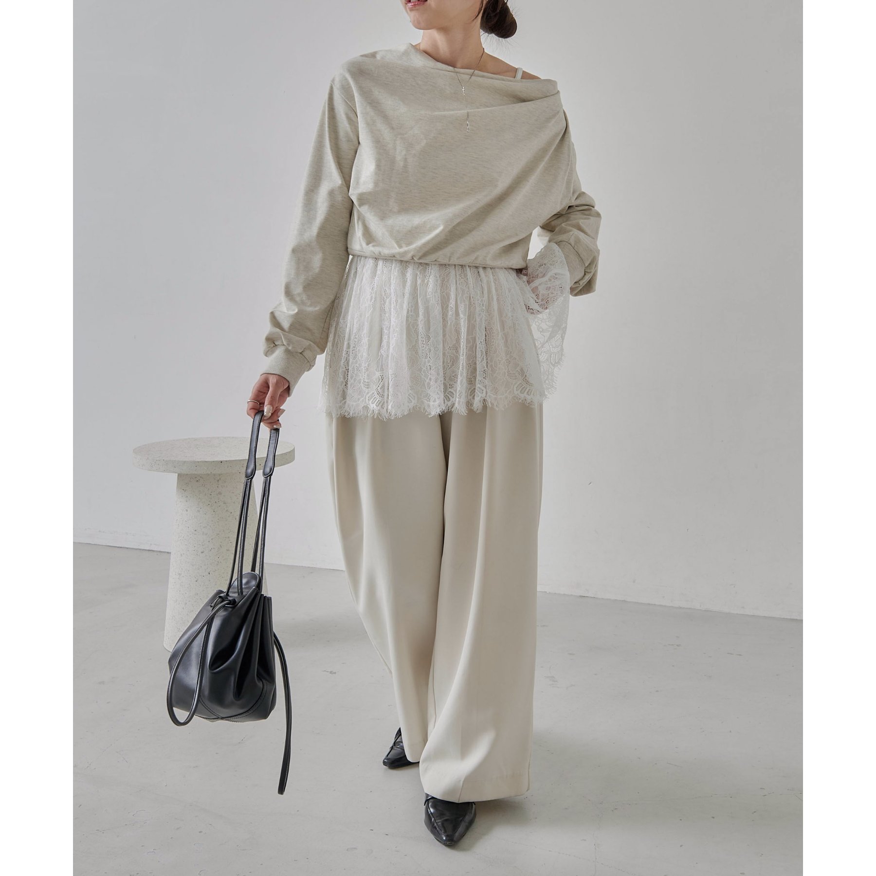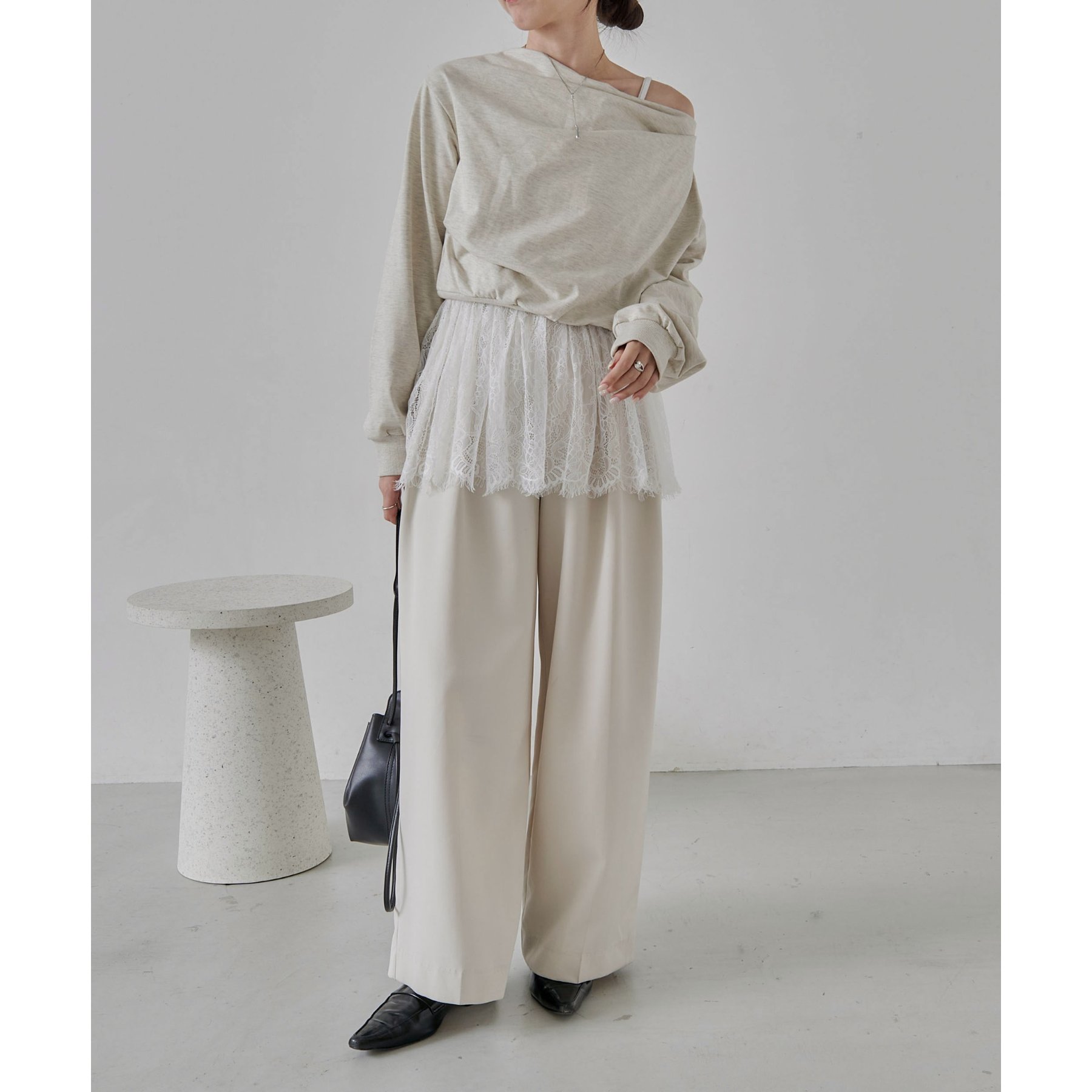 【グレージュ着用アイテム①②】pants:2タックワイドパンツ layered item:レースキャミ
