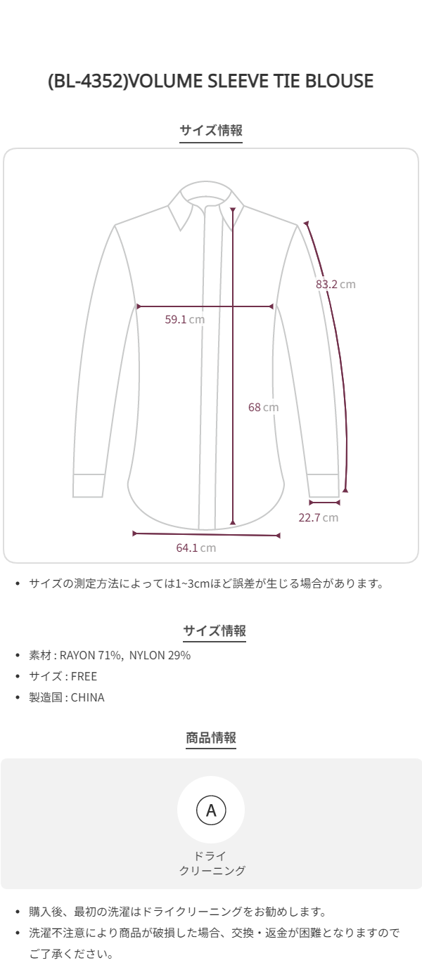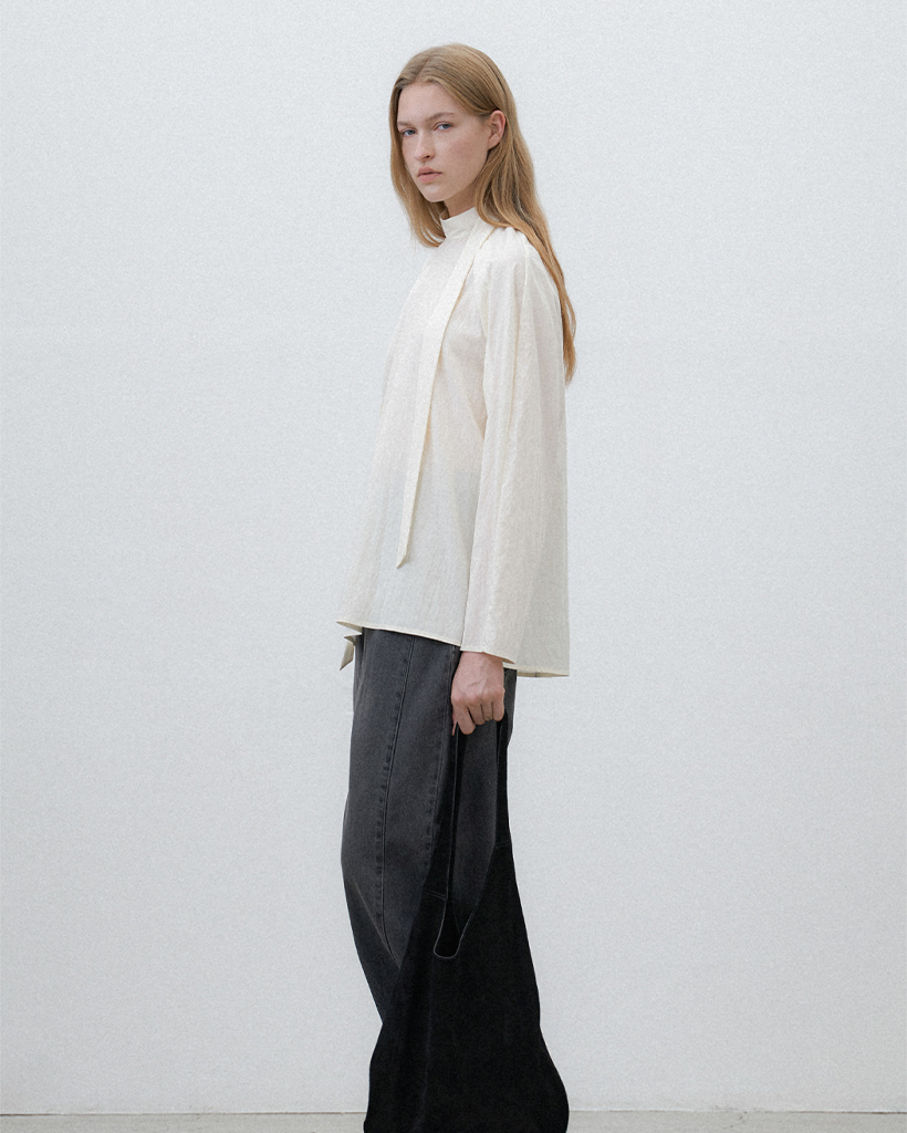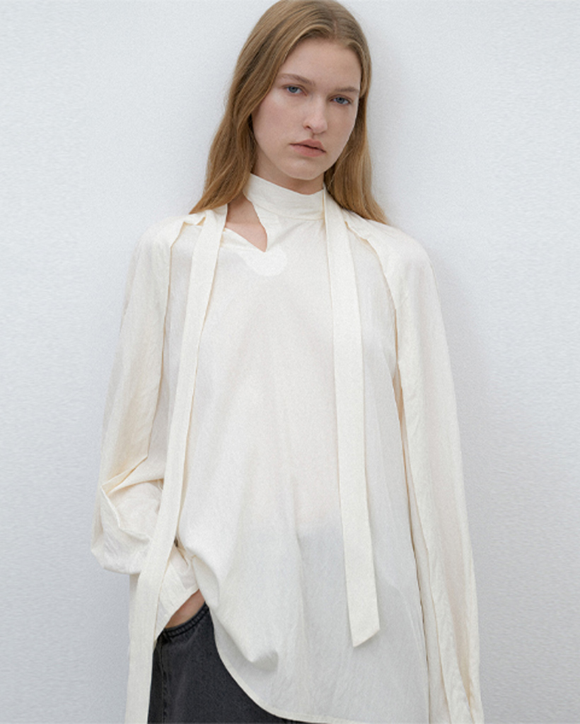 (BL-4352)VOLUME SLEEVE TIE BLOUSE
