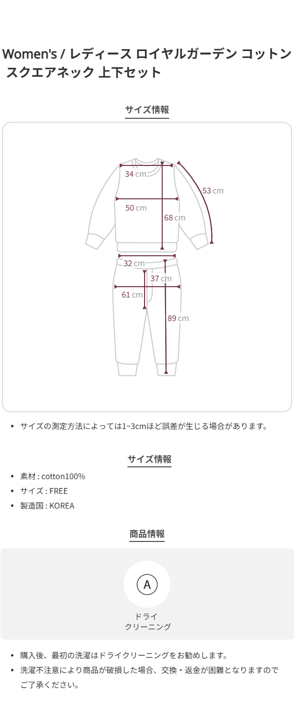 レディース ロイヤルガーデン コットン スクエアネック 上下セット