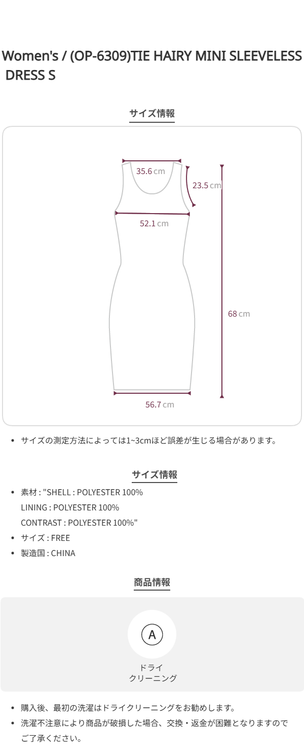 (OP-6309)TIE HAIRY MINI SLEEVELESS DRESS S