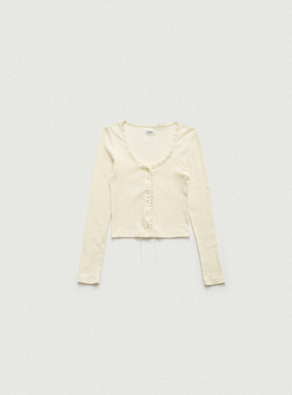 【購入特典】[Influencer pick] Yellow Ravioli Lace-Trim Button-Up Top
