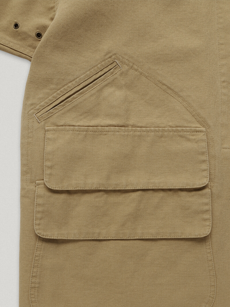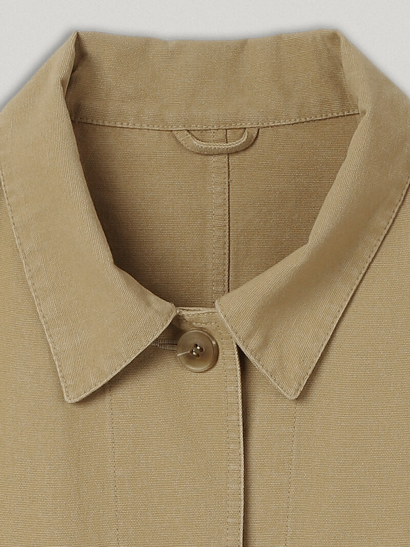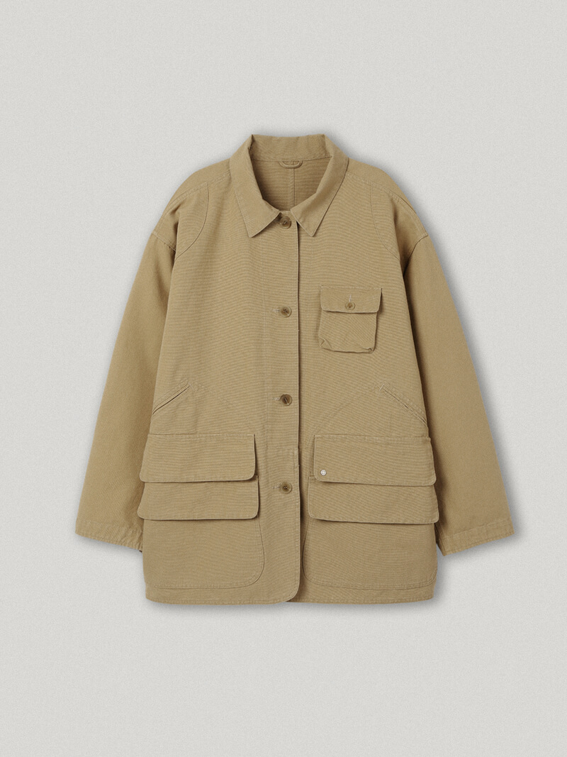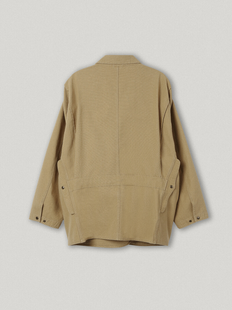 官能的なデザインとオーバーサイズのフィット感で魅力を引き立てるハーヴィーのワークジャケット。これは100%丈夫なプレミアムコットン素材で作られており、その質感を活かして良い季節や雨季にぴったりのアウターウェアです。各ディテールを活かしたワークウェアの要素は目を引くもので、対照的な襟デザインとダブルフラップポケットのディテールは、輪郭、パンチアイレット、スナップボタン、リベットなどのしっかりとしたディテールを活かし、官能的なワークウェアジャケットの魅力を存分に感じられます。ジャケットの内側は裏地なしで完璧かつきちんとデザインされており、ポケットラインとバックラインのパンチアイレットを活かしたバックルベルトデザインが特徴です。 スムームードのロゴが刻まれたリベットとスナップボタンが丁寧に仕上げられています。官能的でクールな要素が詰まっており、ジャケット自体のクールさを感じられます。シンプルで洗練された深いベージュのトーンがハービケッテの魅力をさらに引き立てています。