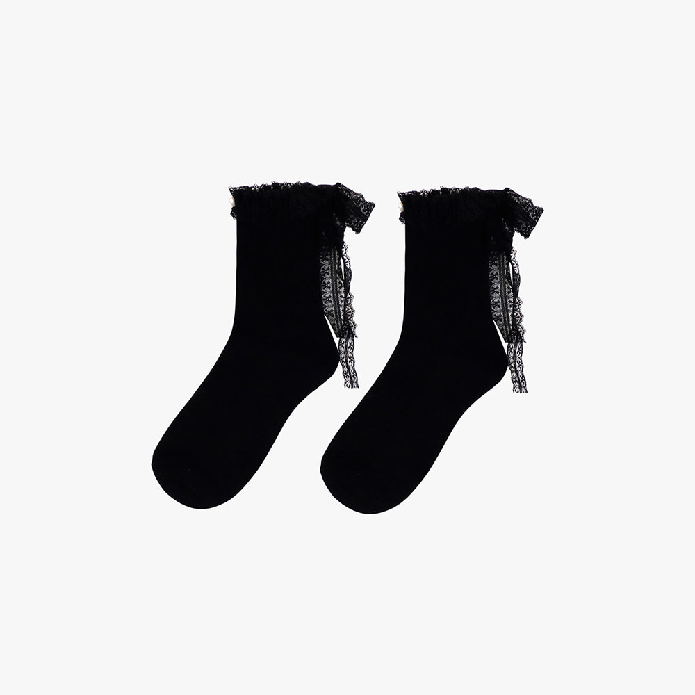 [2EA 1SET] BOUQUET LACE SOCKS_BLACK