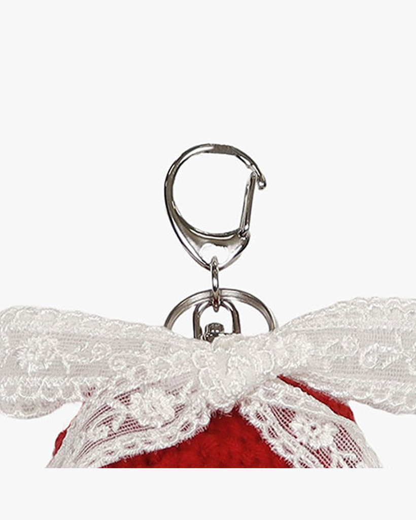 CROCHET HEART RIBBON KEYRING_RED