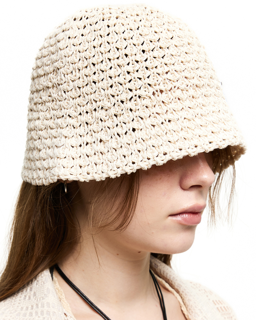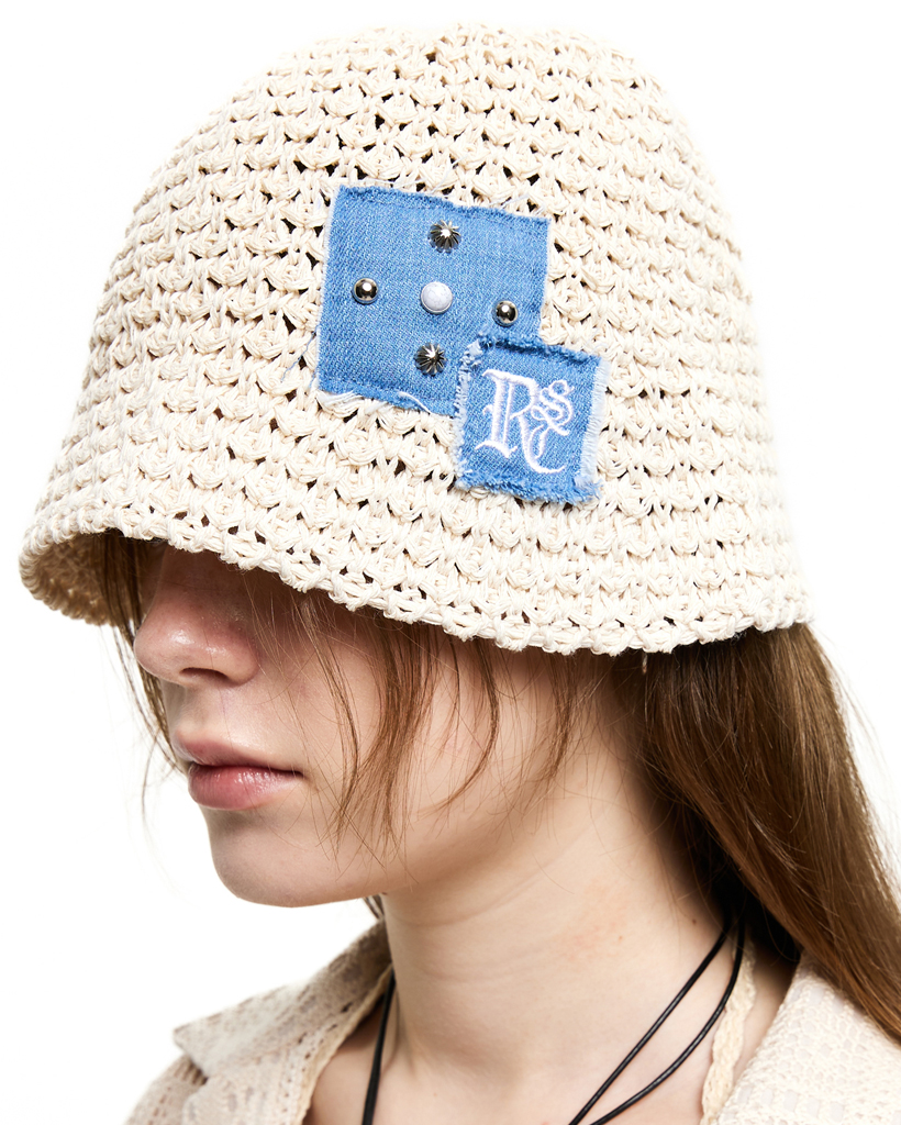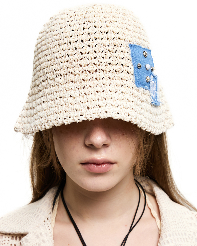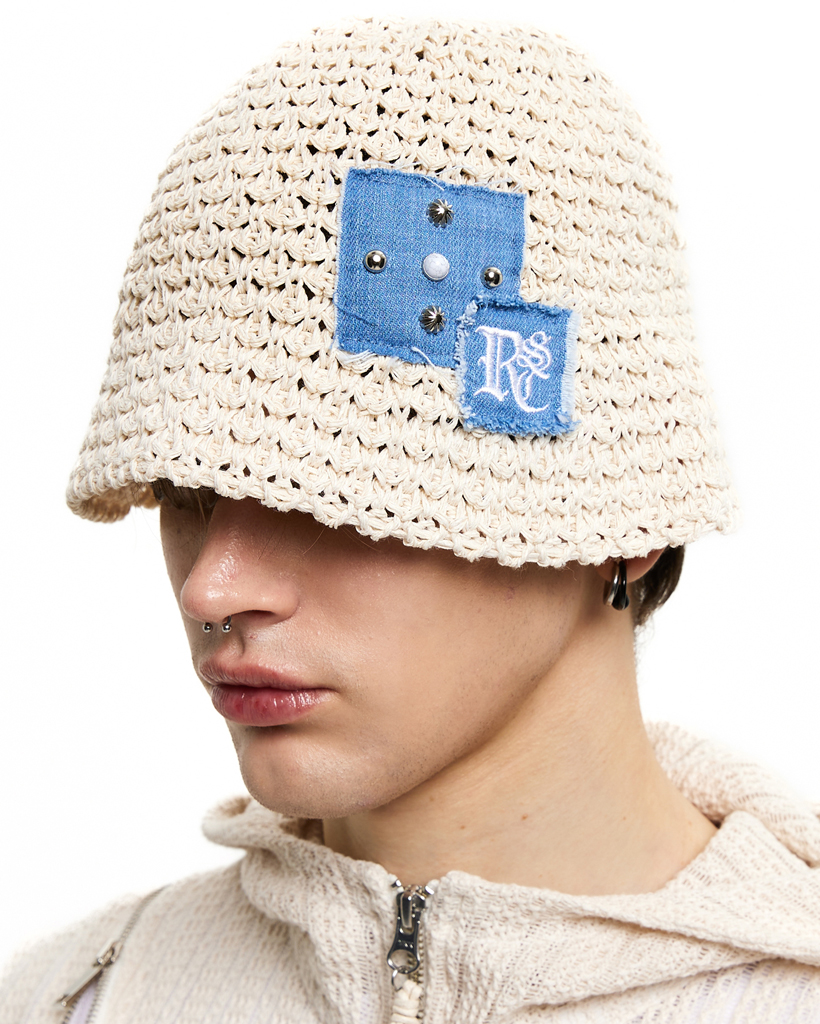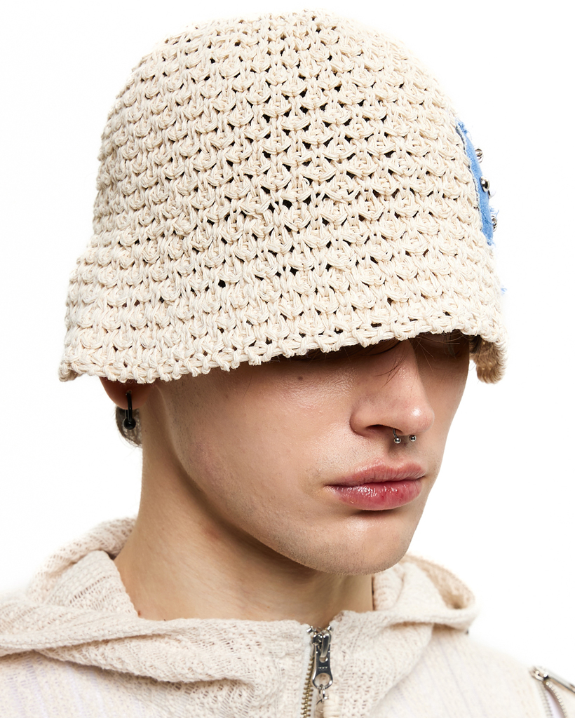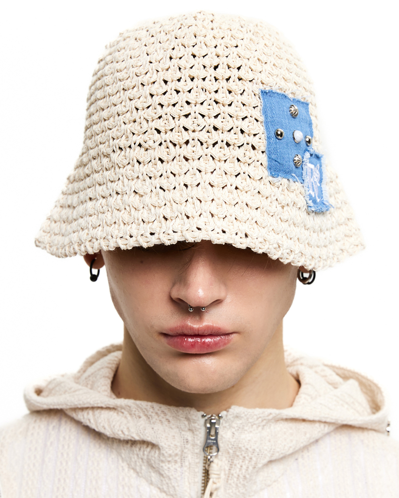 RIVET PATCHED KNIT BUCKET HAT - IVORY