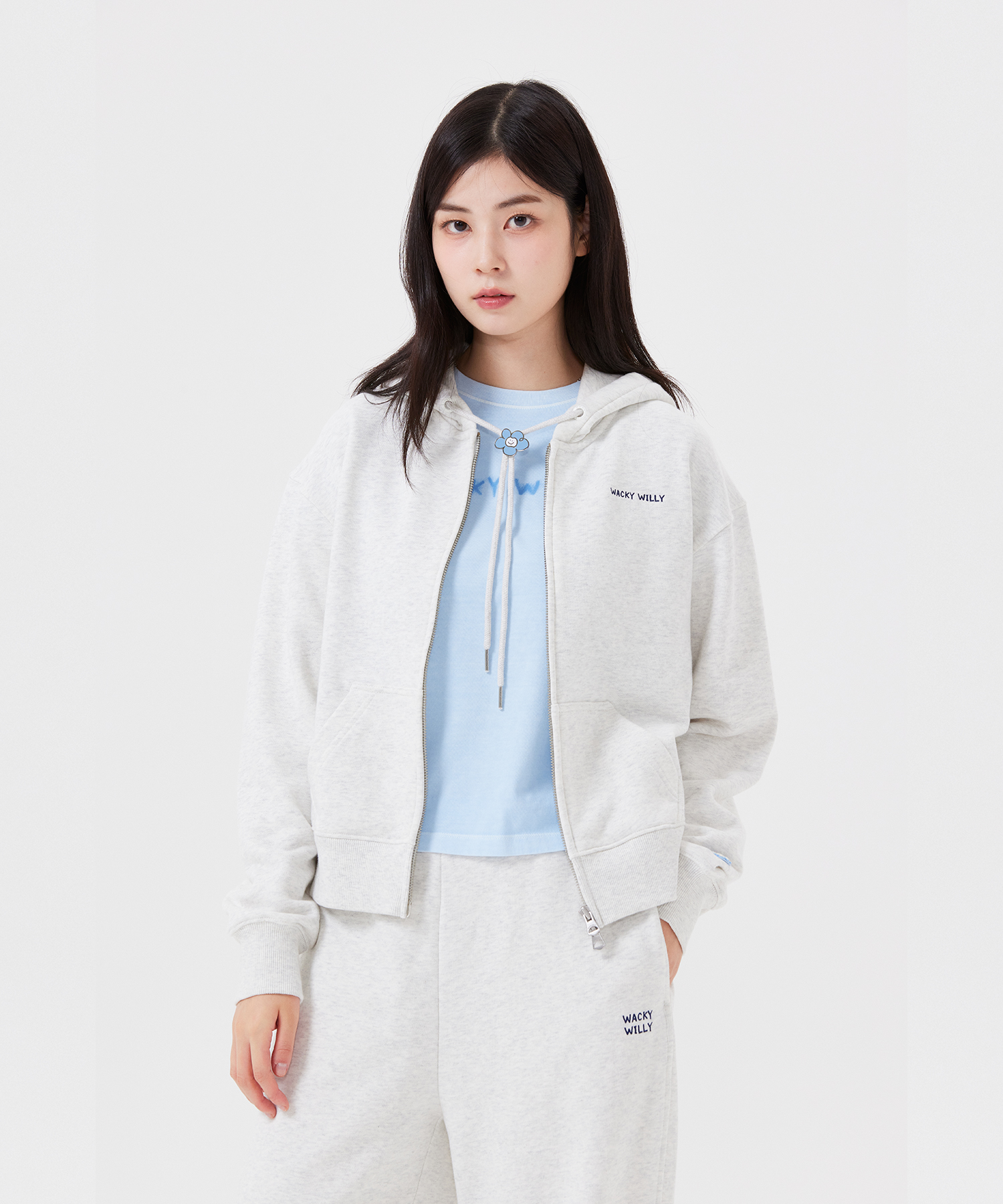 Women's typo logo crop hooded sweatshirt in oatmeal