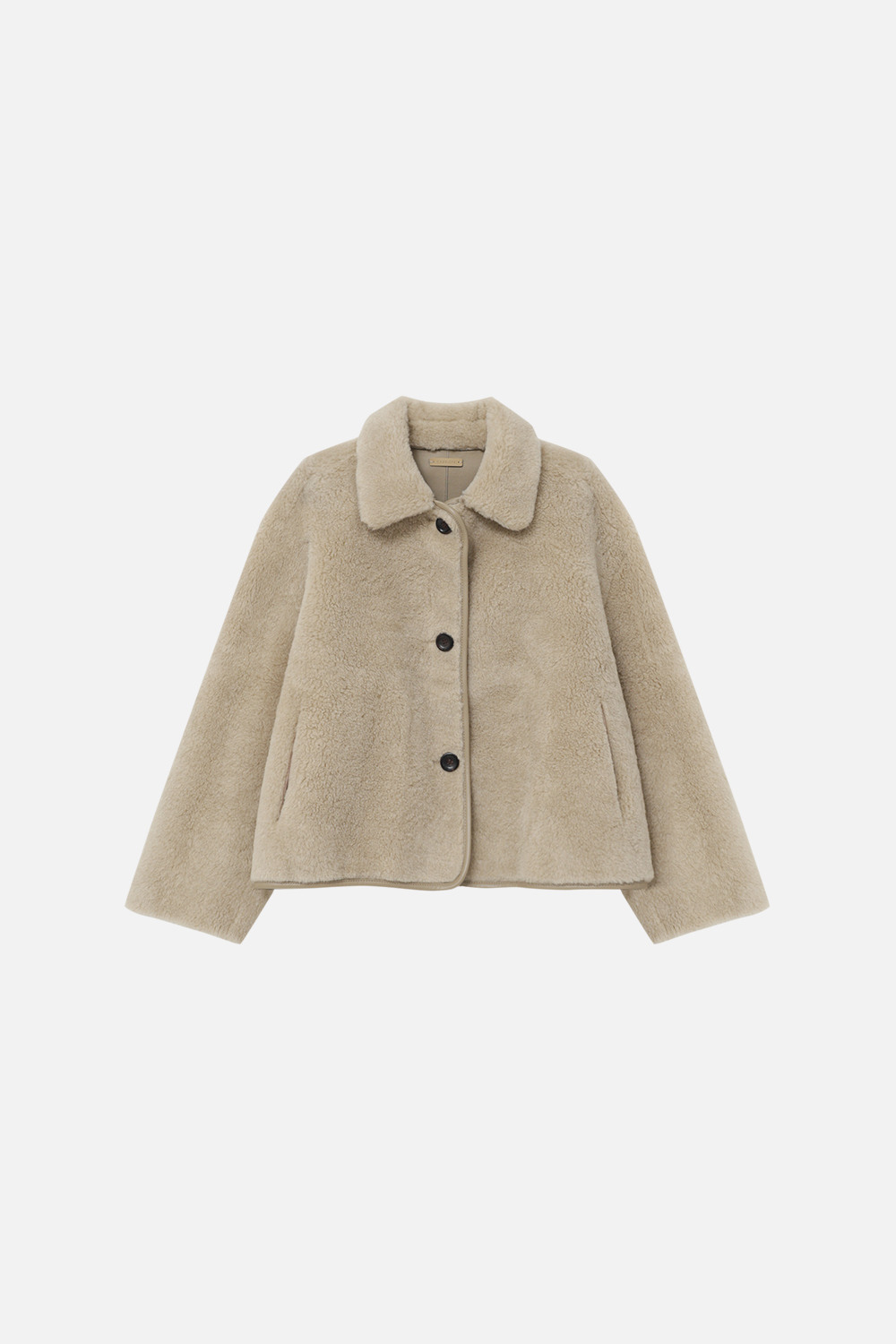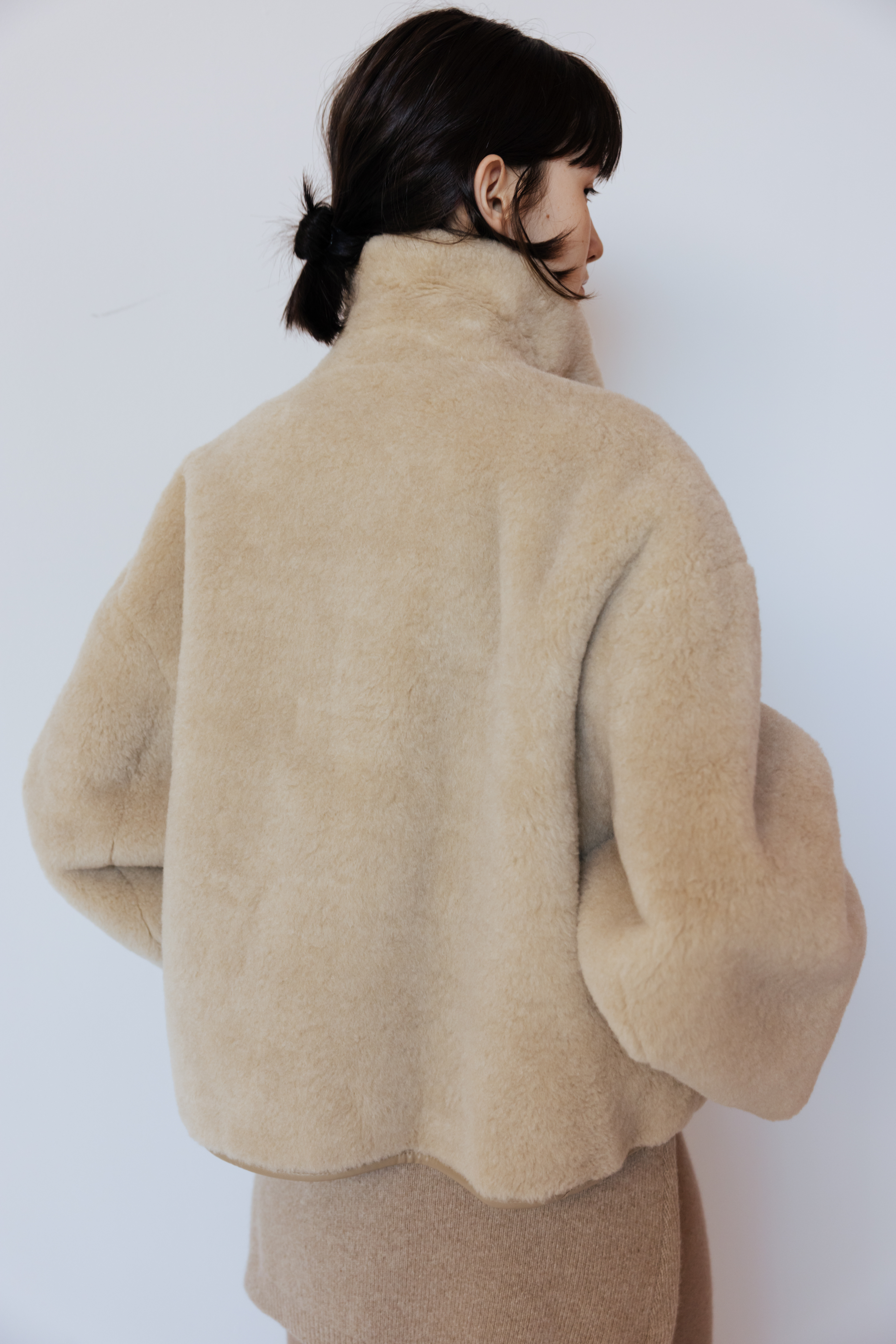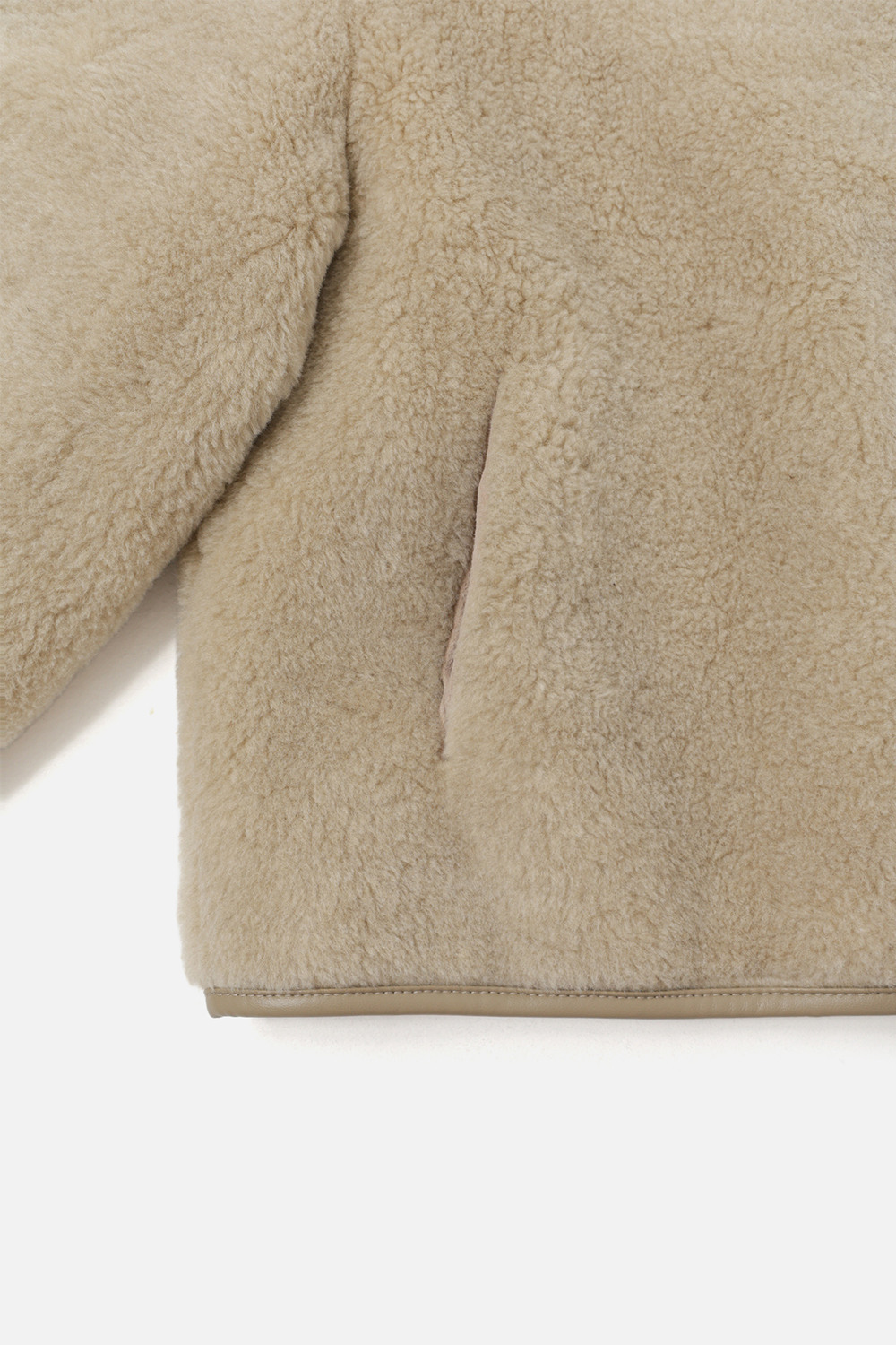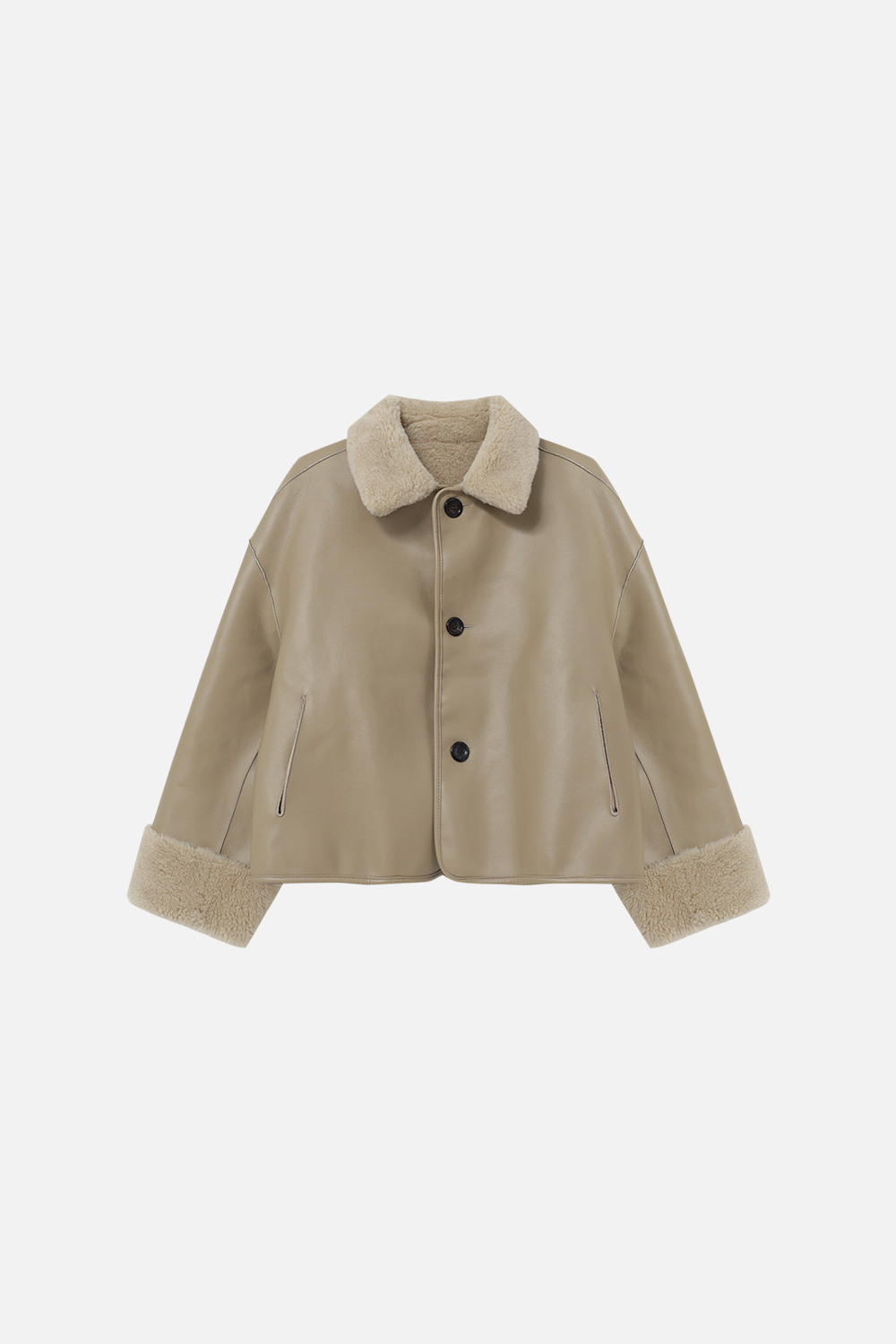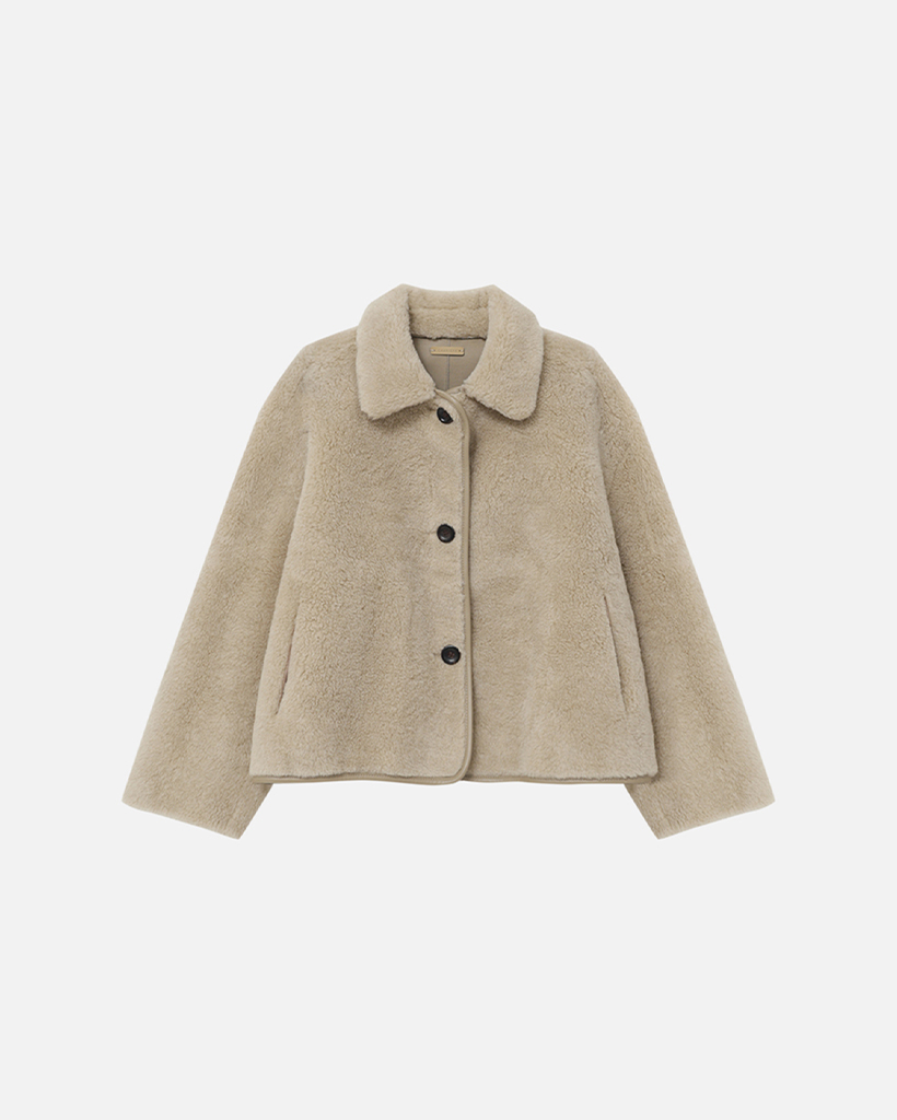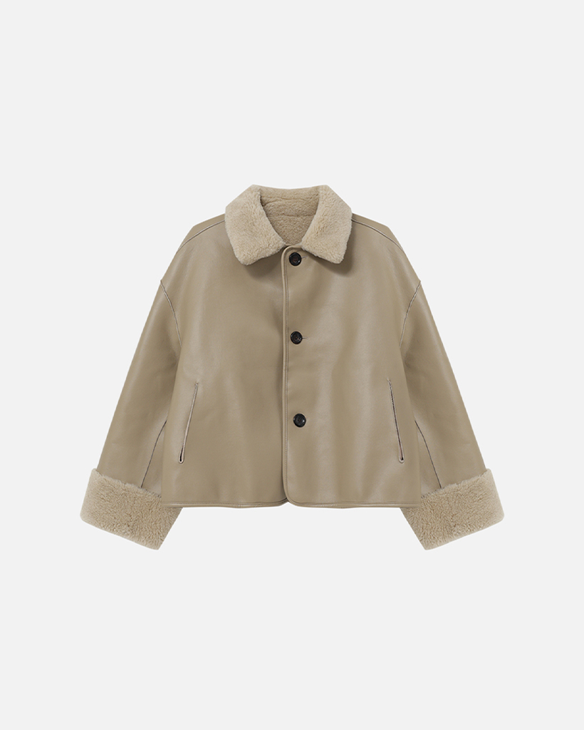 LAMBS WOOL REVERSIBLE SHORT SHEARLING JACKET - BEIGE