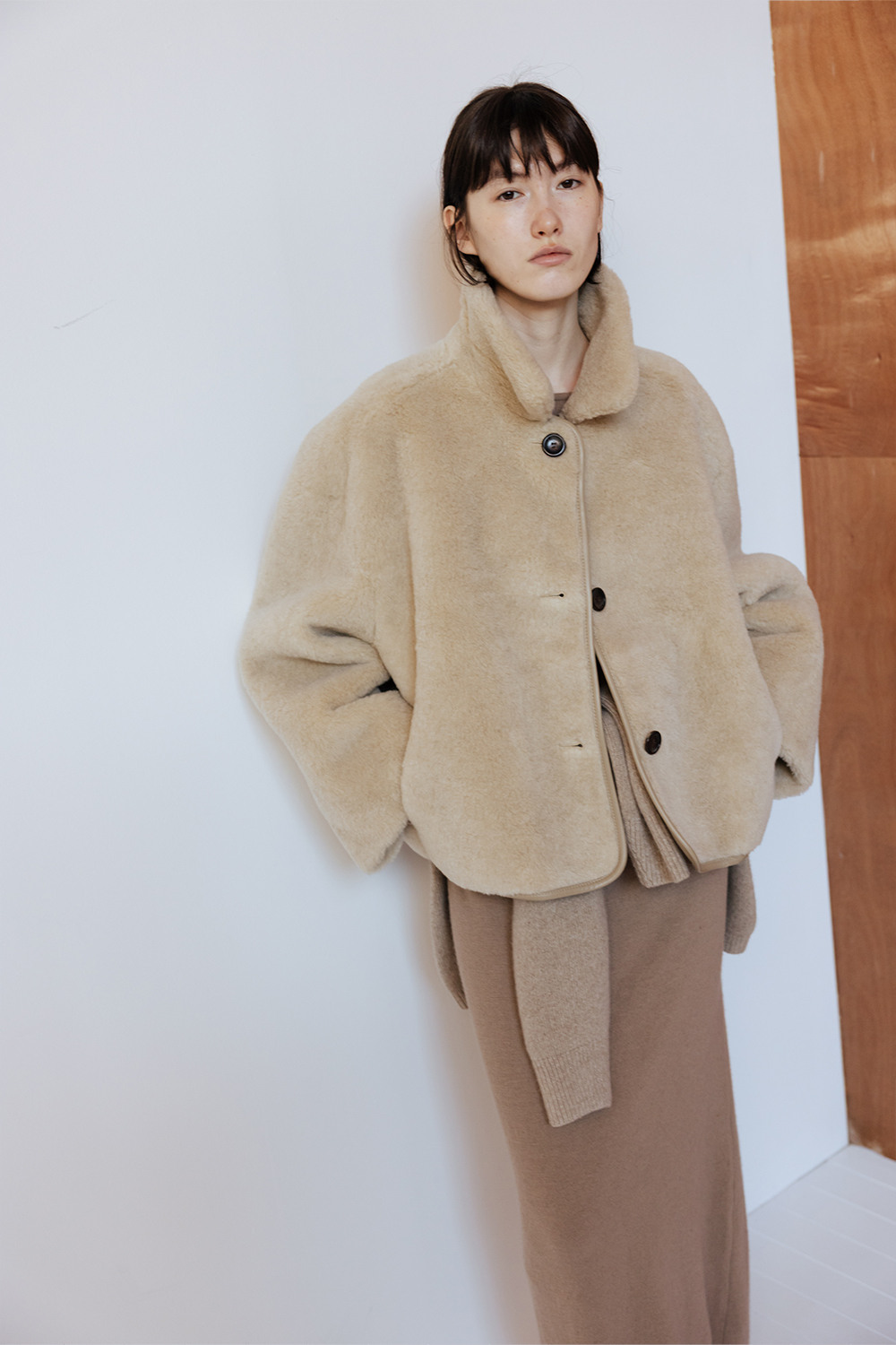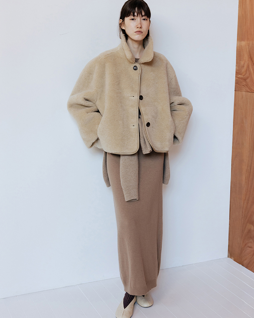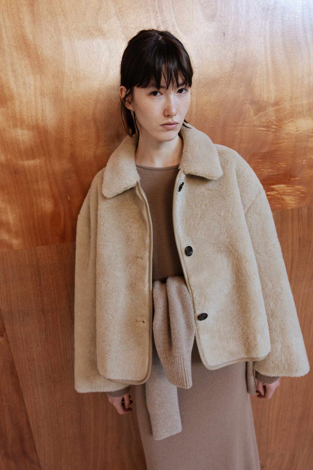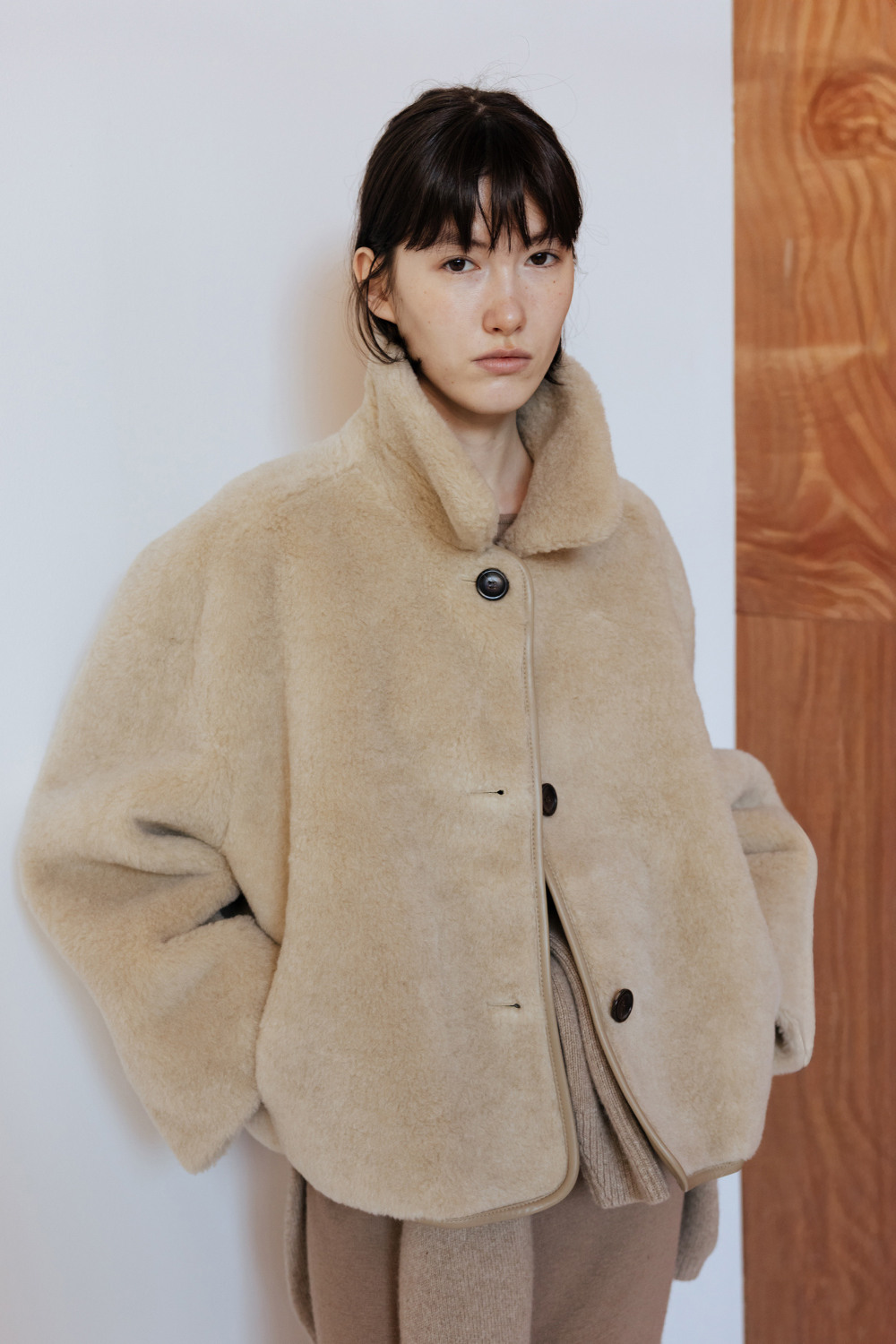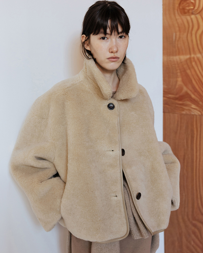 LAMBS WOOL REVERSIBLE SHORT SHEARLING JACKET - BEIGE