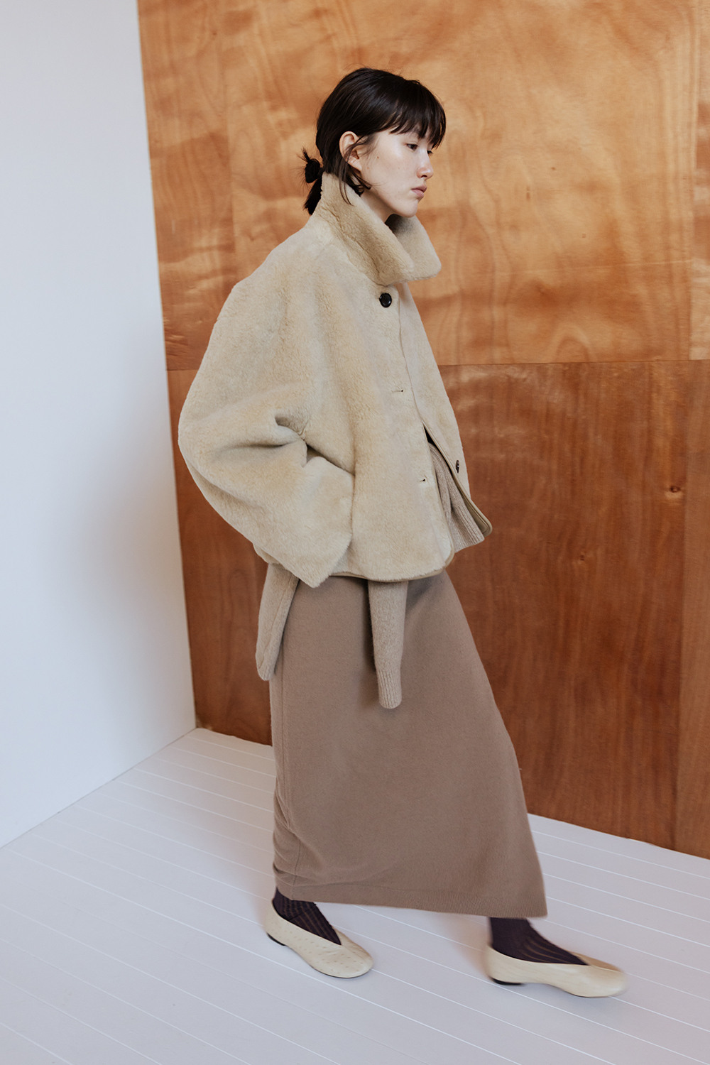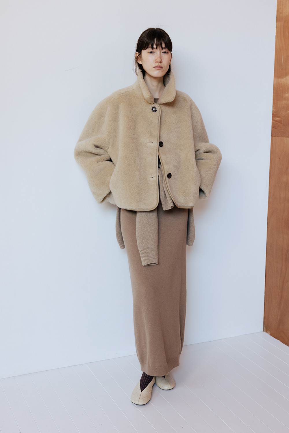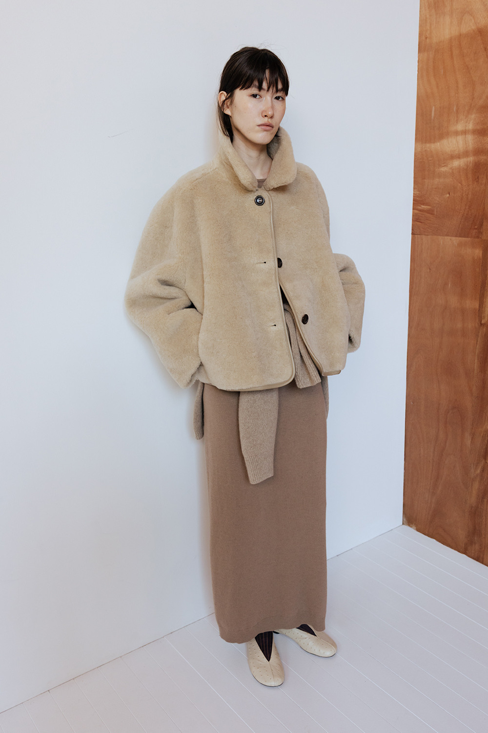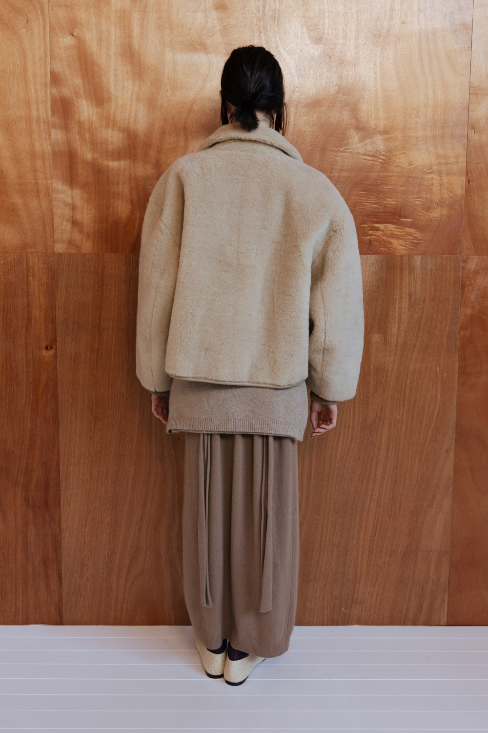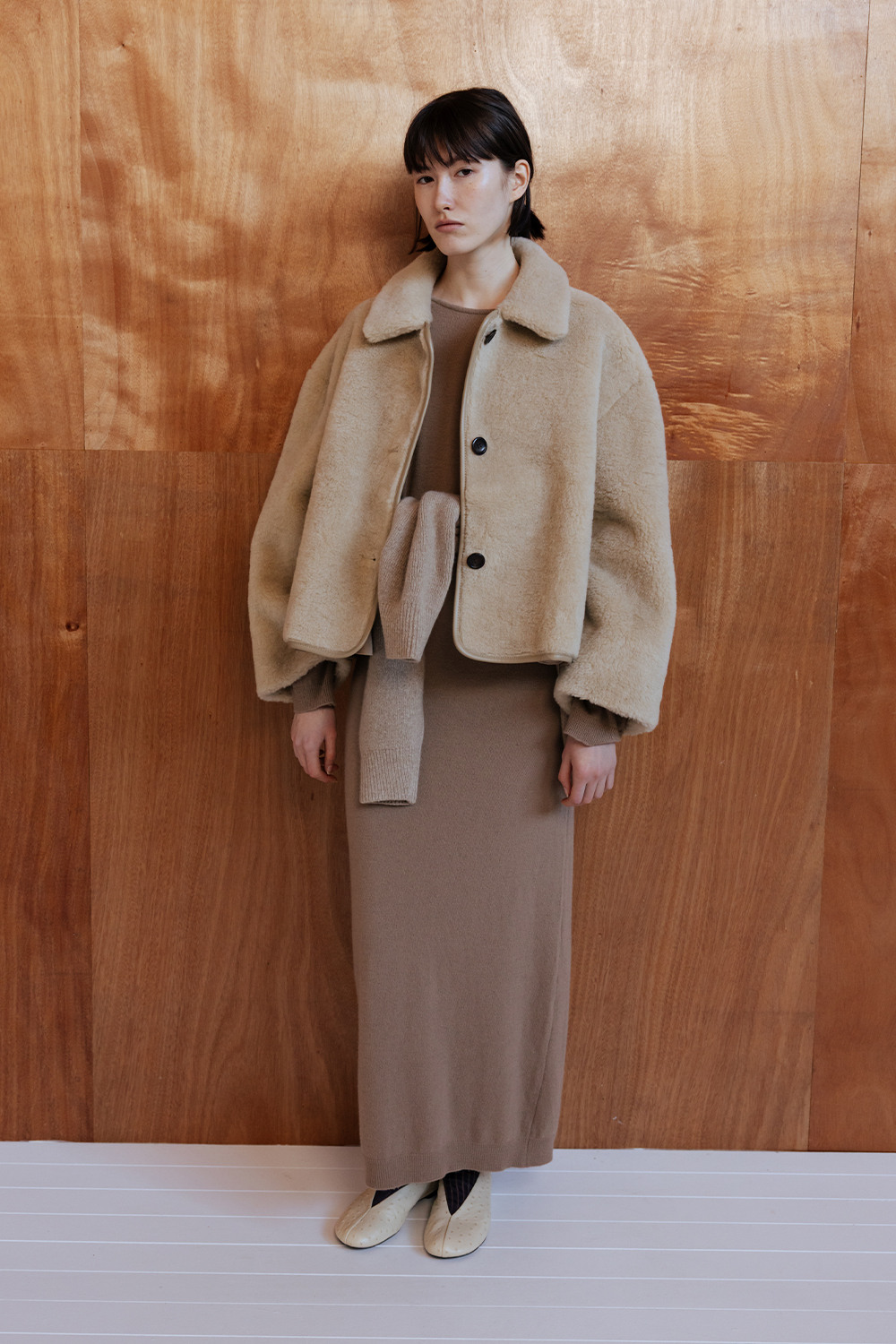 LAMBS WOOL REVERSIBLE SHORT SHEARLING JACKET - BEIGE