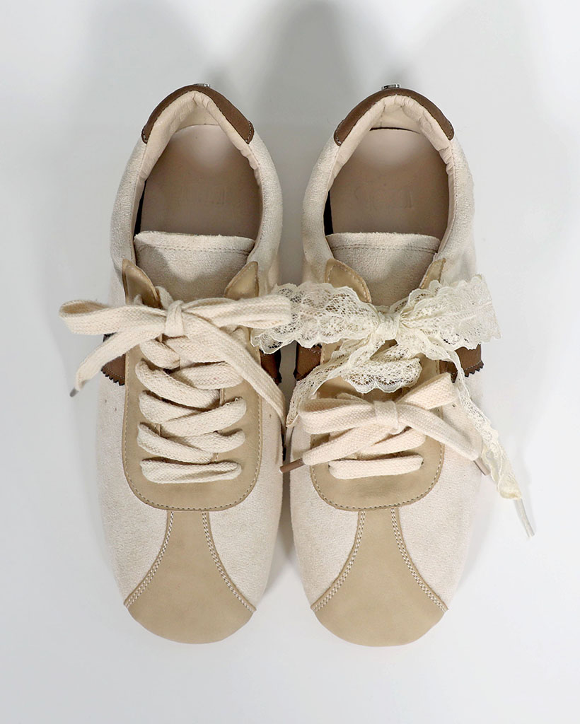 【シューレース2種入り】【2色展開】ダブルレースポイント スエードレザースニーカー/2026 SS NEW COLLECTION/beige