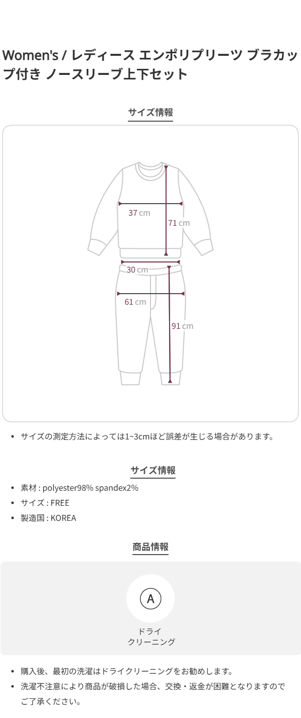 レディース エンポリプリーツ ブラカップ付き ノースリーブ上下セット