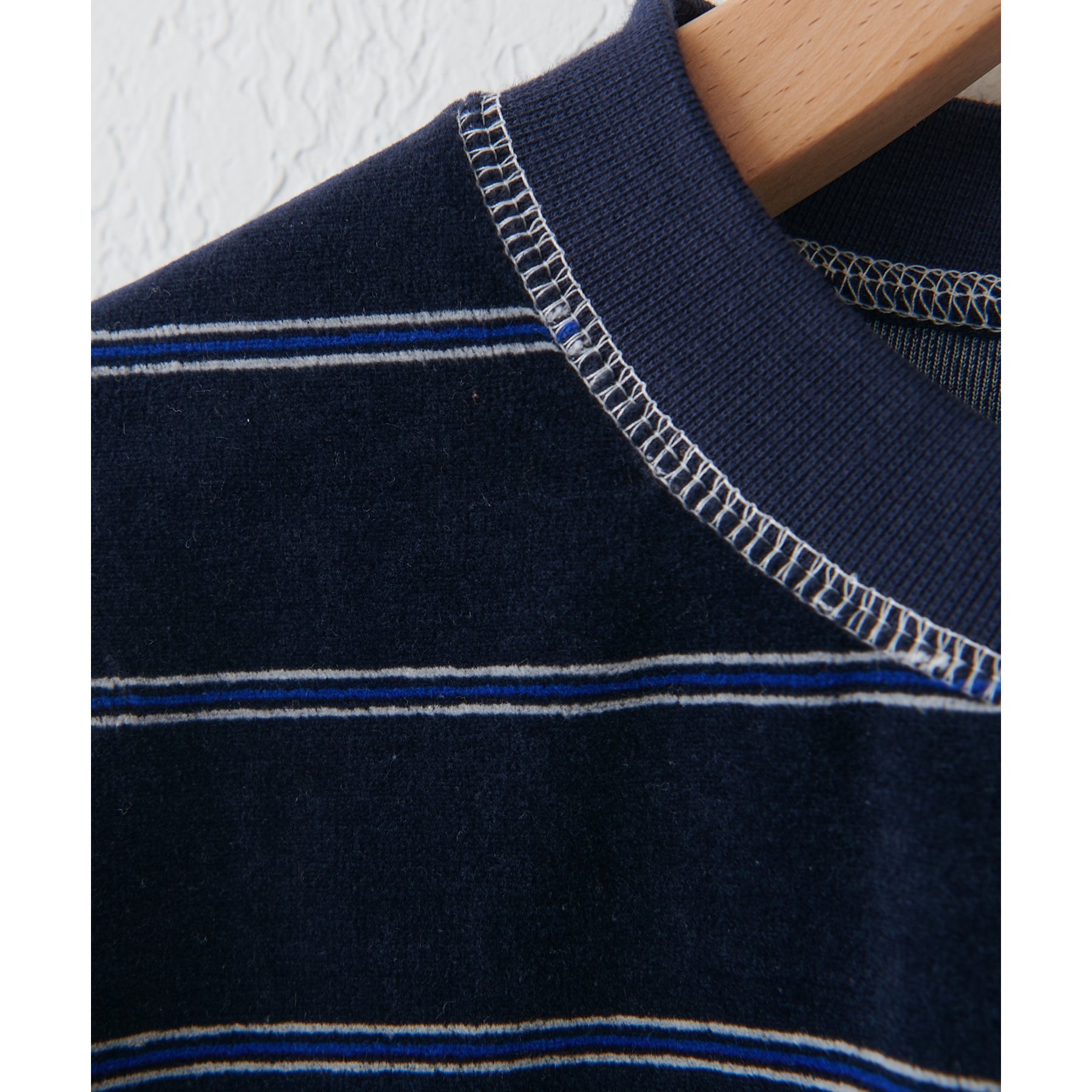 なめらかな光沢が映える、大人カジュアルなベロアボーダークルーネック