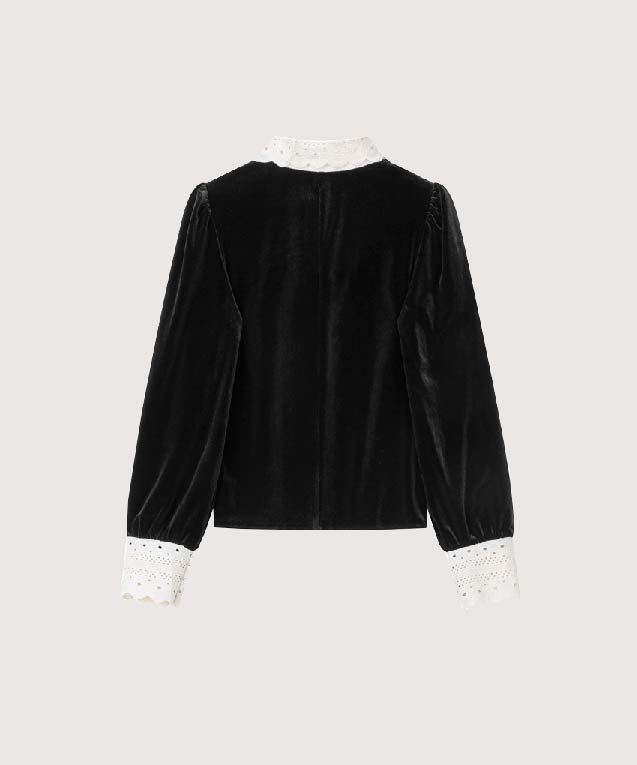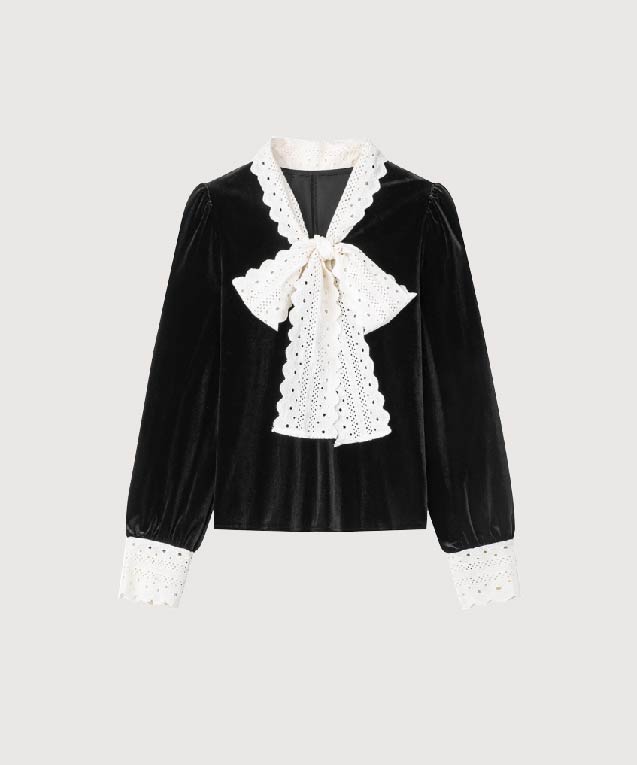 ビッグレースリボンベルベットブラウス
