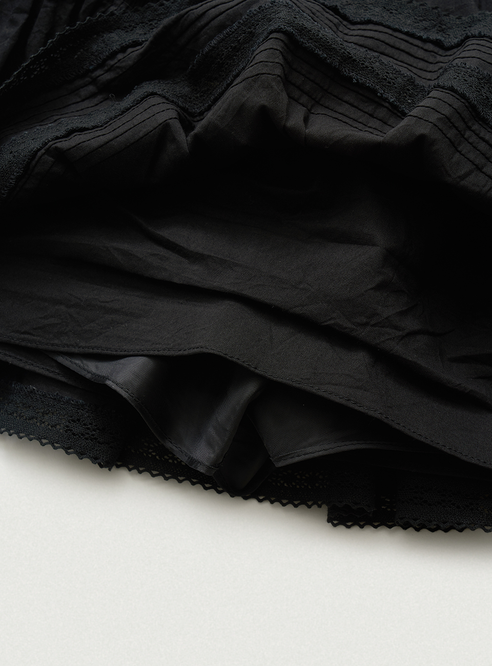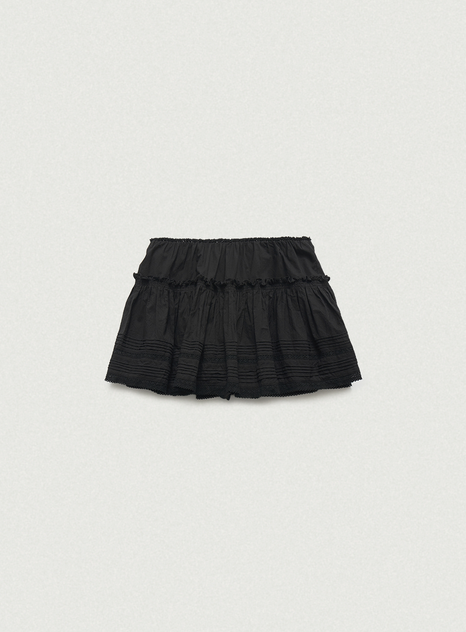 レースとピンタックディテールを加えたローライズミニスカート。