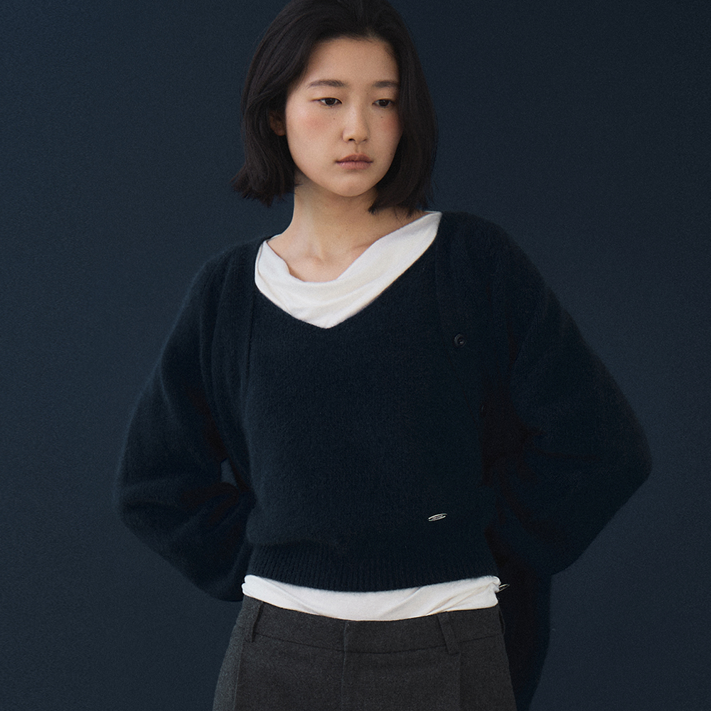 上品な雰囲気を醸し出します。 同じ原糸で製作されたOVERFIT RACCOON CARDIGANと