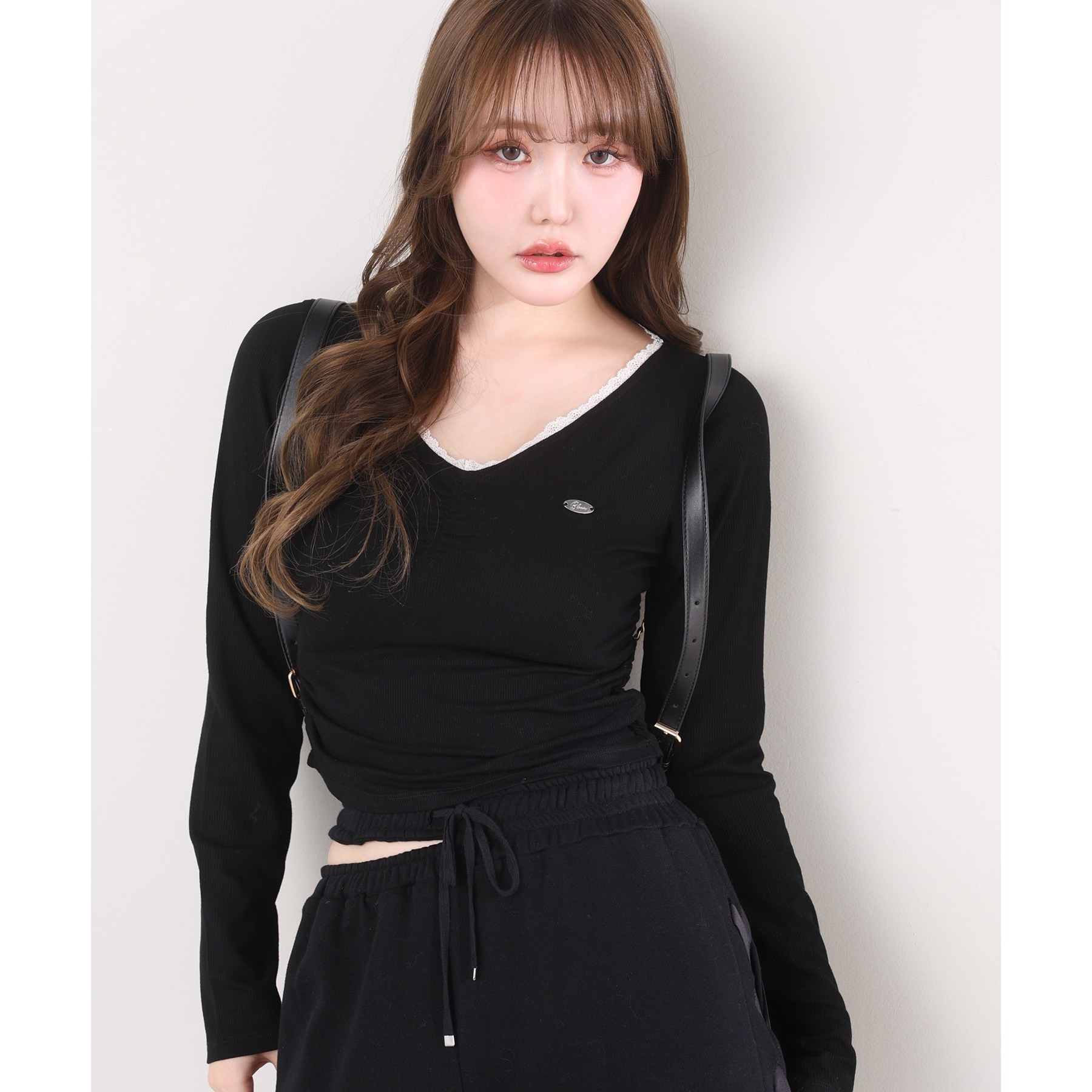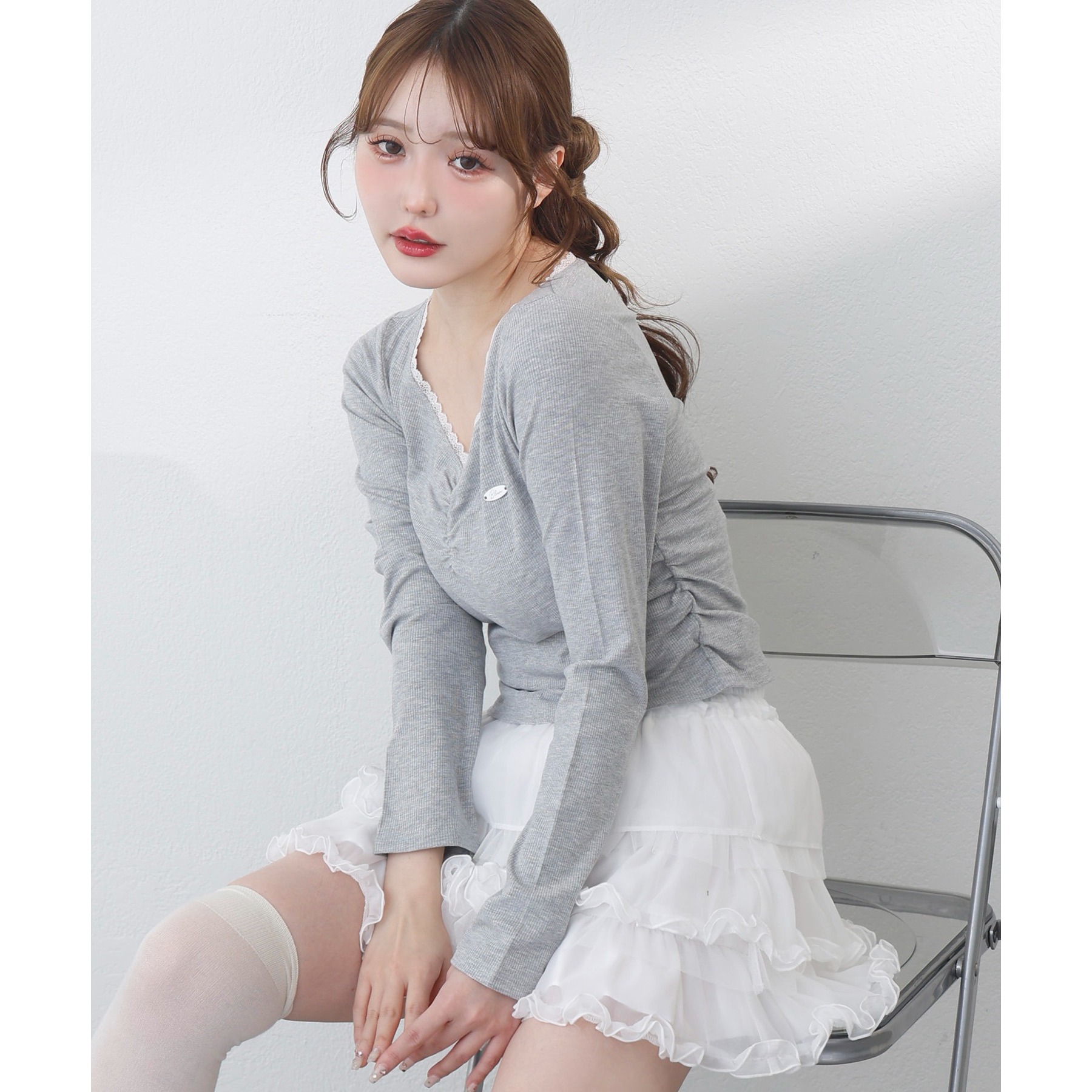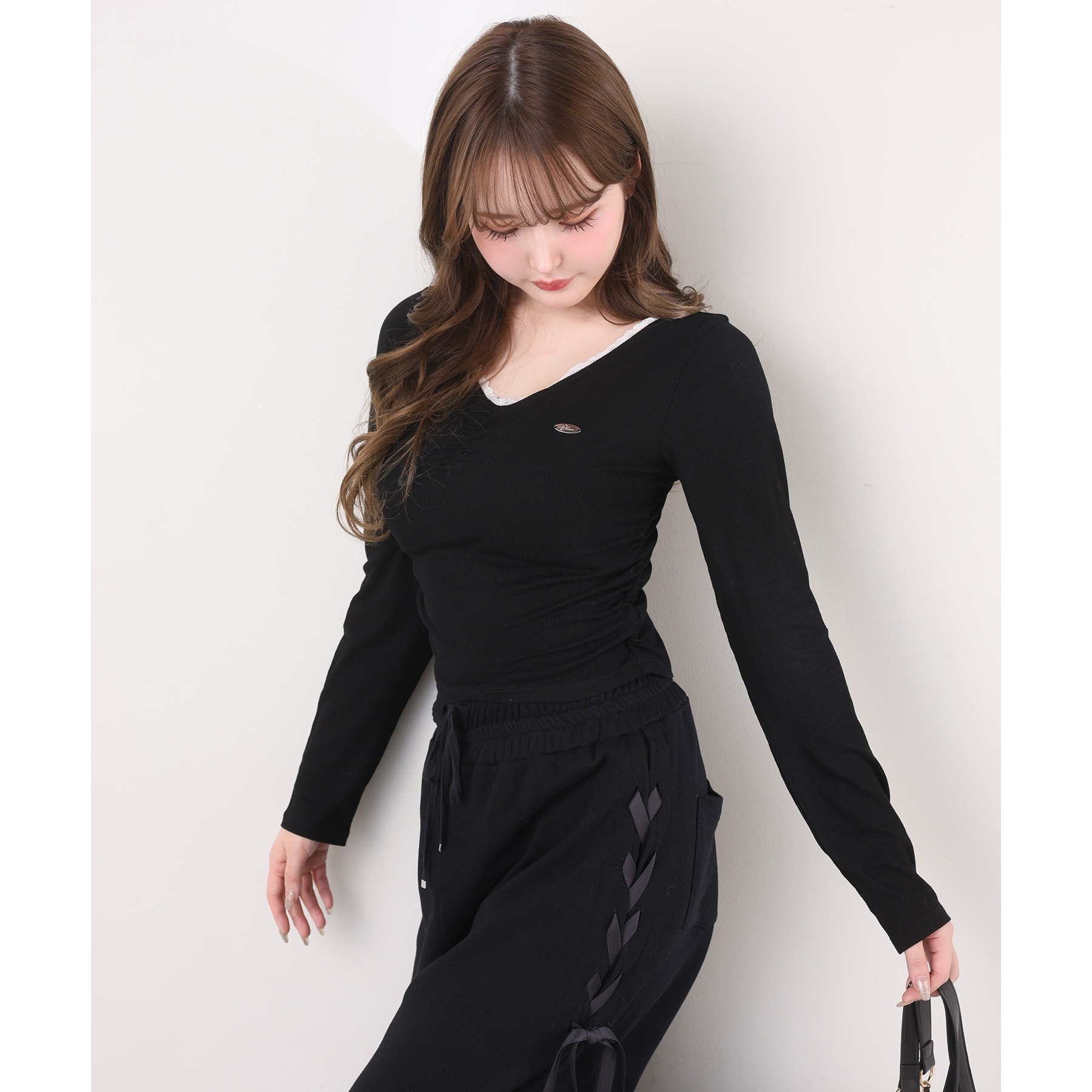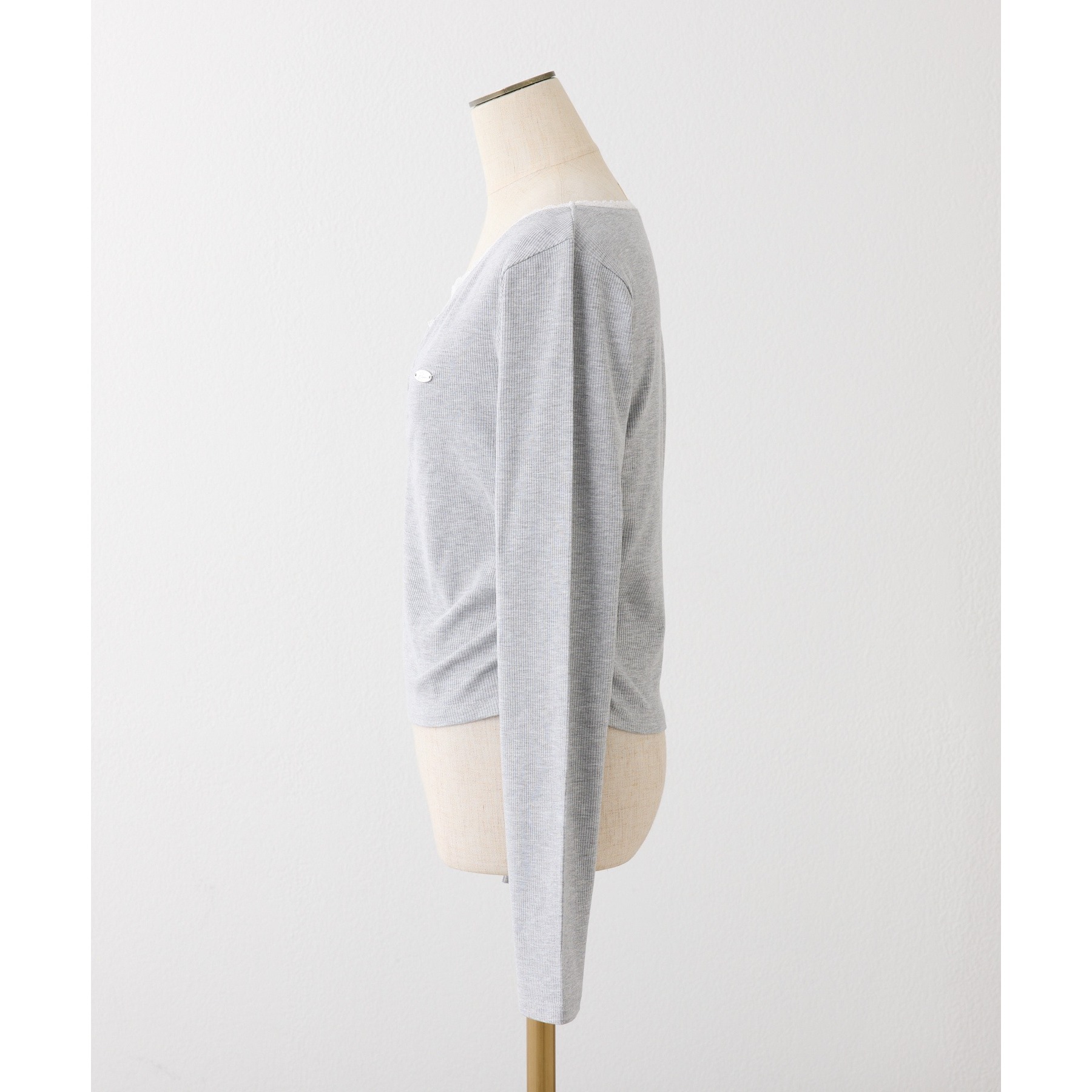襟元にレースをあしらい、顔まわりを華やかに見せてくれる長袖カットソー。