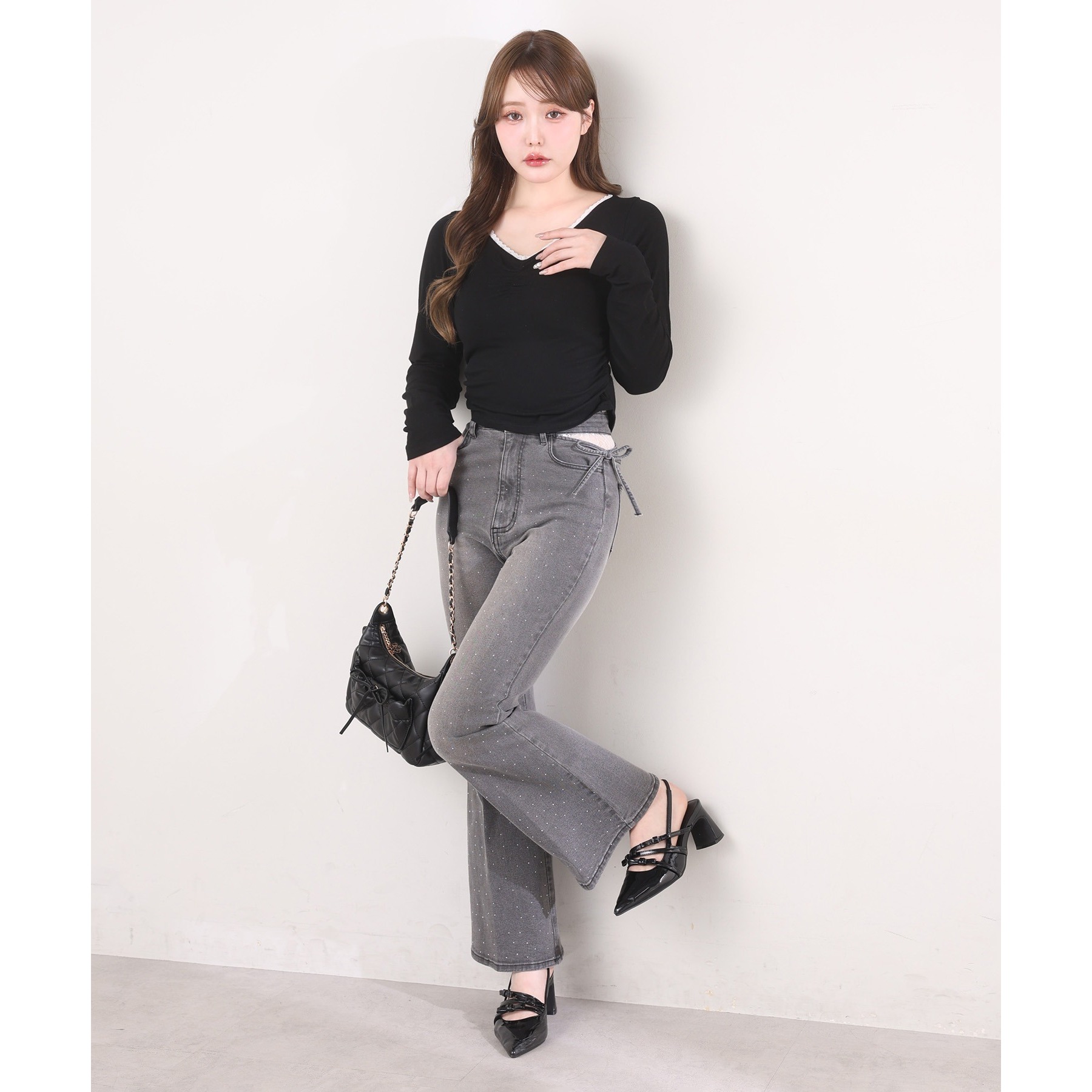 デニムやスラックスと合わせて甘さを抑えた大人カジュアルにも。