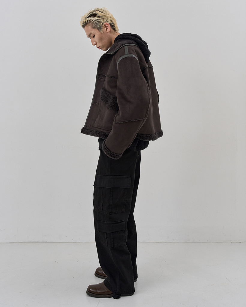 オーバーしたサイズと クロップ機長で冬カラーとポケットディテールで活用度とスタイリッシュなバランスを同時に演出