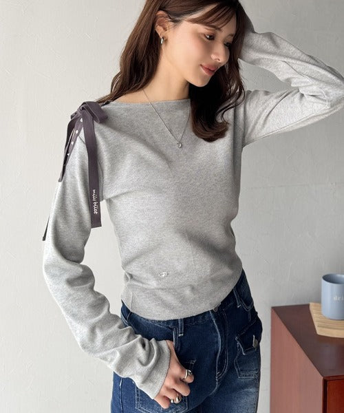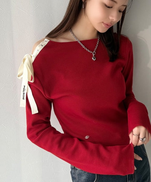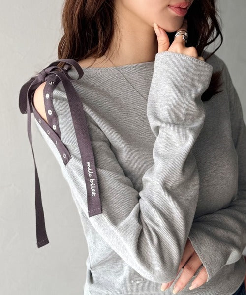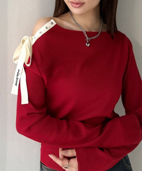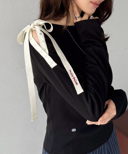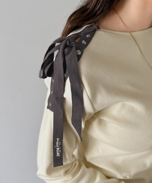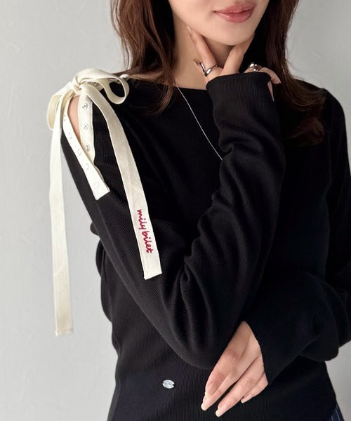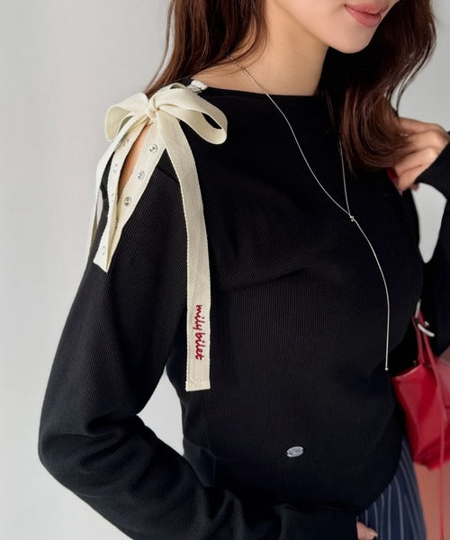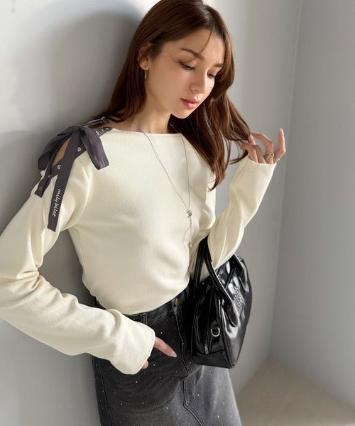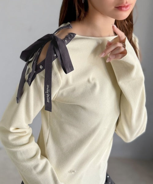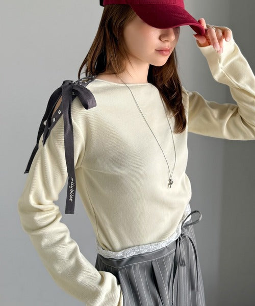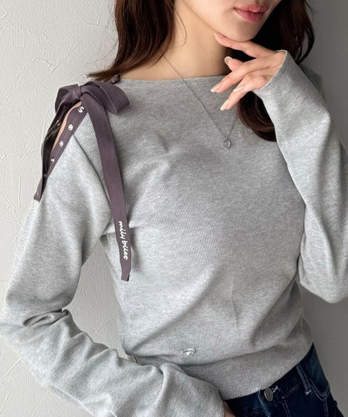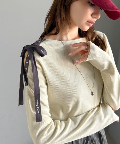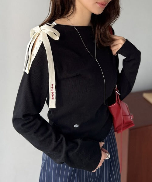 【mily bilet】甘さを添える大人の肌見せ。肩リボン使いスナップ2WAYワンオフショルカットソー(長袖) mi1329034