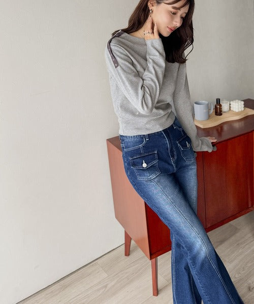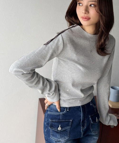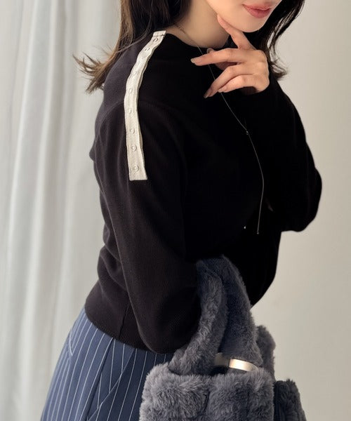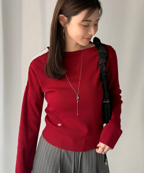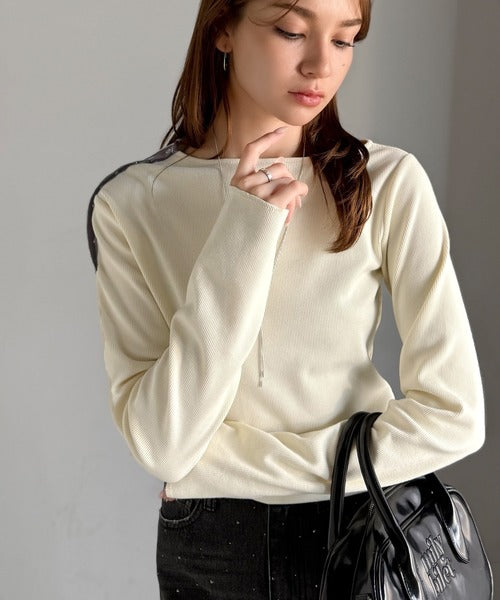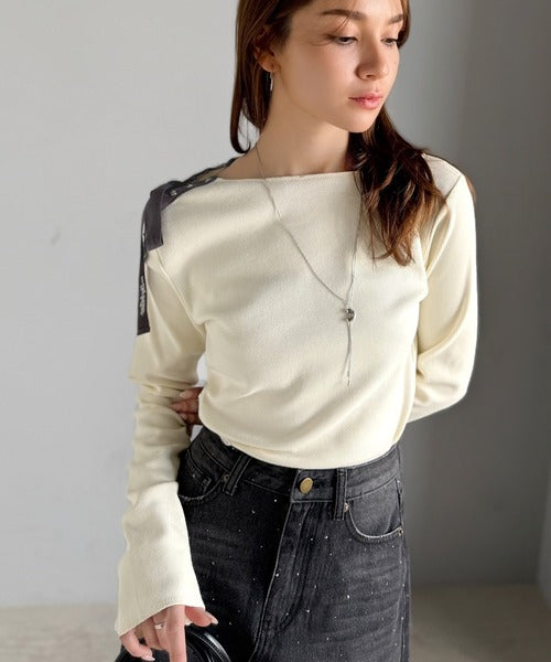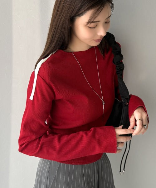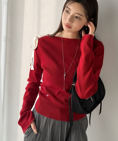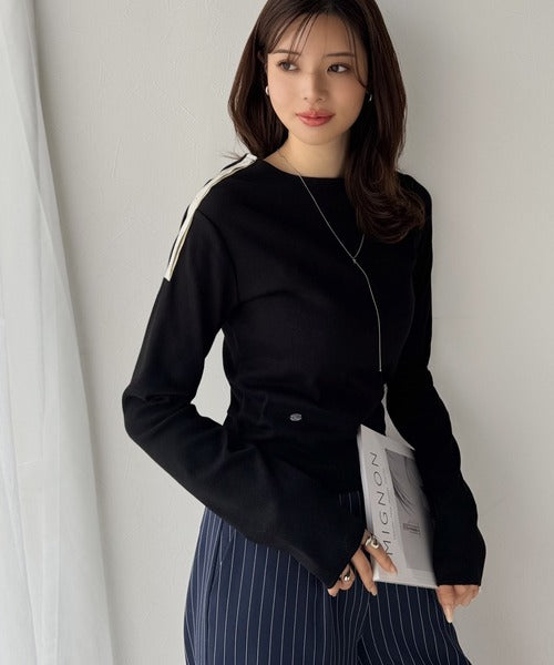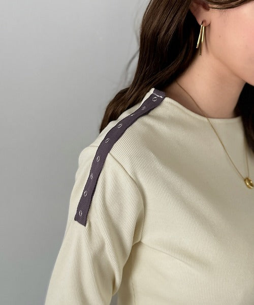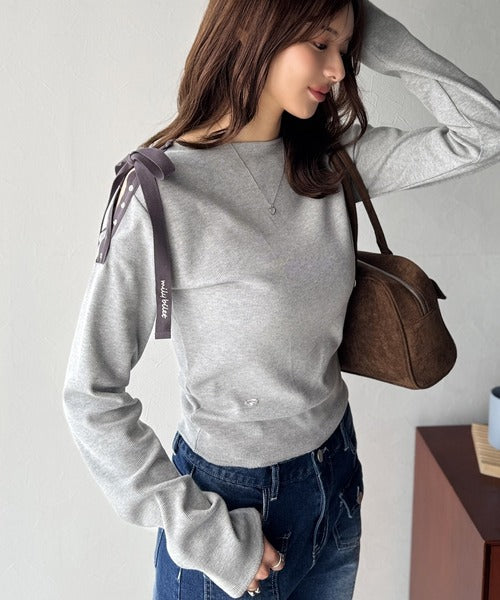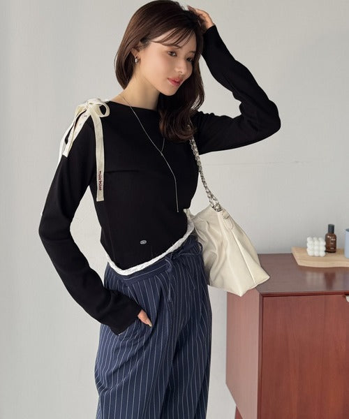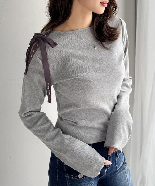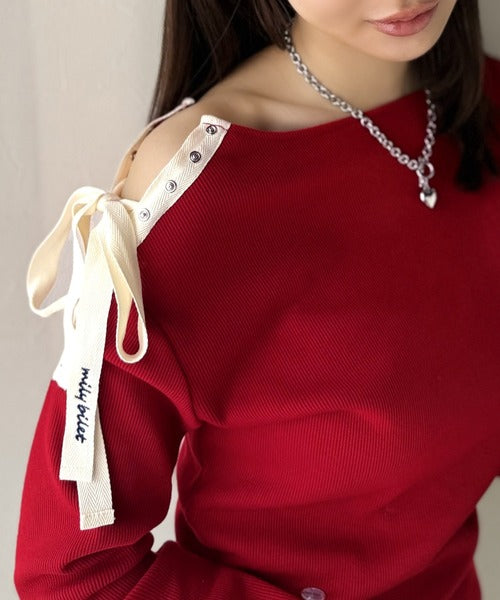 【mily bilet】甘さを添える大人の肌見せ。肩リボン使いスナップ2WAYワンオフショルカットソー(長袖) mi1329034
