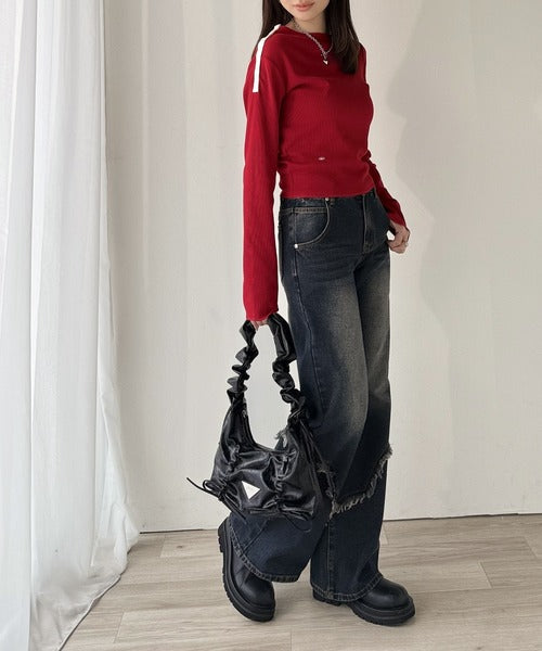 カーブデニムやスウェットパンツなど様々なシルエットのボトムスとの相性も抜群♪
