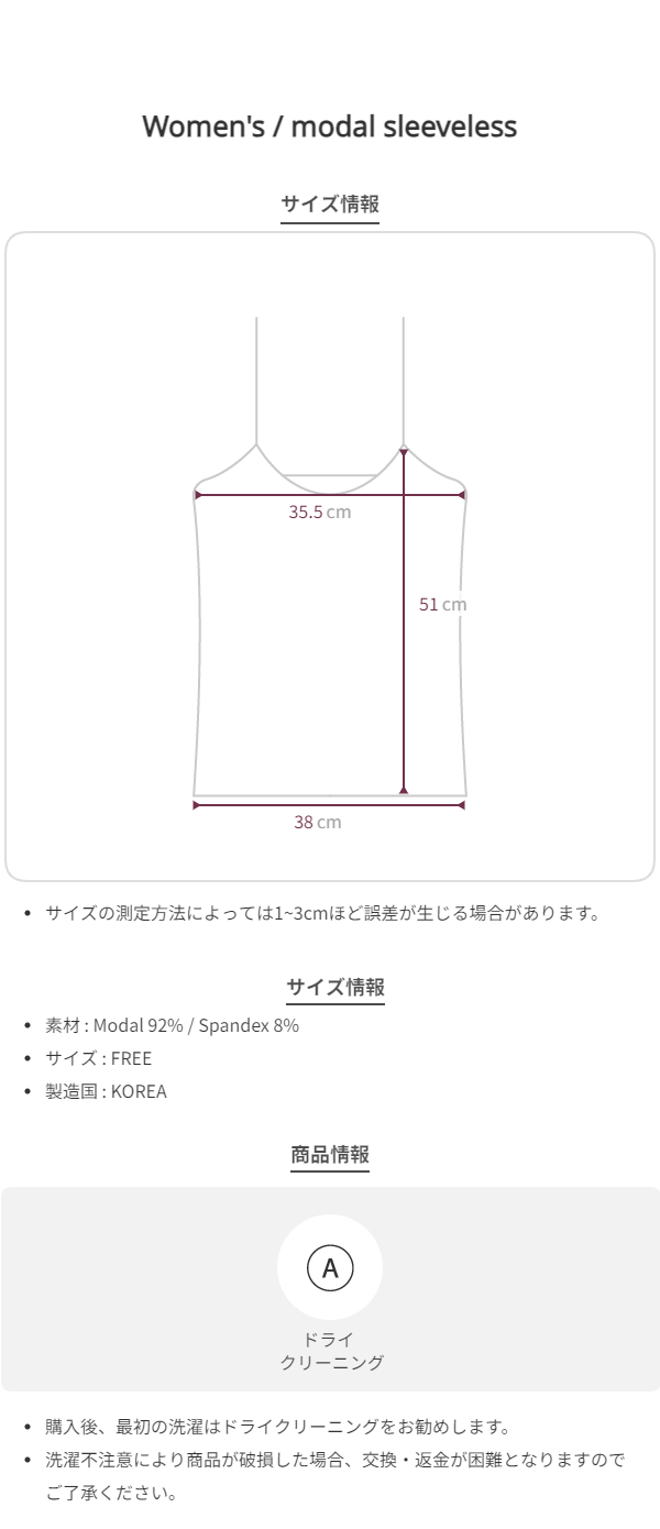 *伸縮性(テンション)の高い素材ほど、サイズに個体差が出る場合がございます。