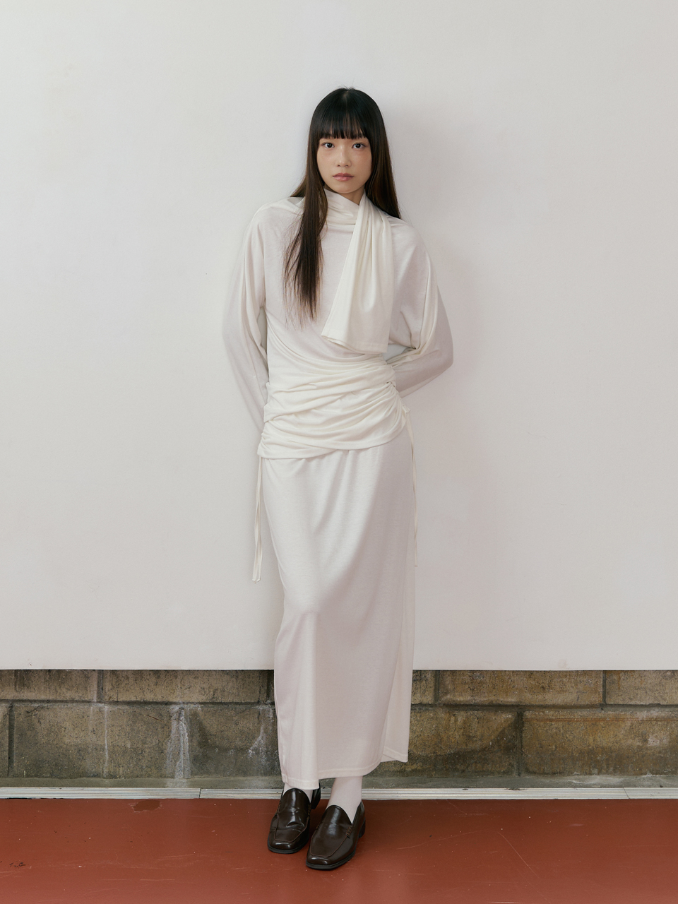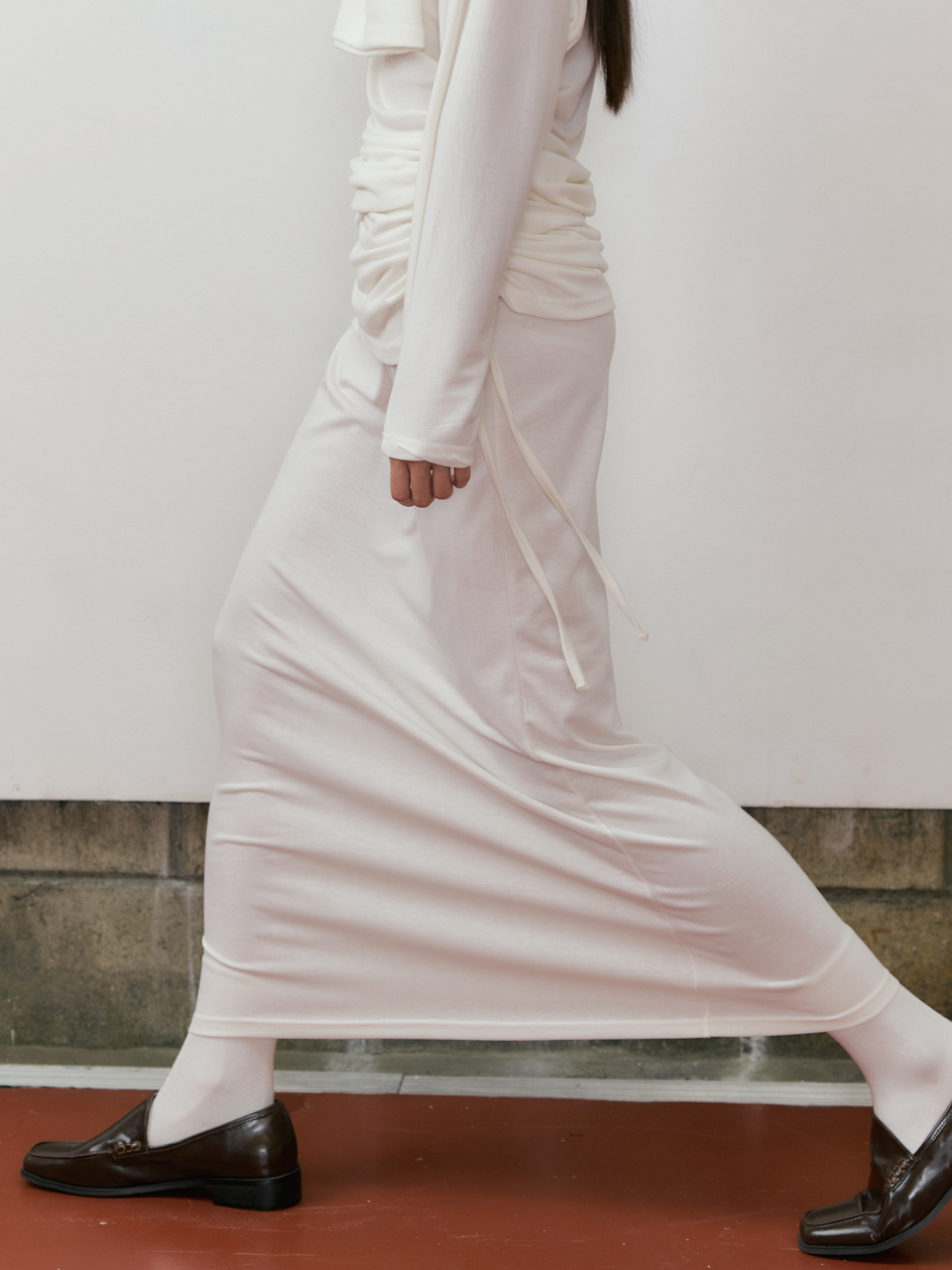 REF BOTH SHIRRING LONG SKIRT IVORY