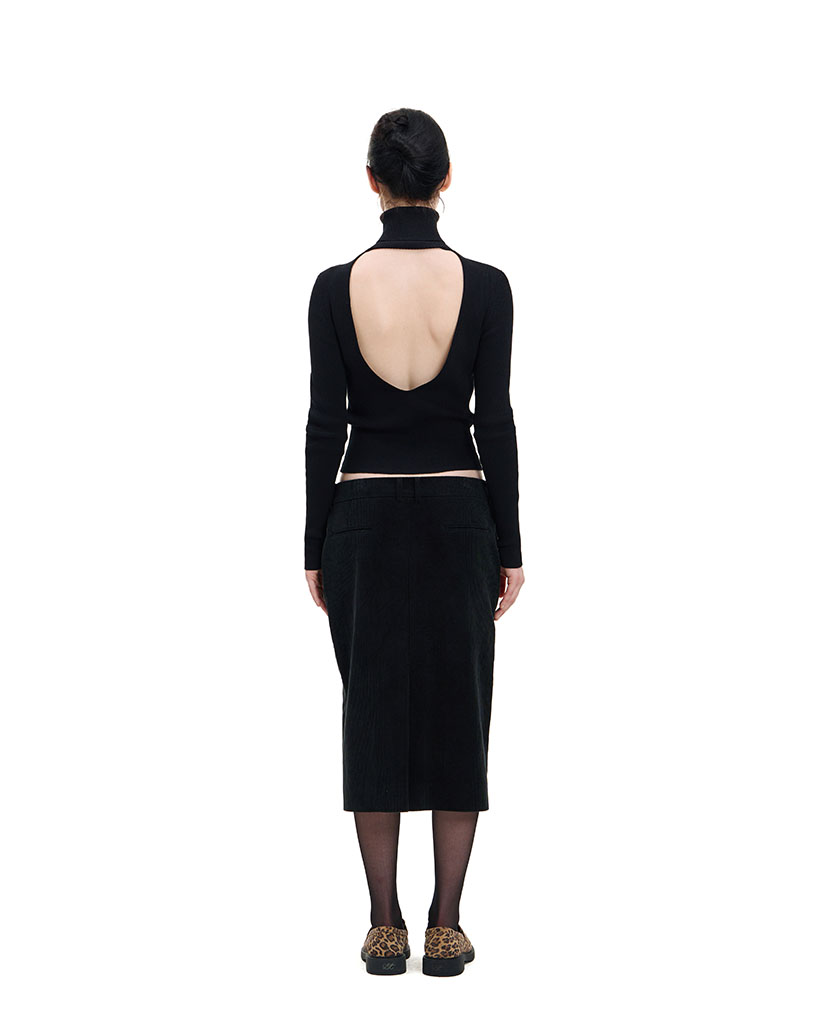 BLACK CORDUROY PENCIL SKIRT