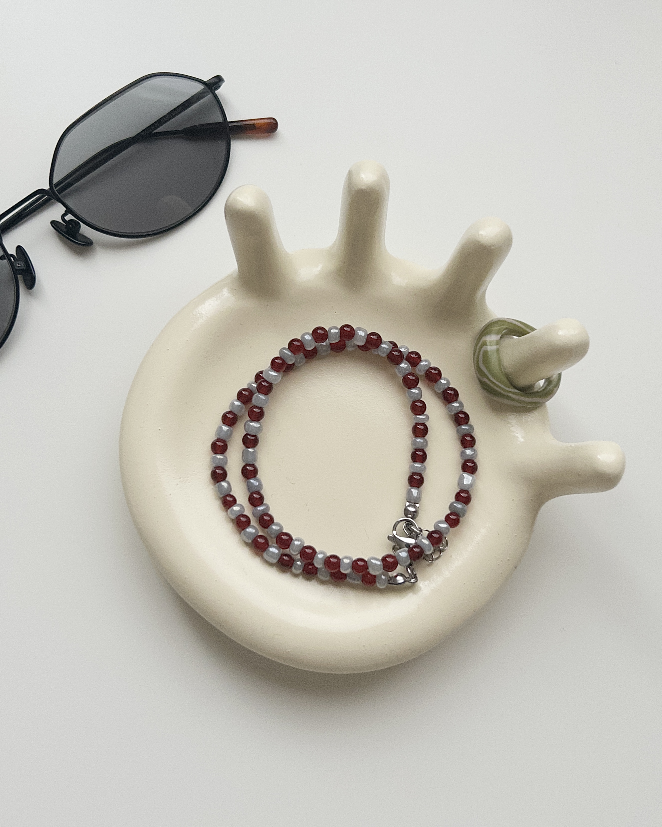 天然石カーネリアンとシードビーズを使用したネックレスです。