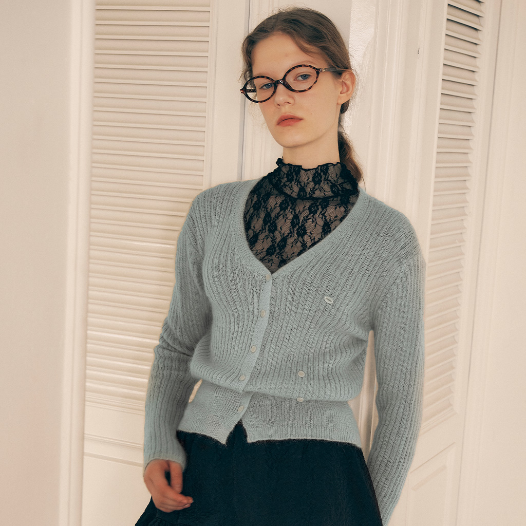 MOHAIR BLENDED TWO WAY BUTTON CARDIGAN GRAY