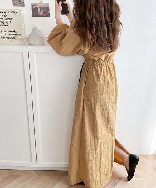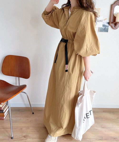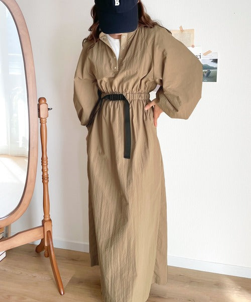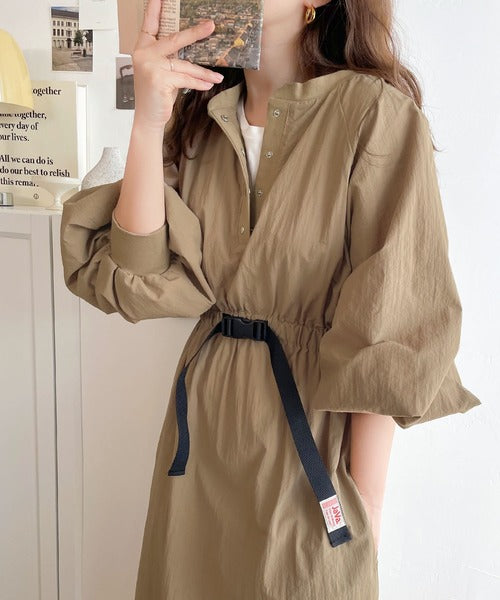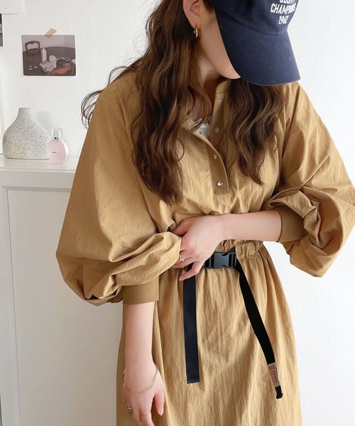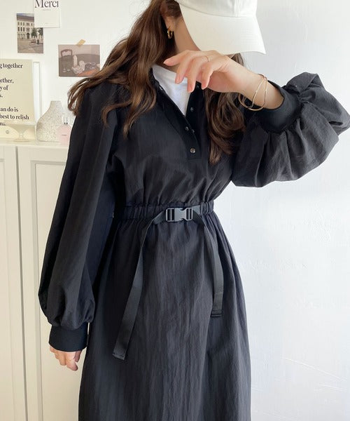 《JaVa ジャバコラボ》シャカシャカ素材の進化系。バックルベルトワンピース jv1070025