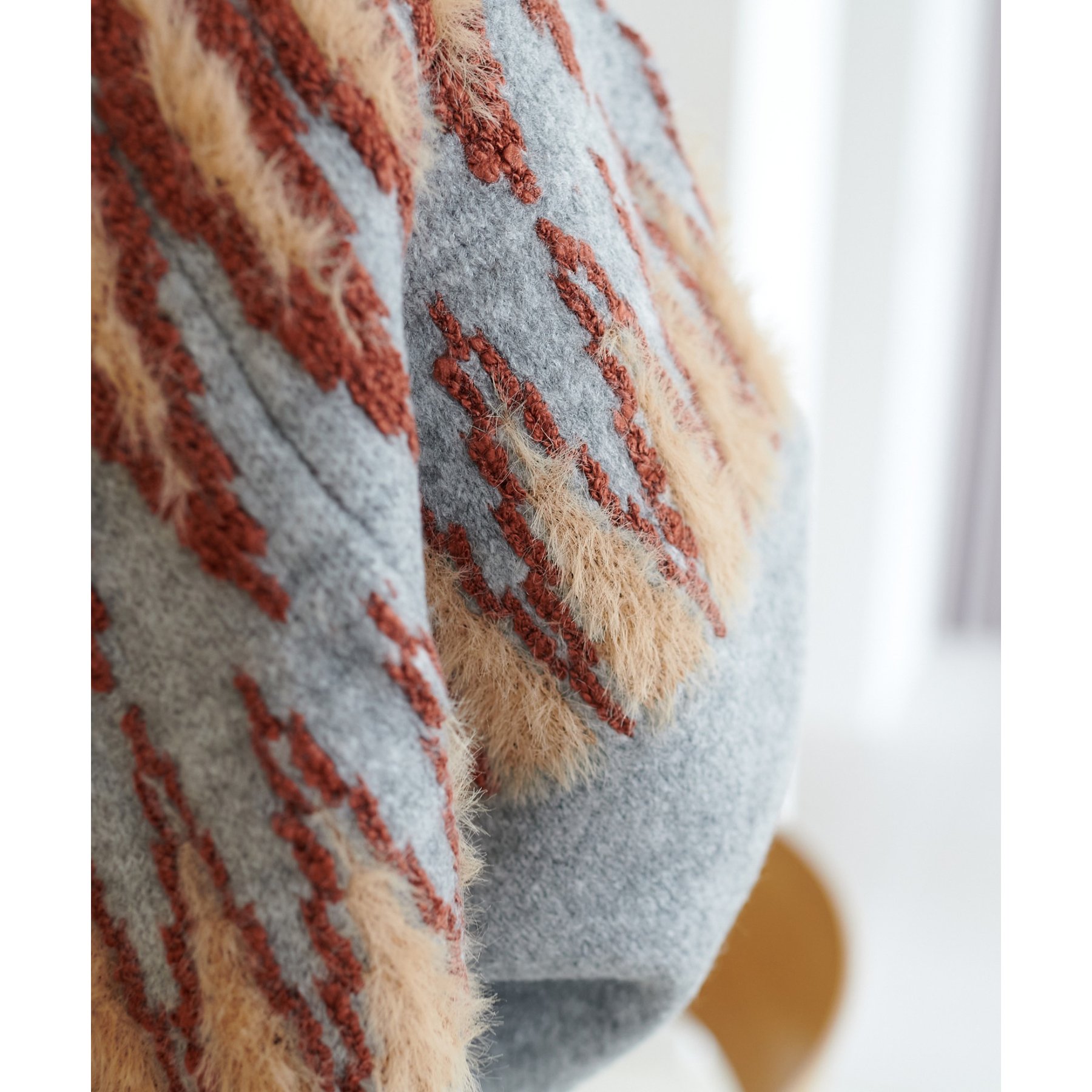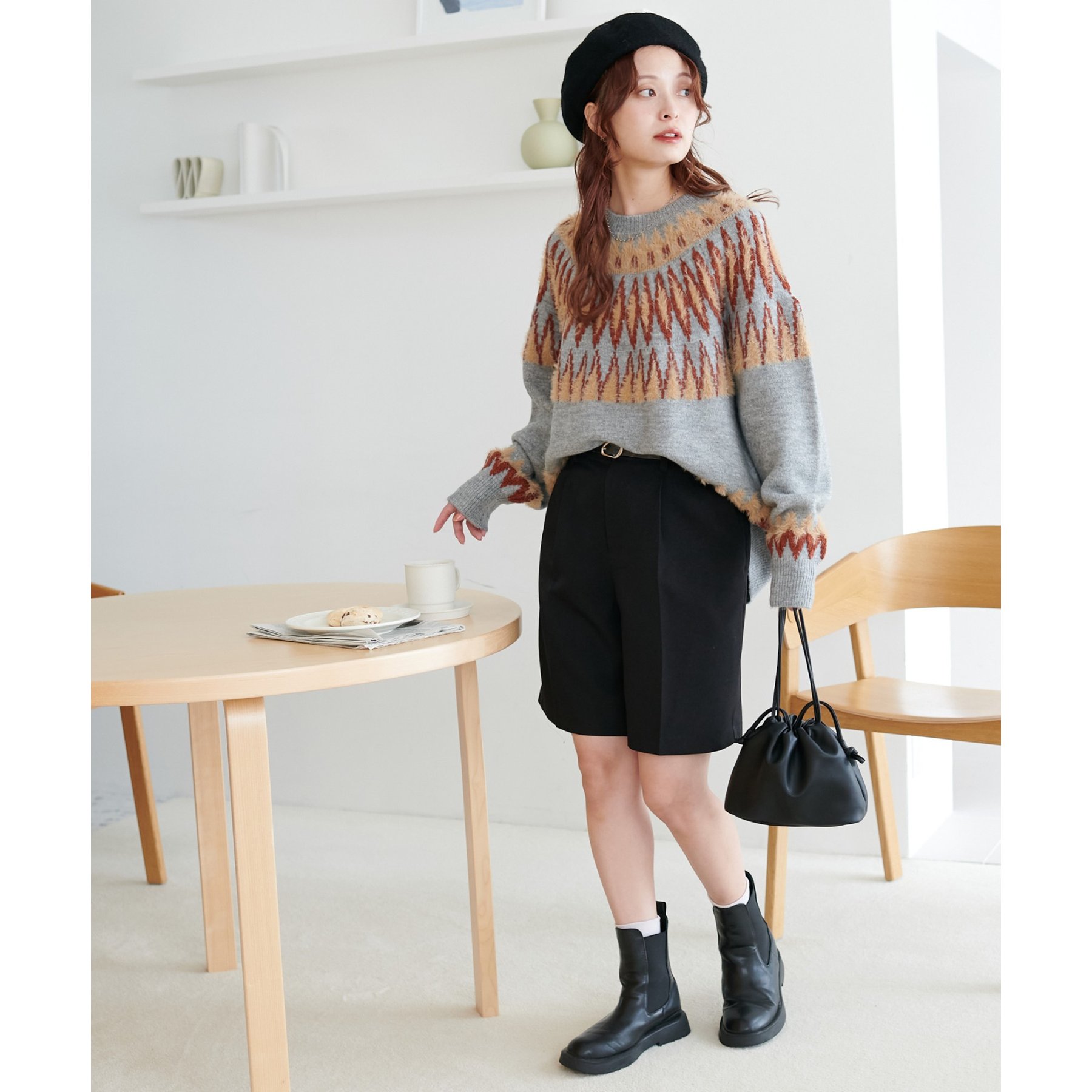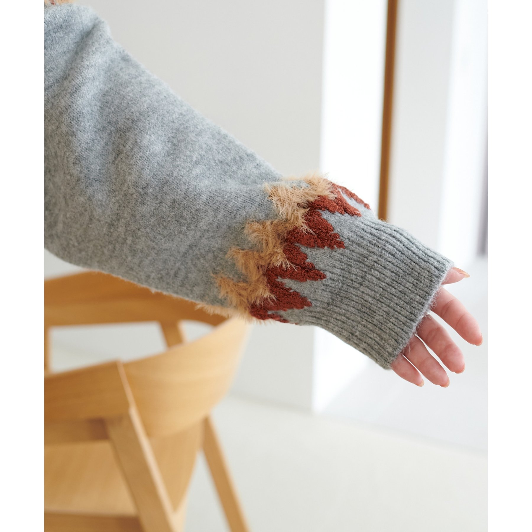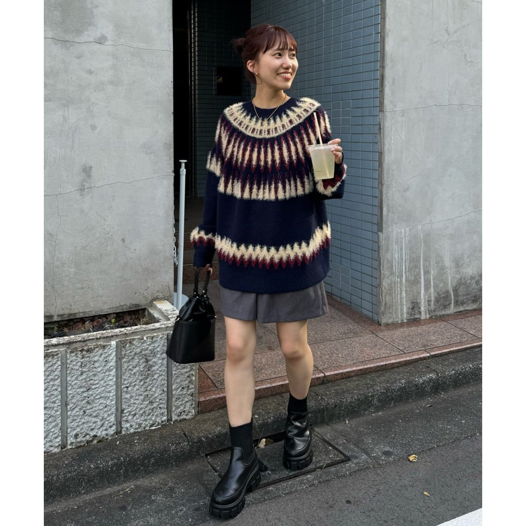・シーズンムードを高める求心柄デザインで、アクセントになる配色が目を惹く主役級ニット