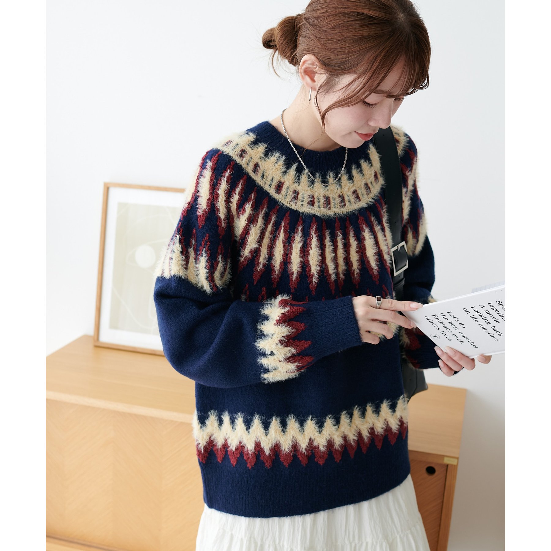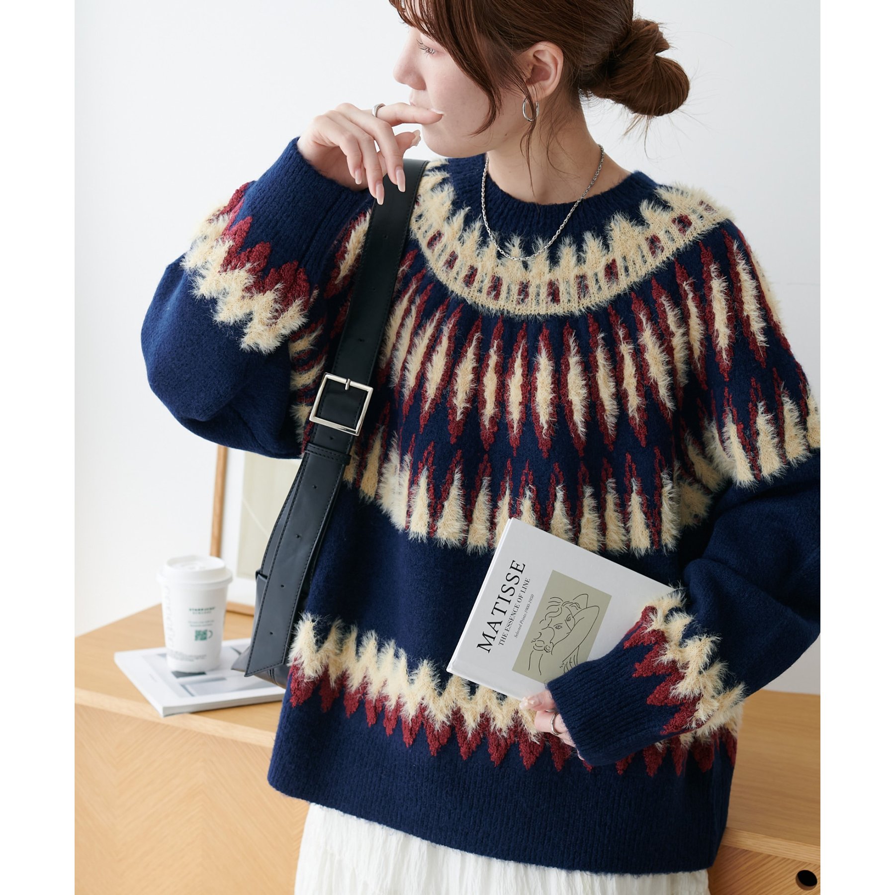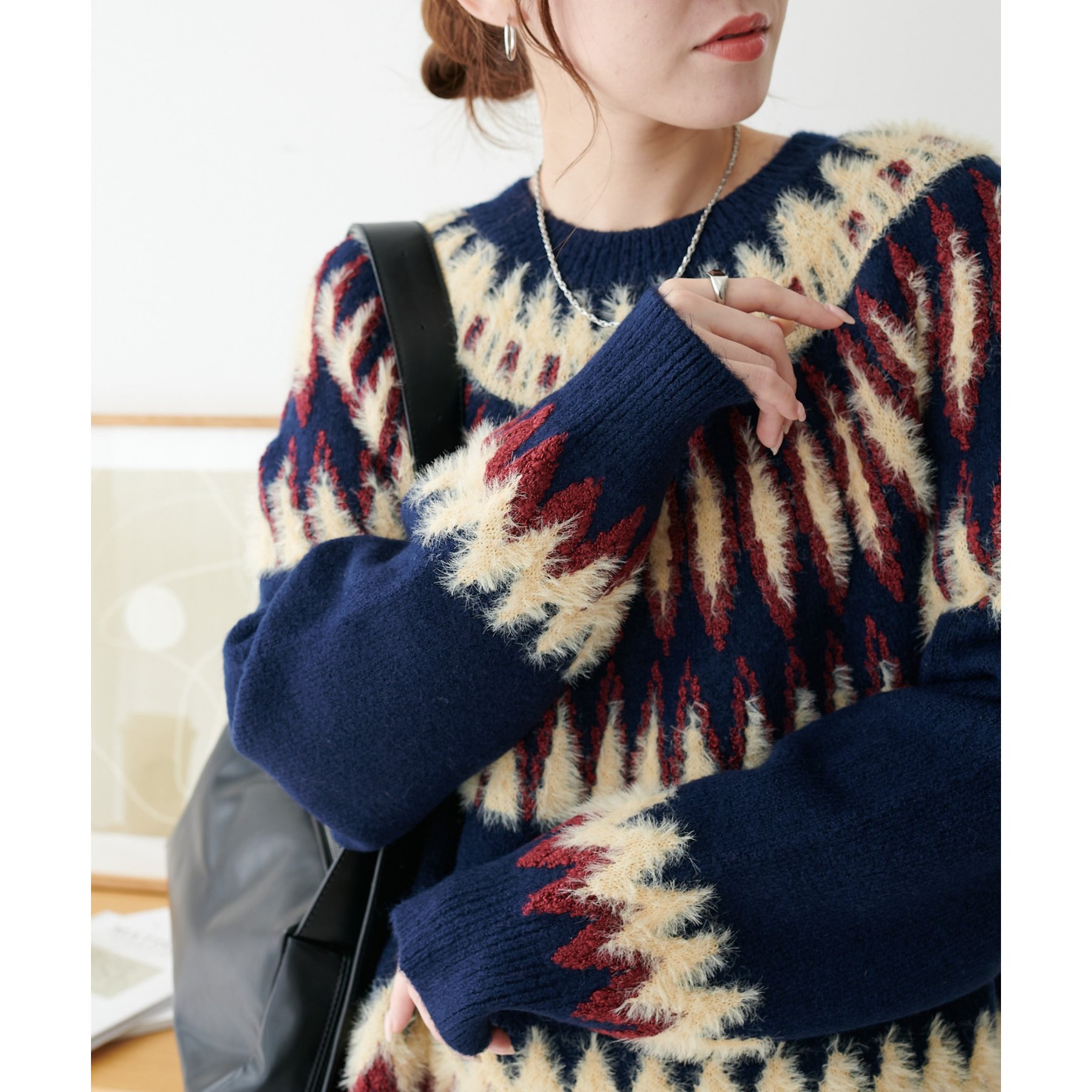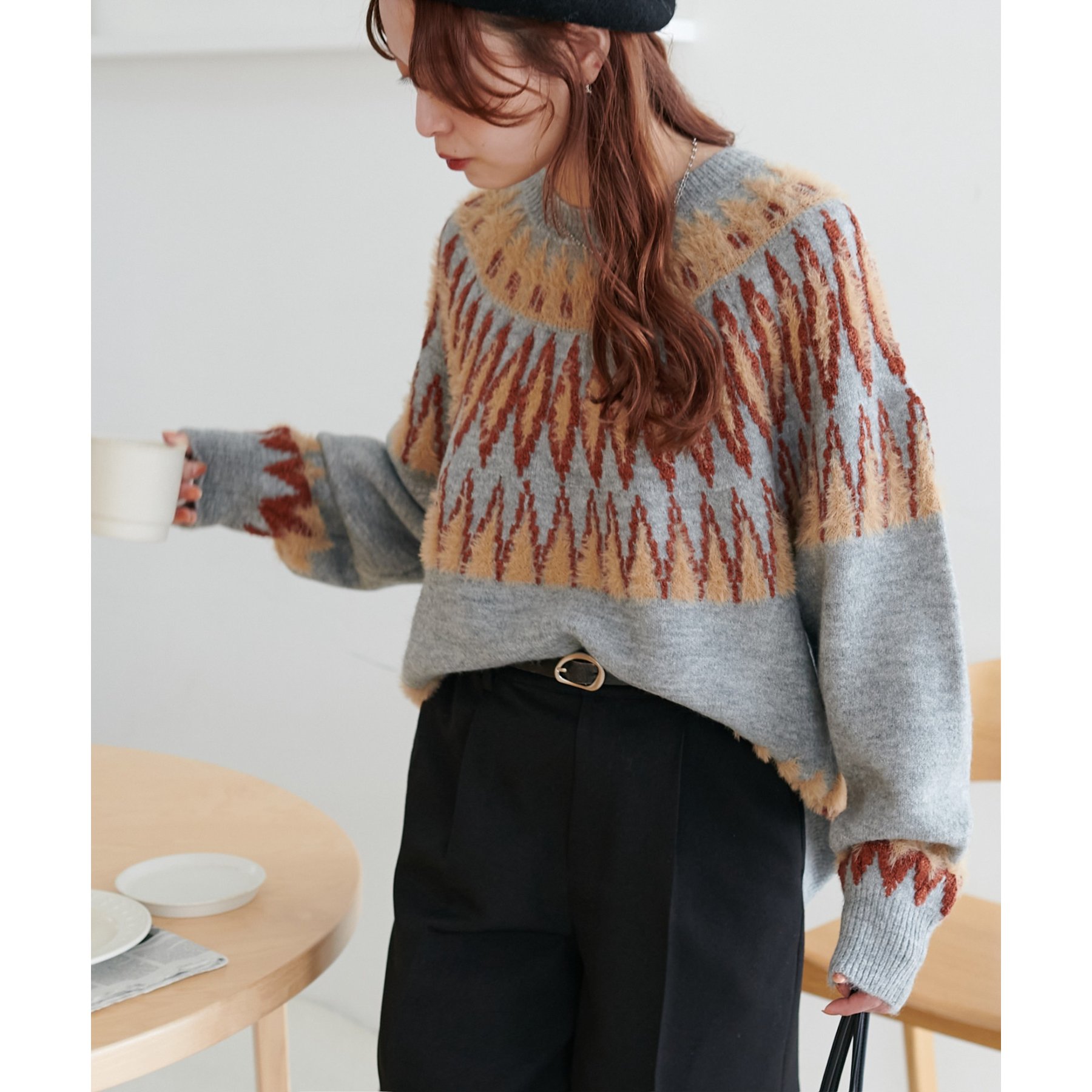 ノスタルジックな雰囲気の漂う求新柄ニット