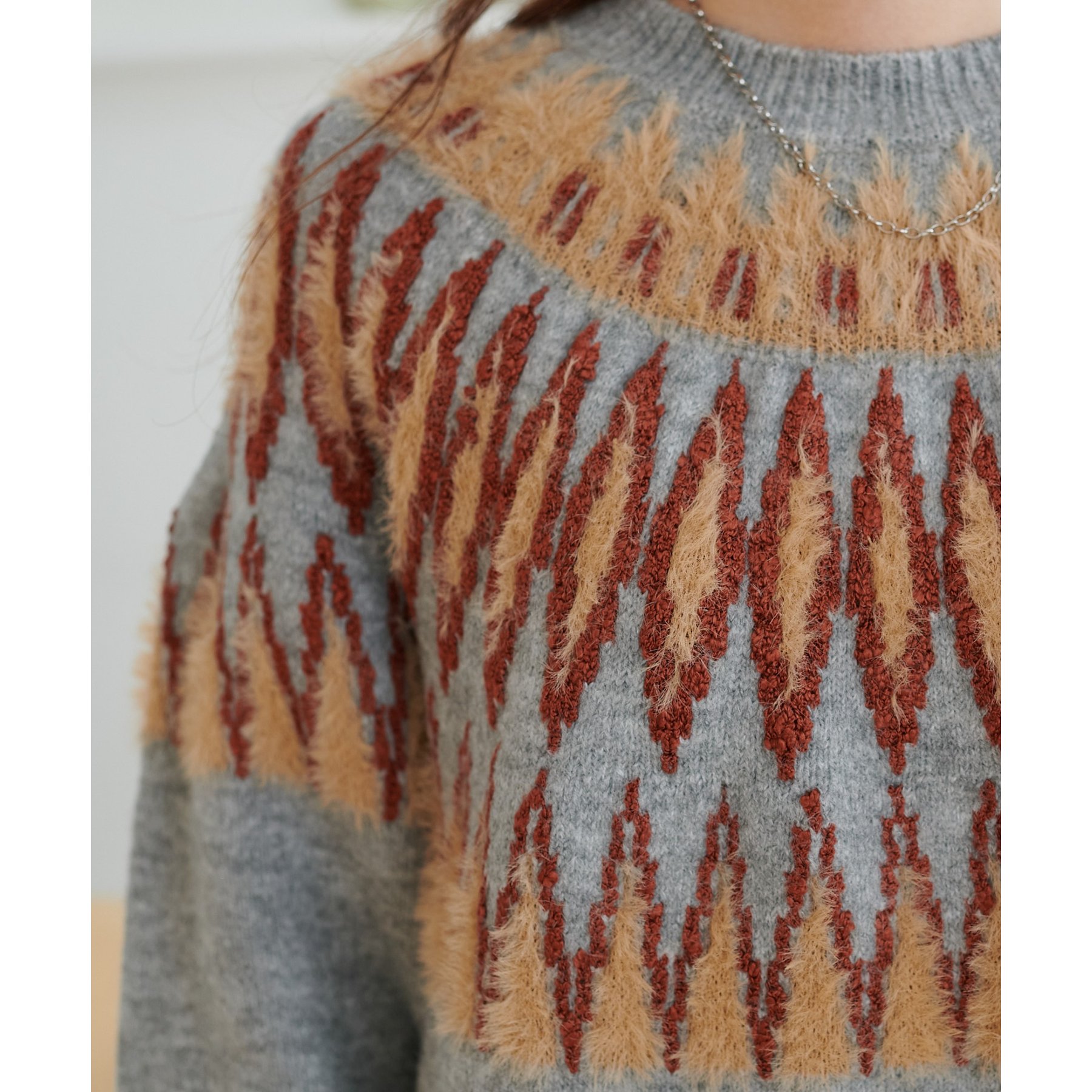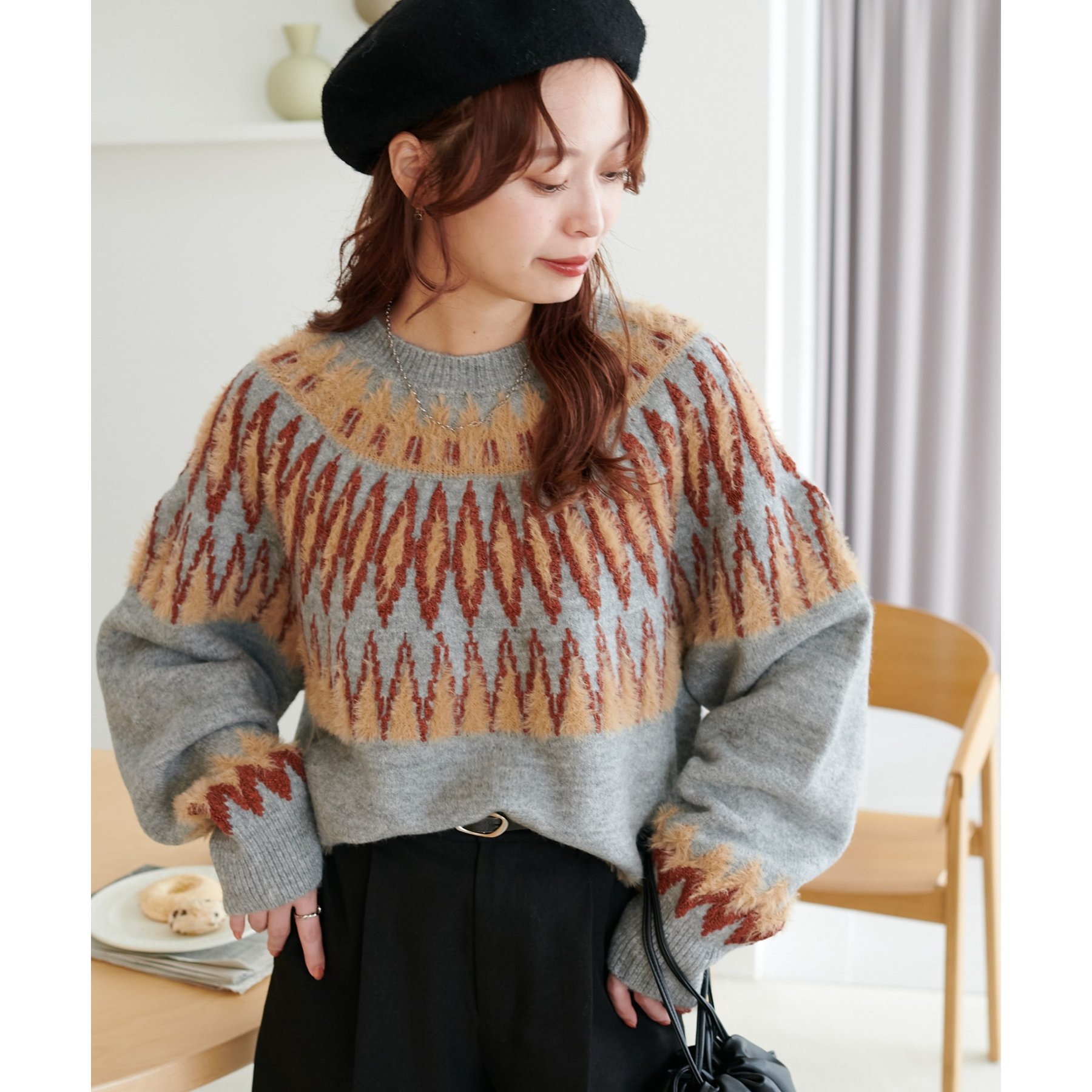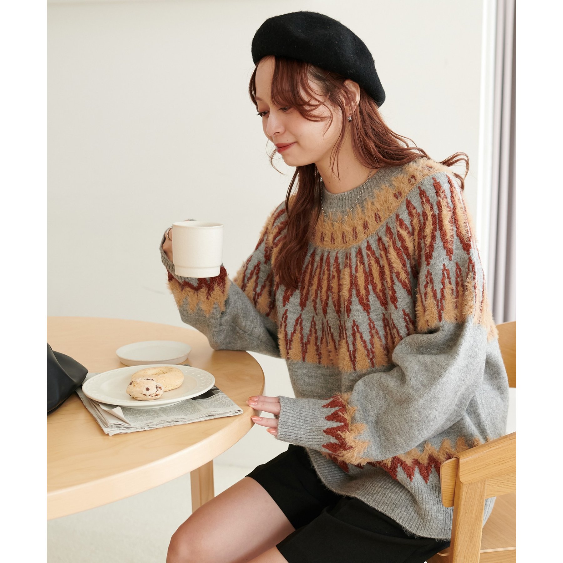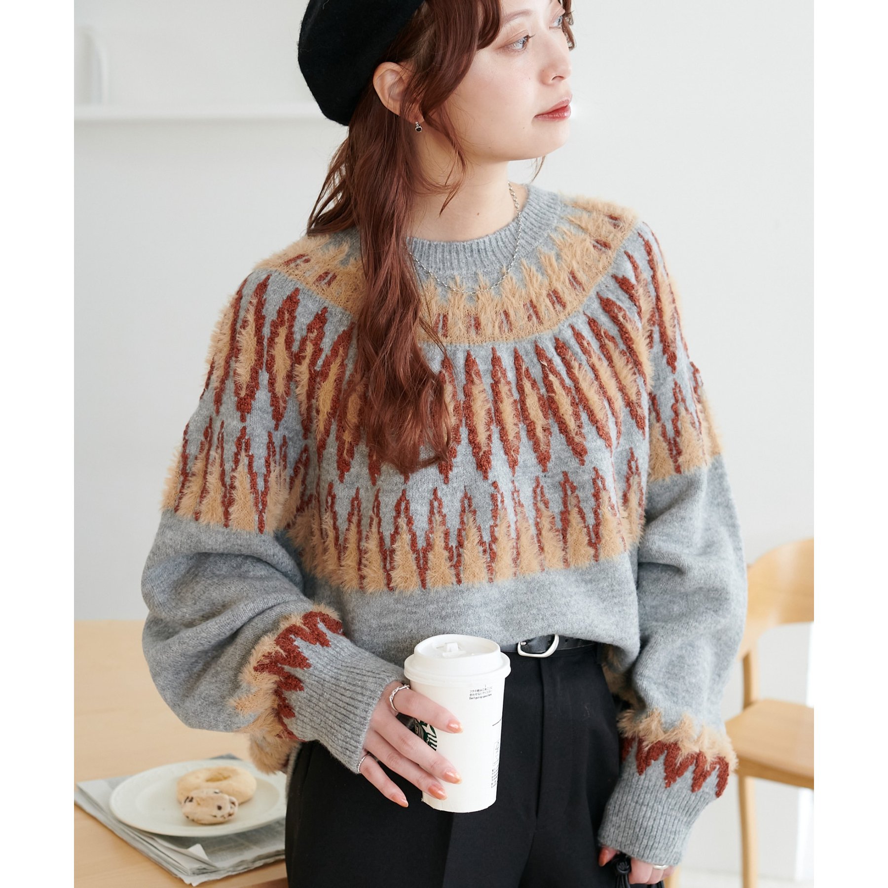 ノスタルジックな雰囲気の漂う求新柄ニット