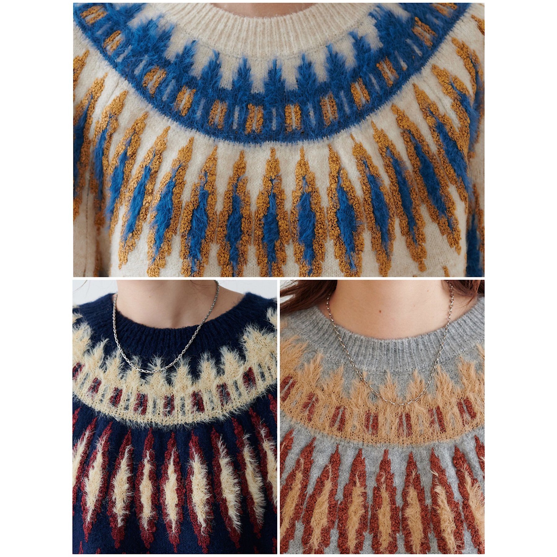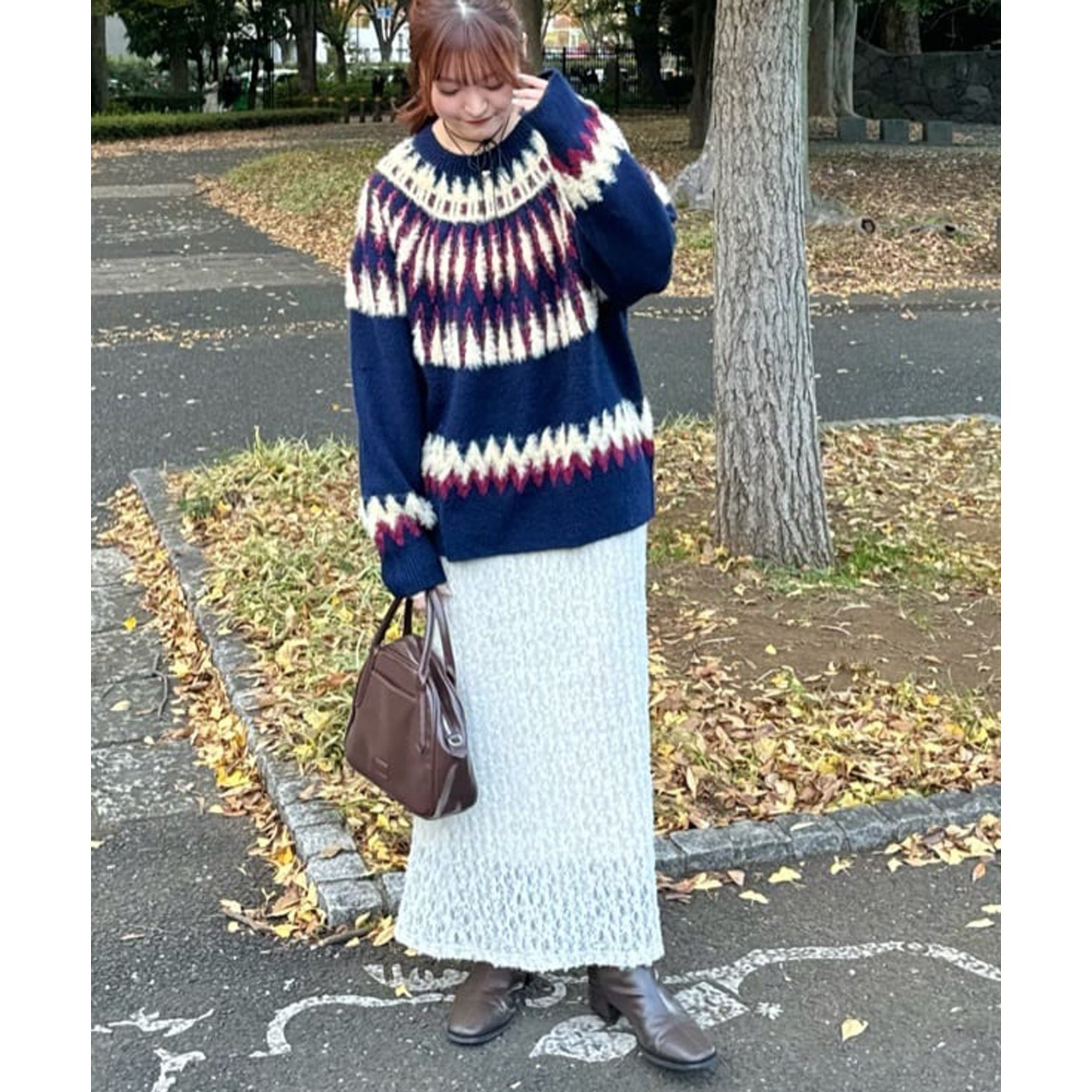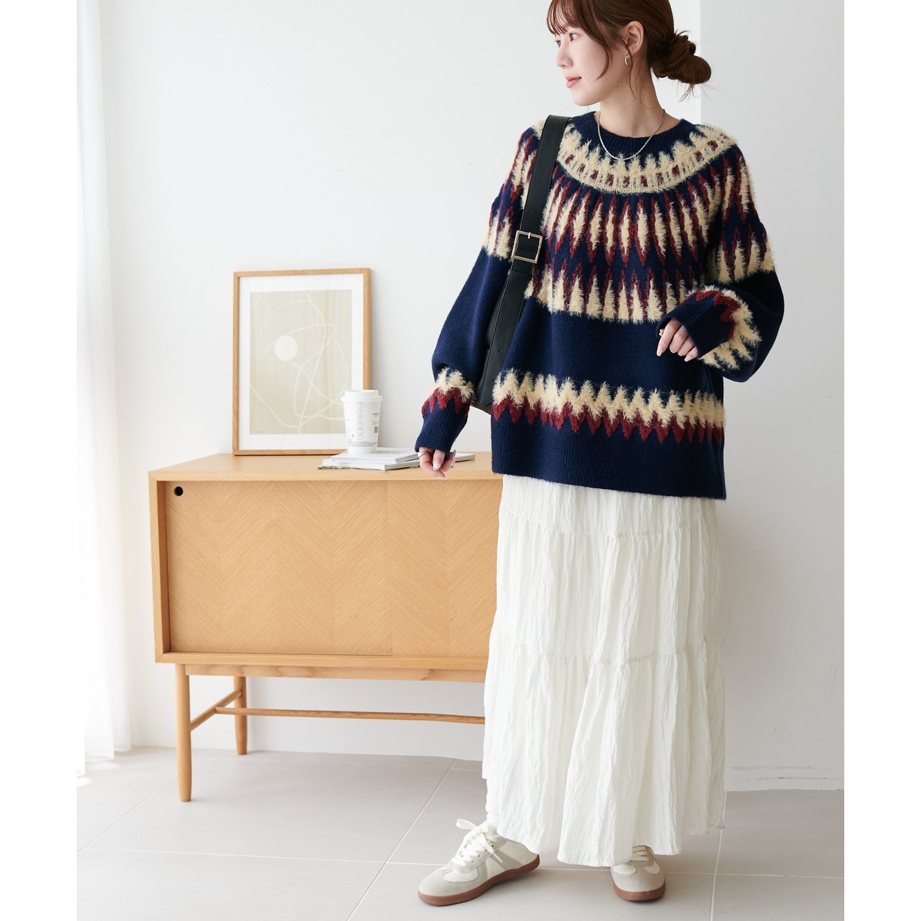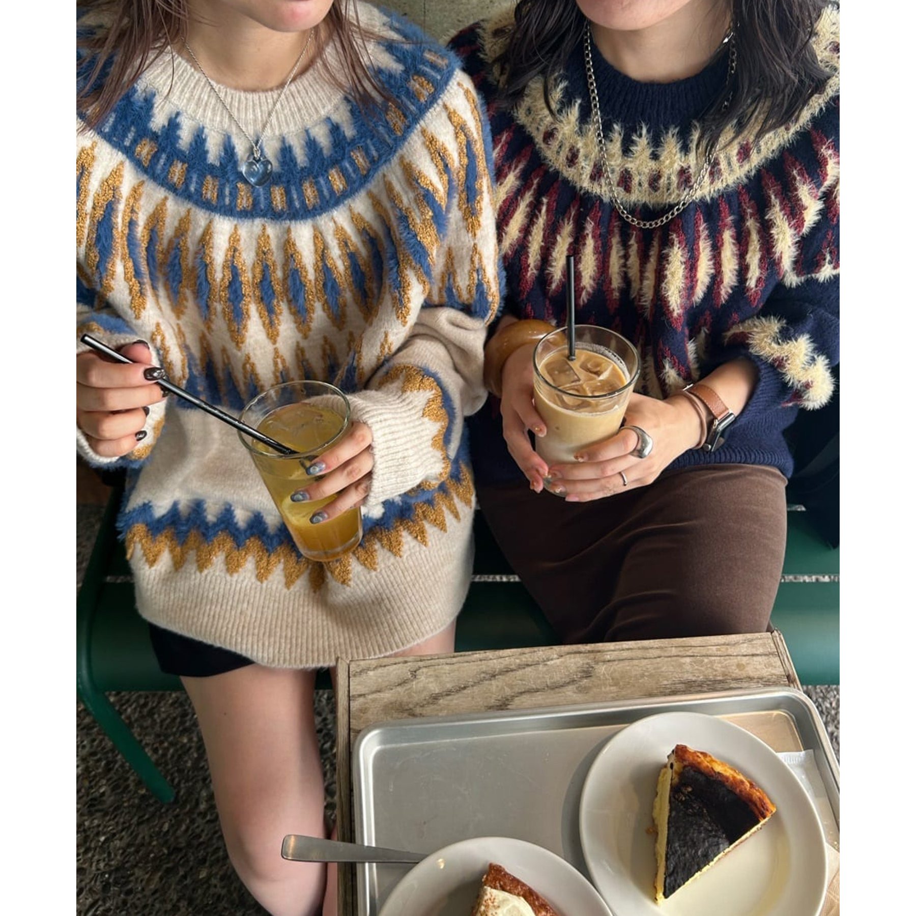 ノスタルジックな雰囲気の漂う求新柄ニット