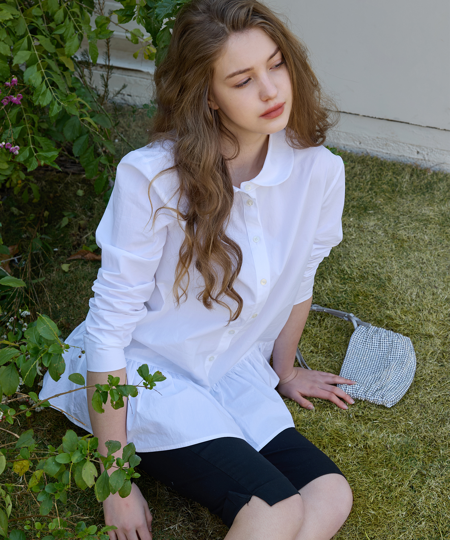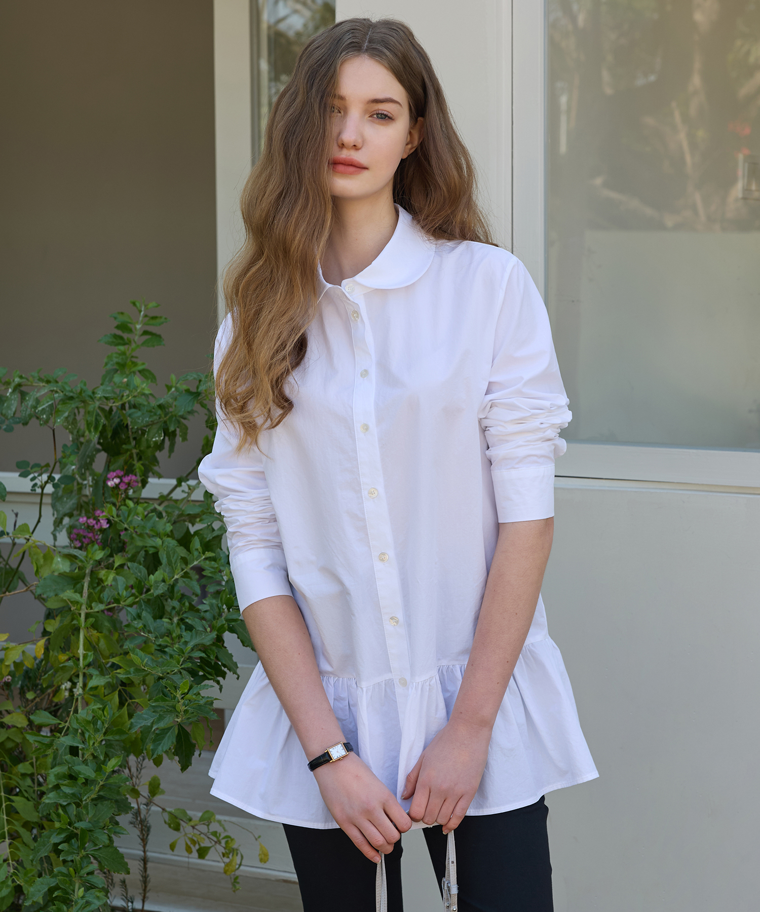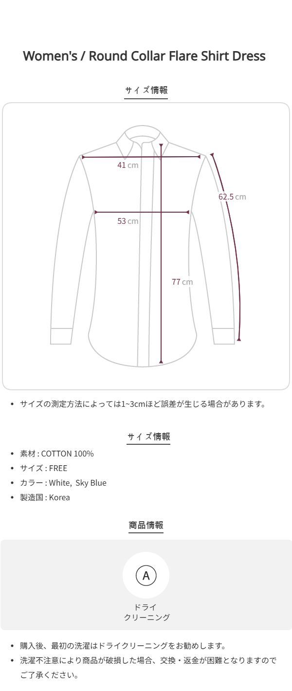 Round Collar Flare Shirt Dress (White)