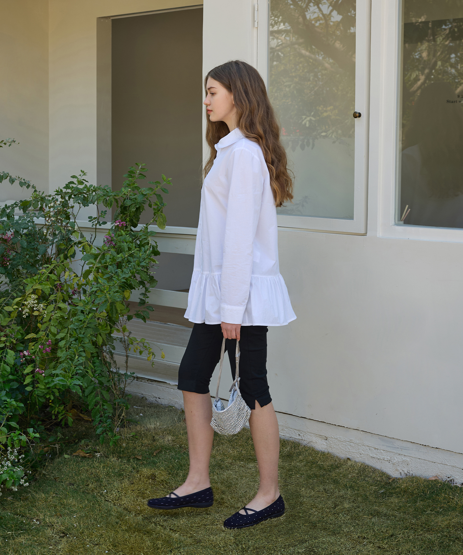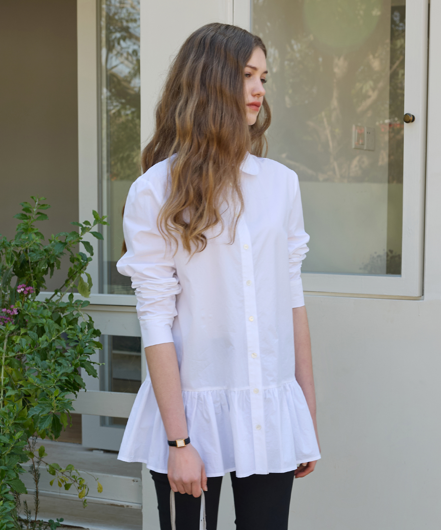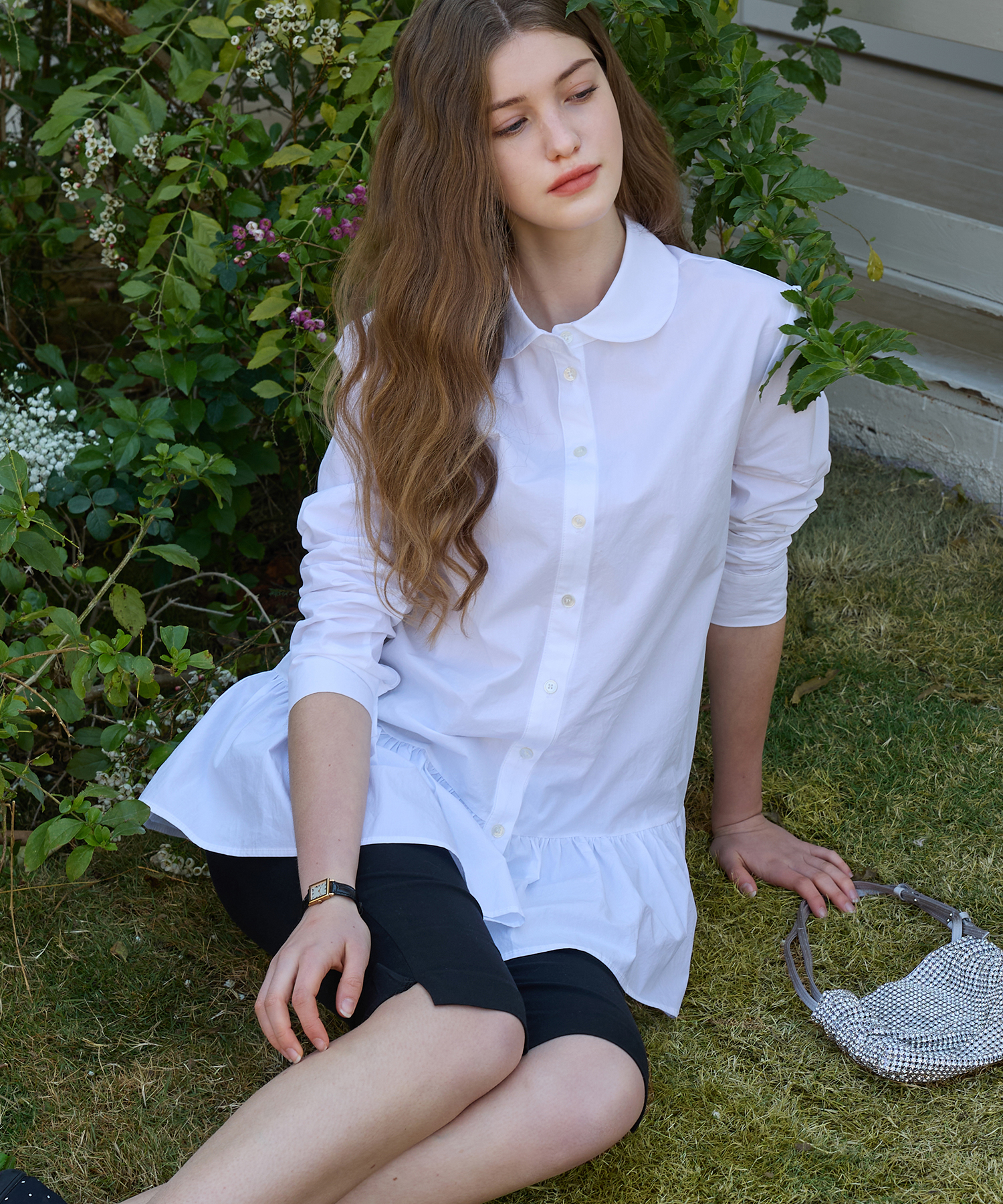 Round Collar Flare Shirt Dress (White)