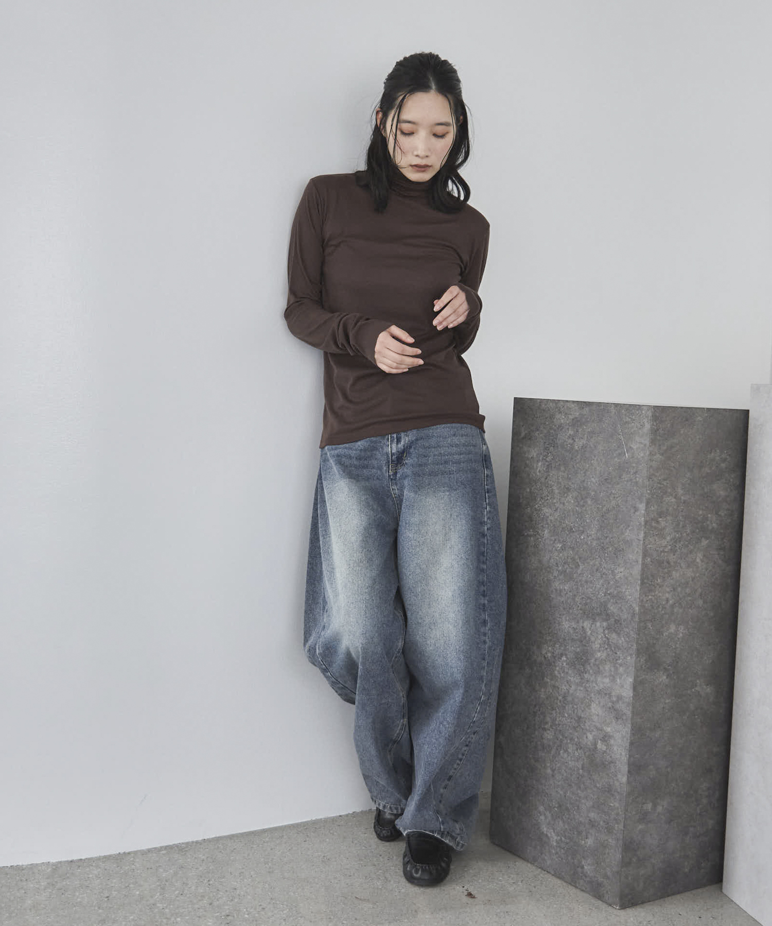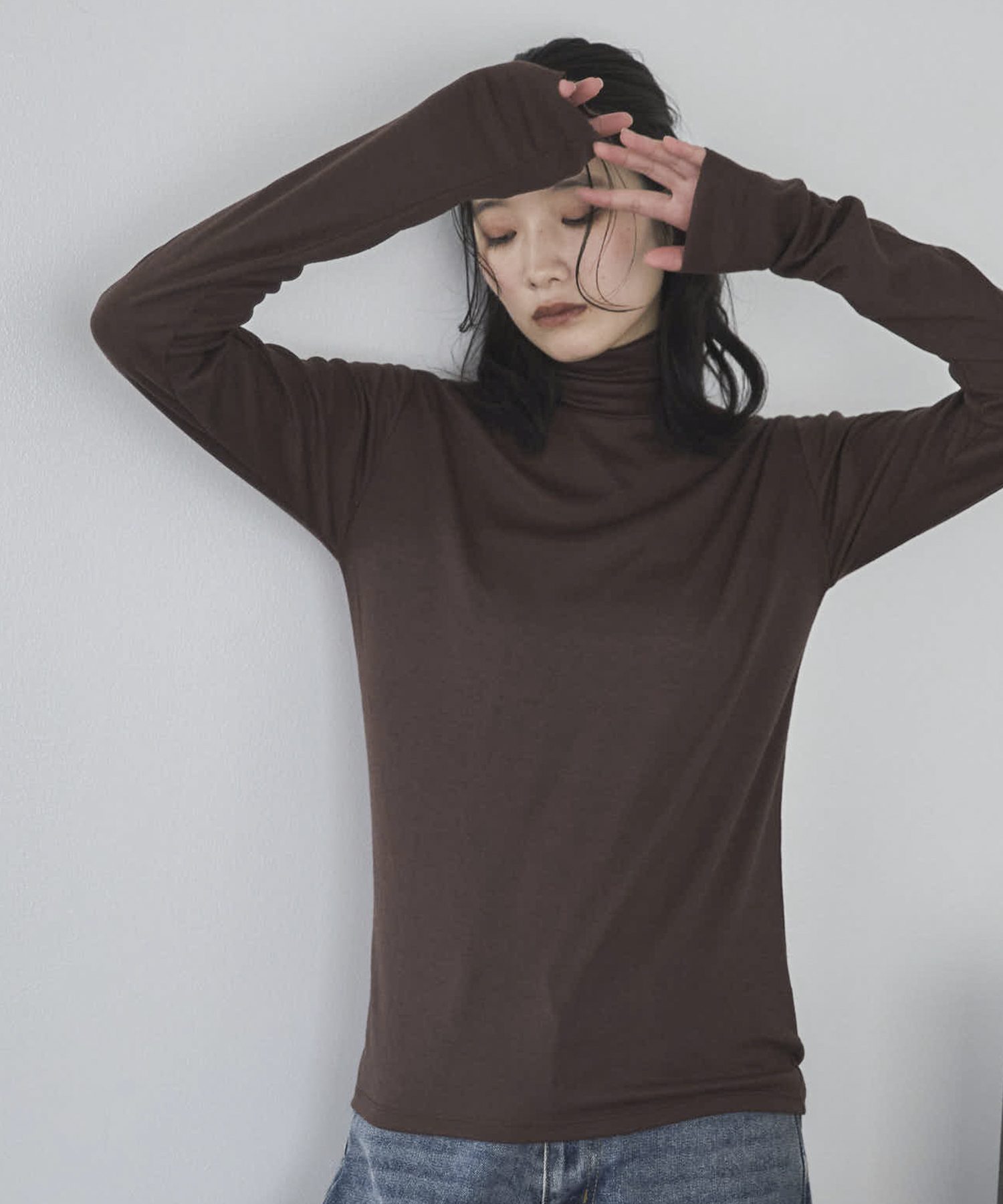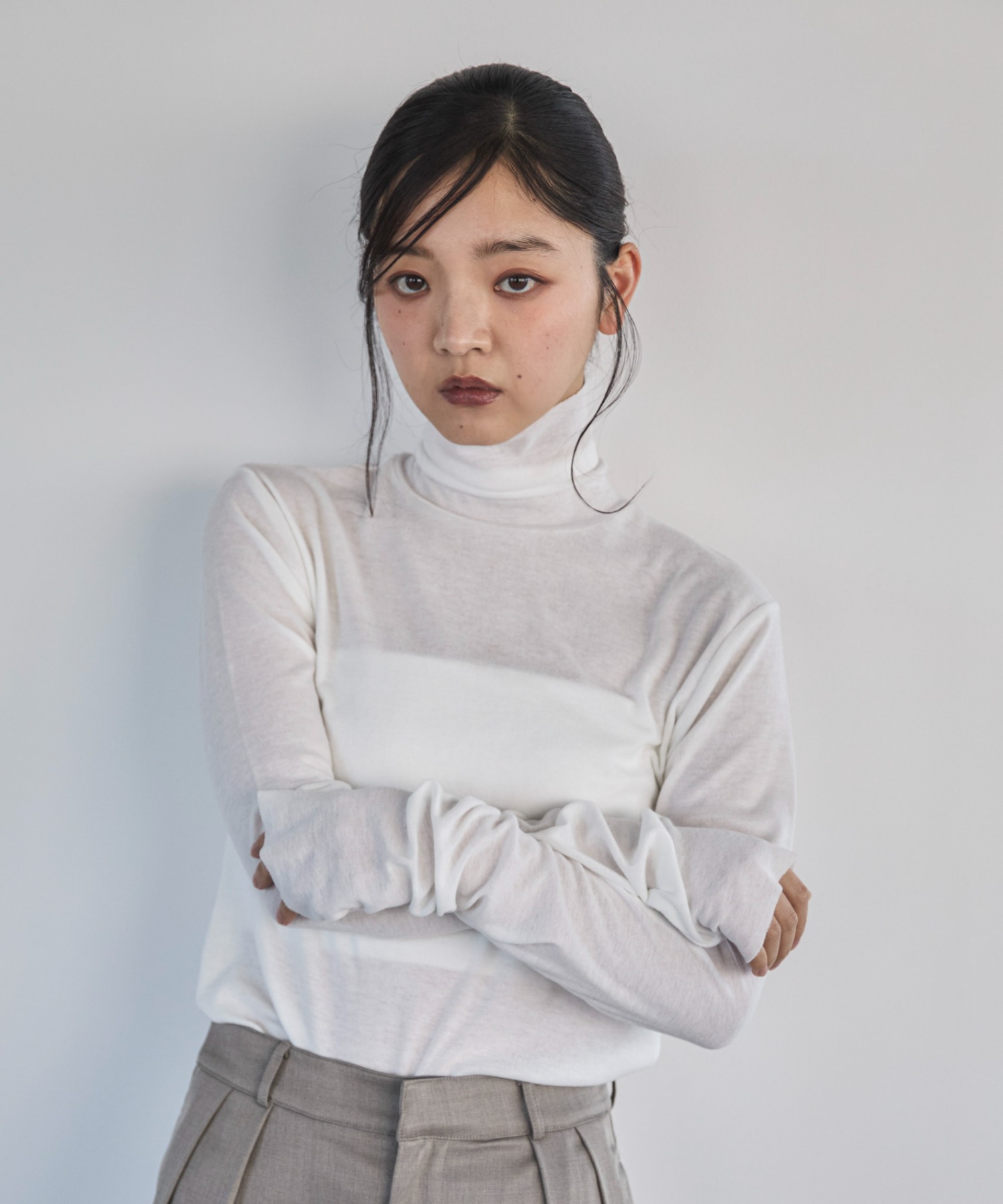 肌寒い日やレイヤードコーデをしたい時に何かと重宝するシアートップス。