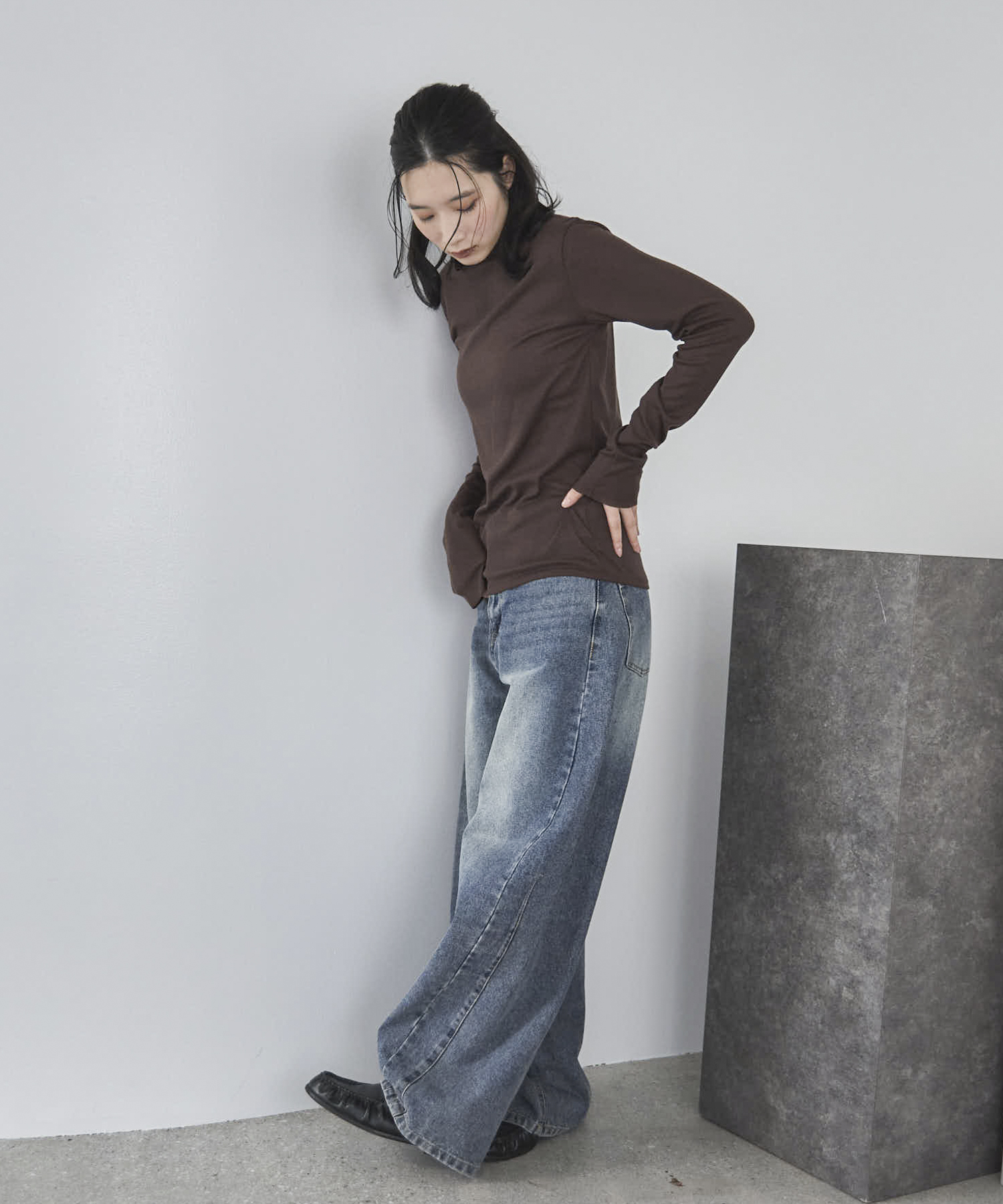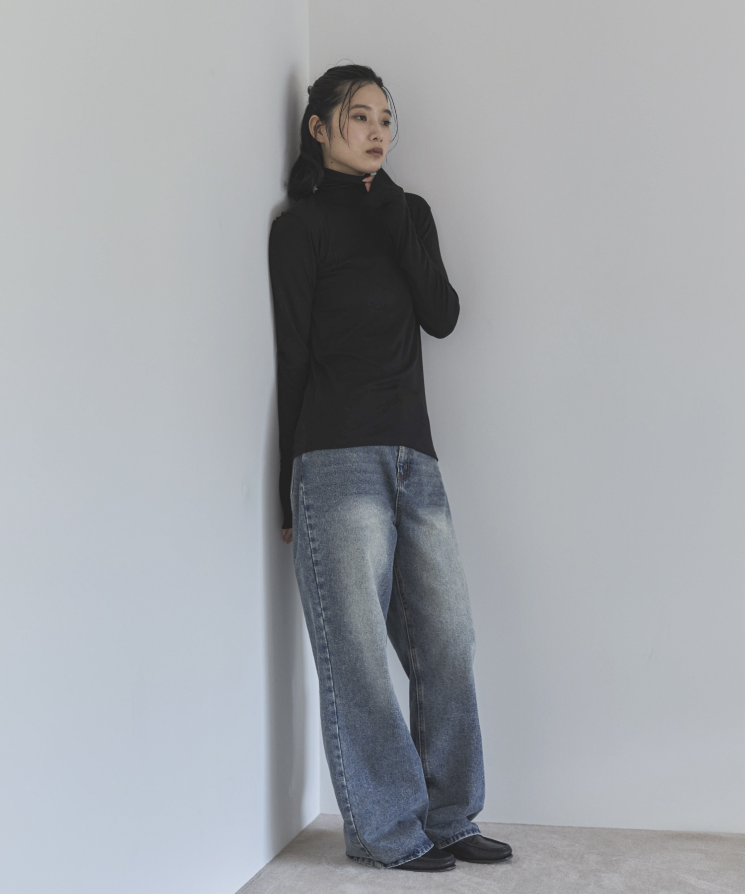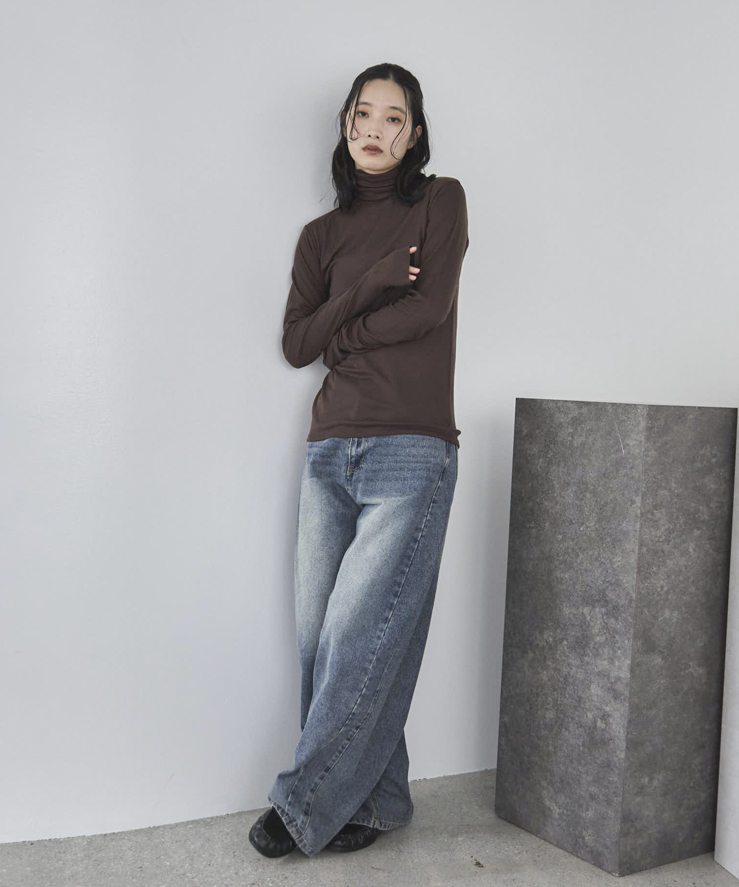 肌寒い日やレイヤードコーデをしたい時に何かと重宝するシアートップス。