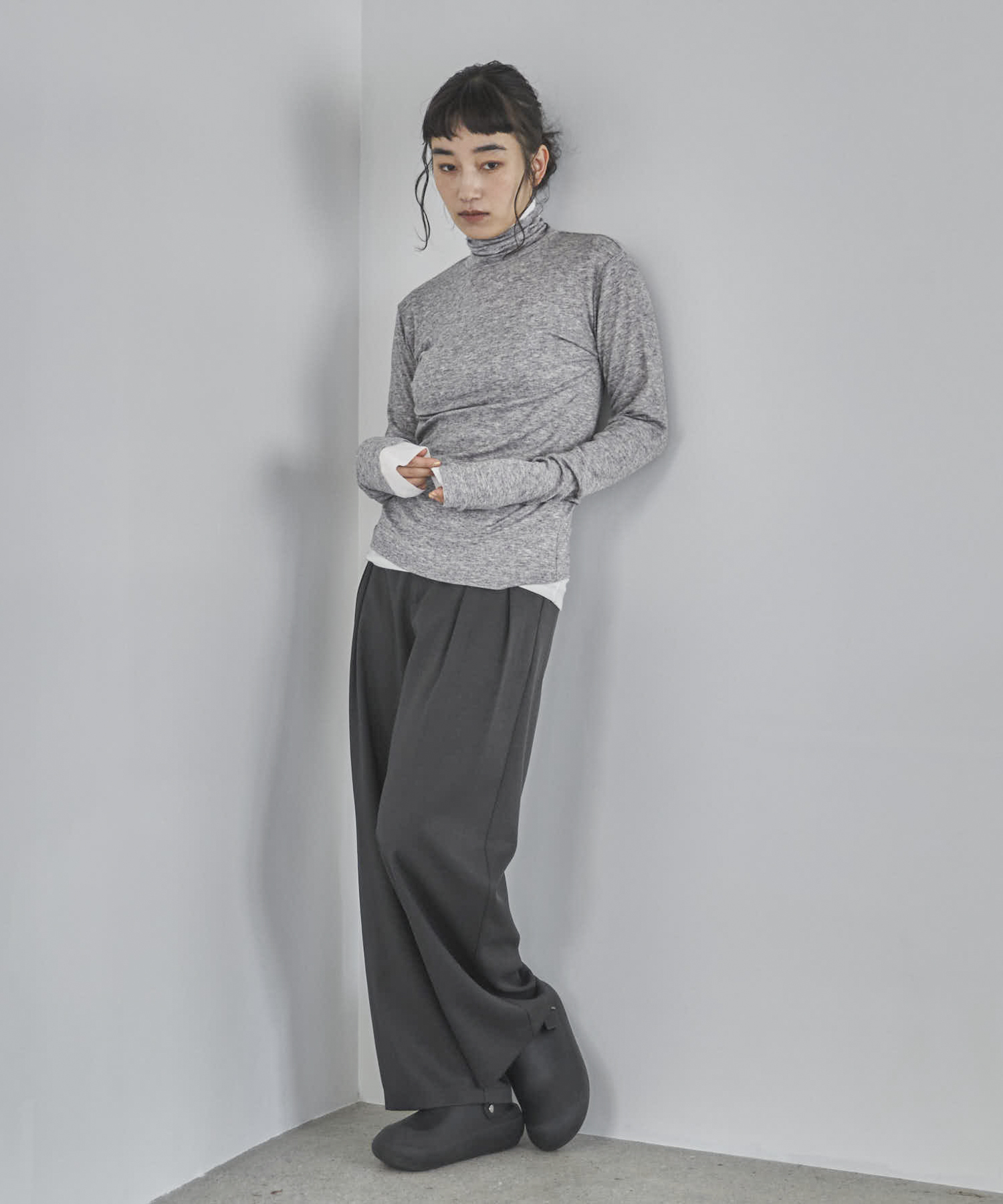 長い時期使える程よく薄手の生地感ですが、ウール混なのでじんわりと温かな肌当たり。