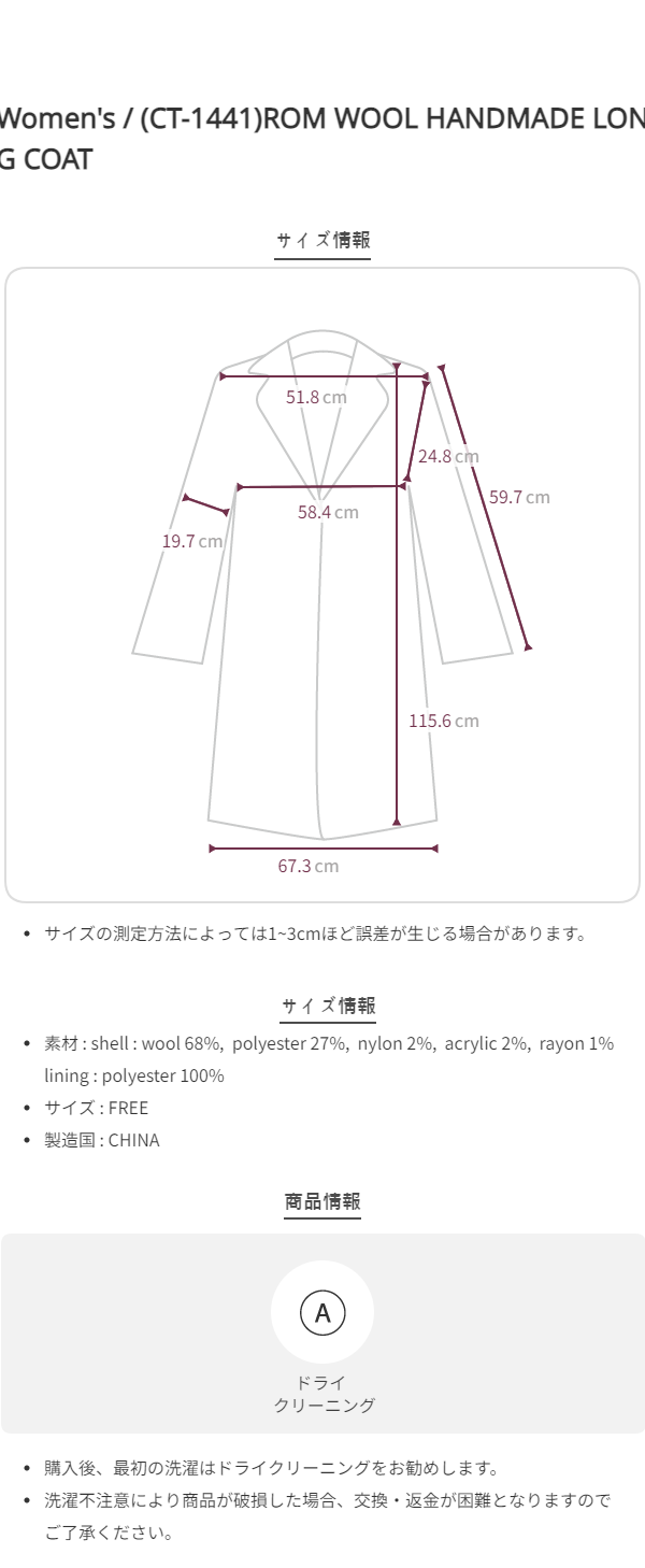 (CT-1441)ROM WOOL HANDMADE LONG COAT