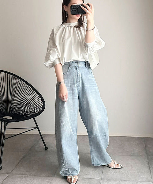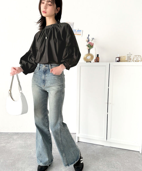 ボリューム袖はミニボトムスに合わせた時も華やかになります。