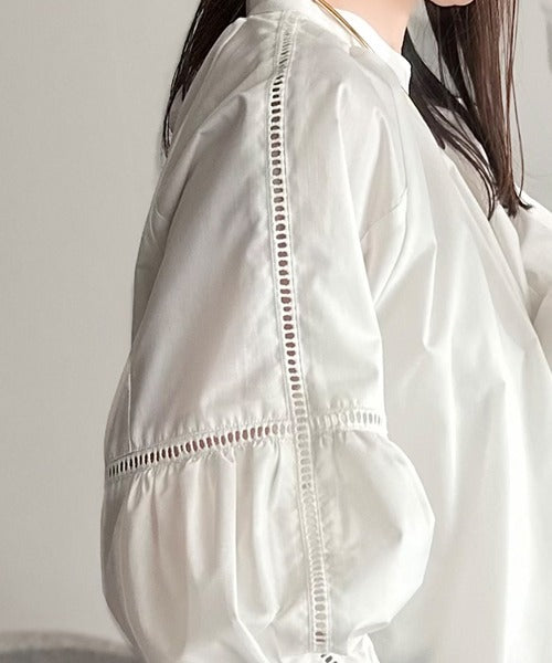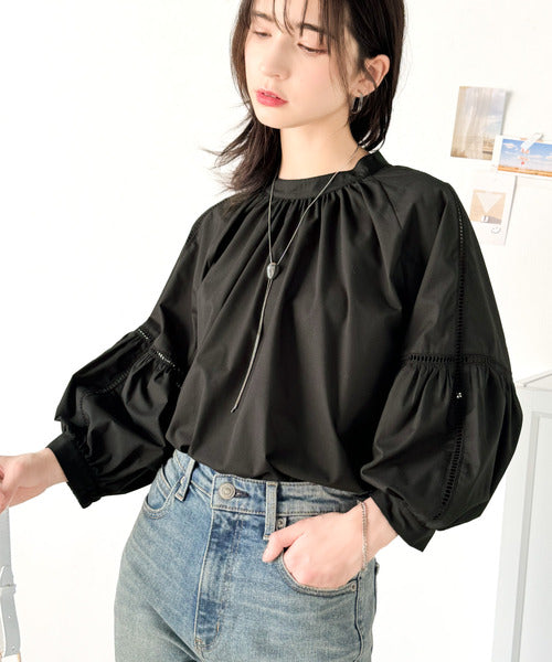 トレンド感のあるボリューム袖とレースのディテールが特徴の
