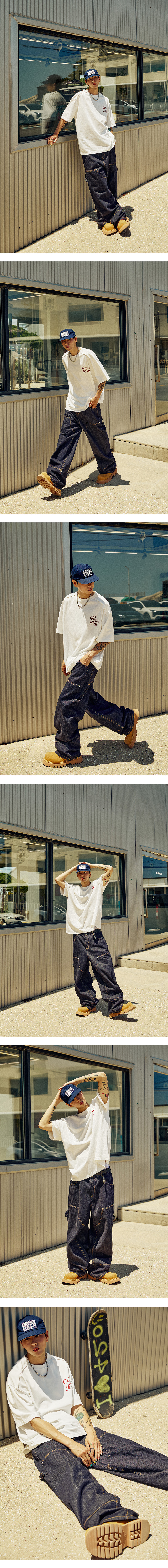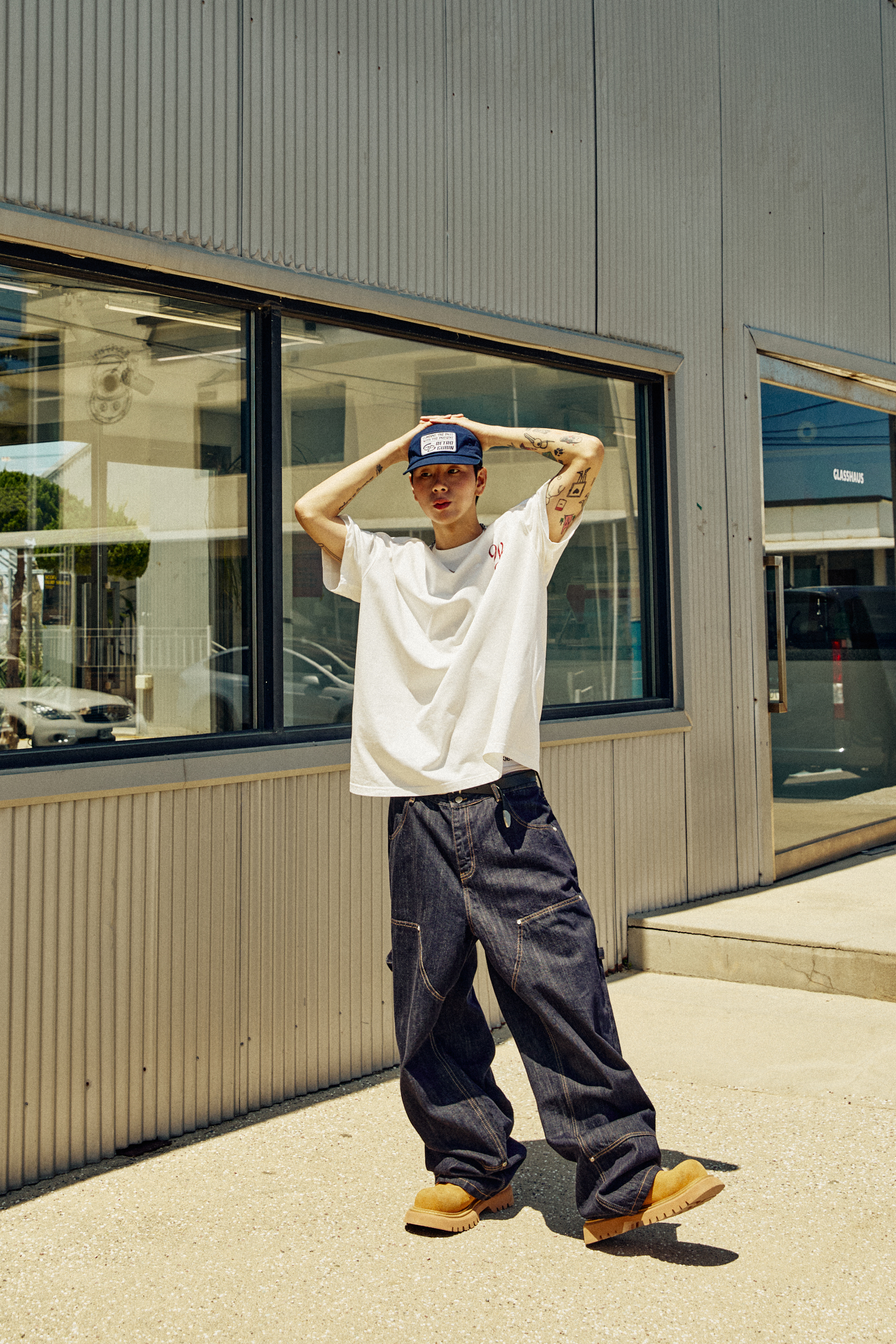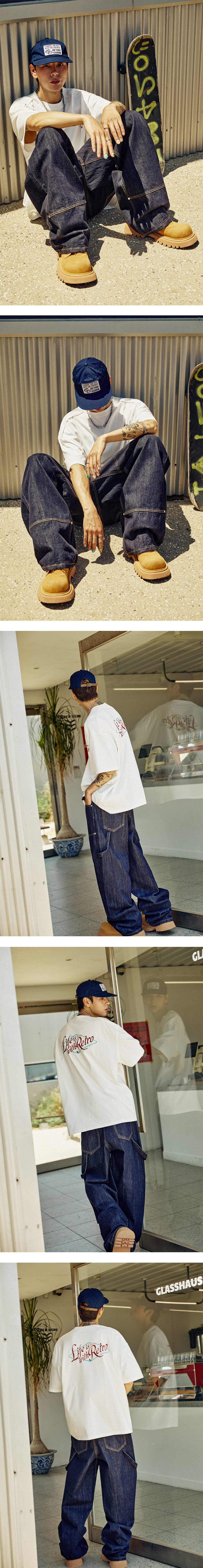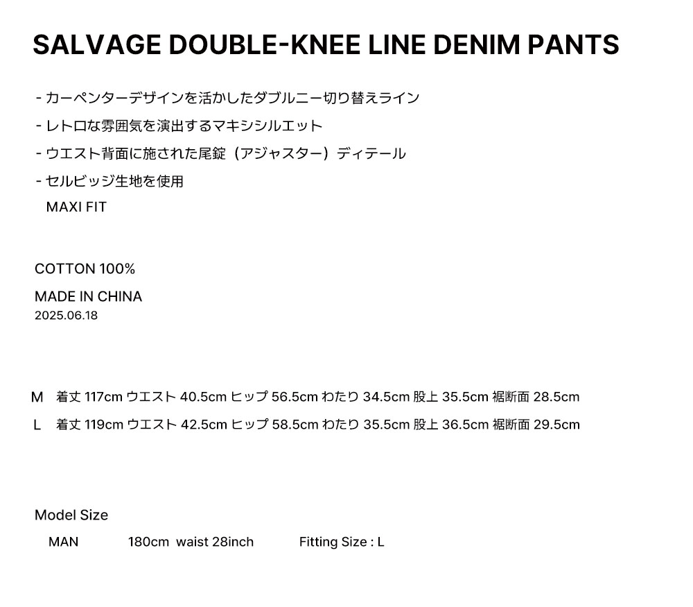 SALVAGE DOUBLE-KNEE LINE DENIM PANTS