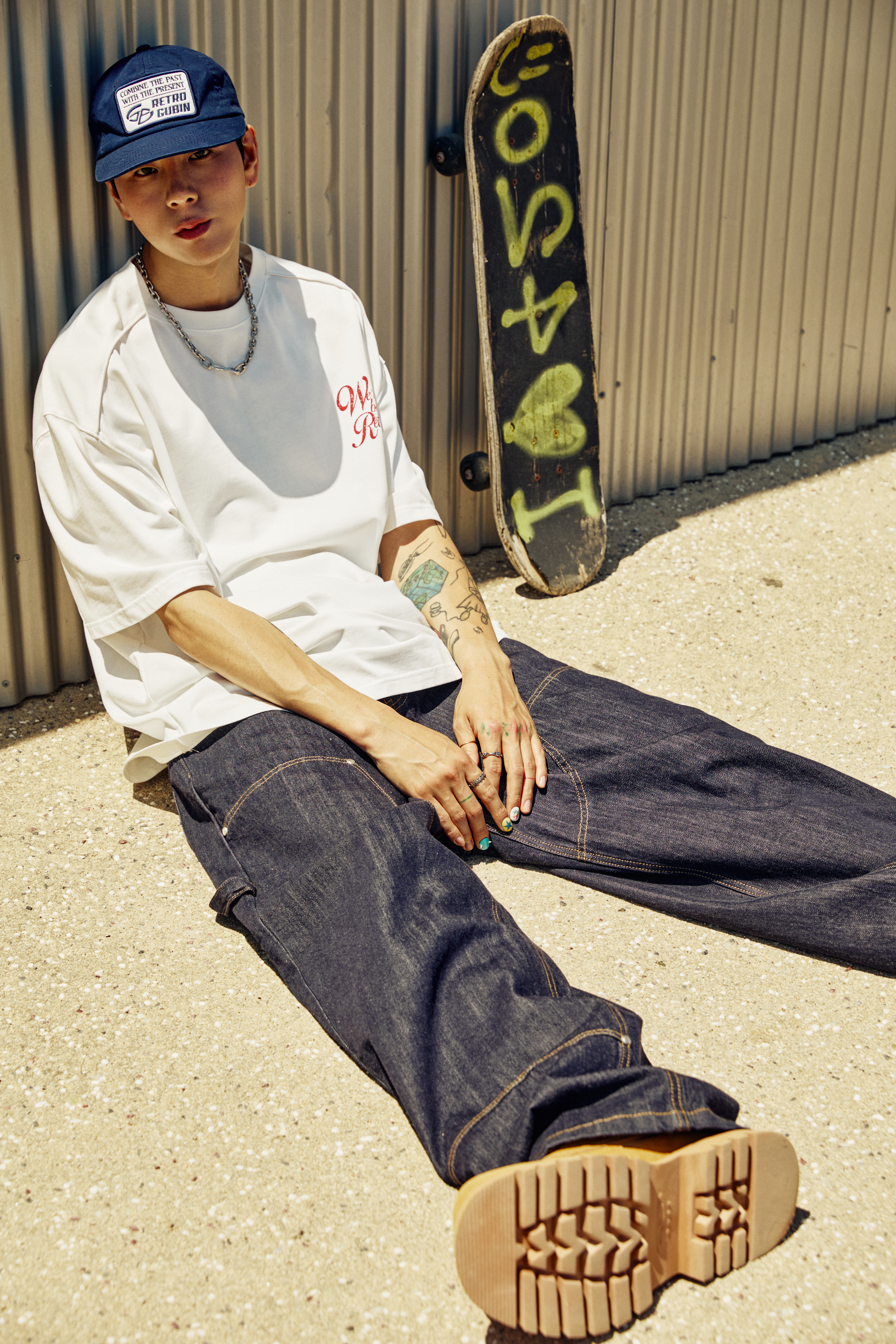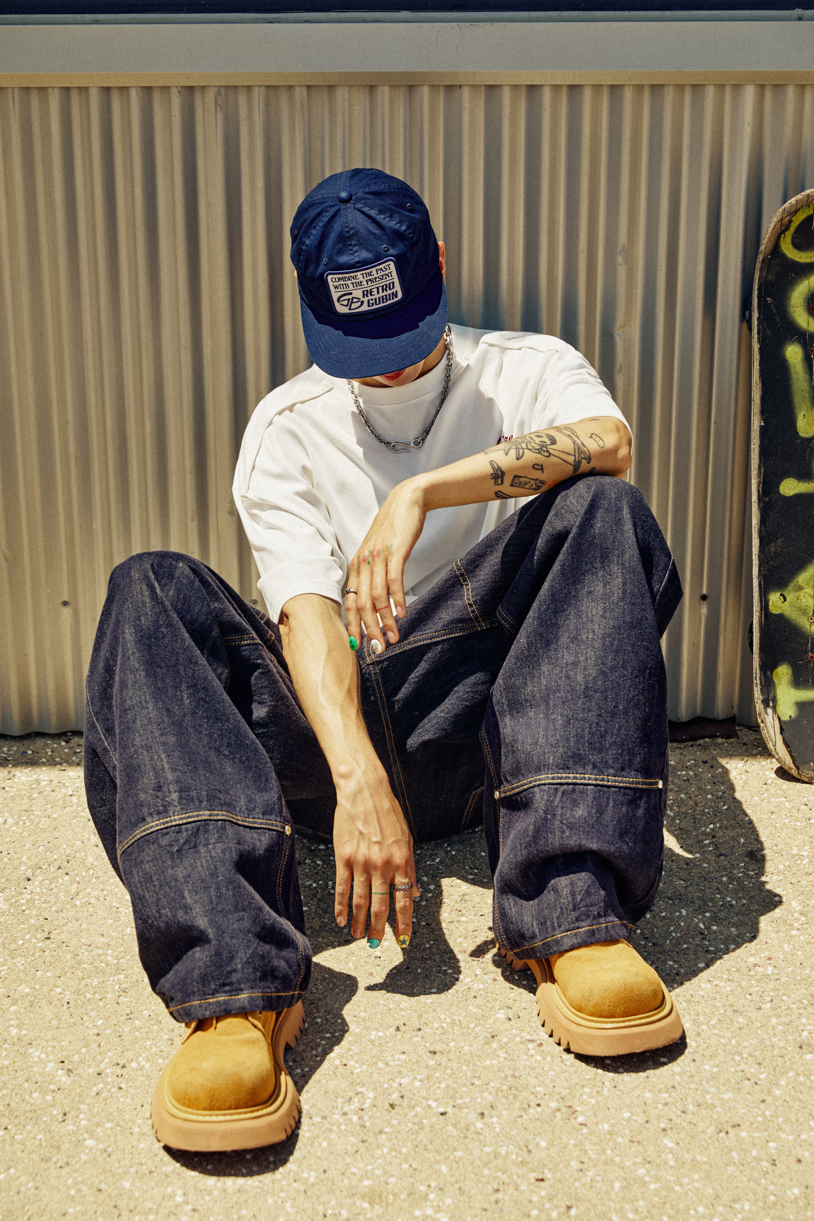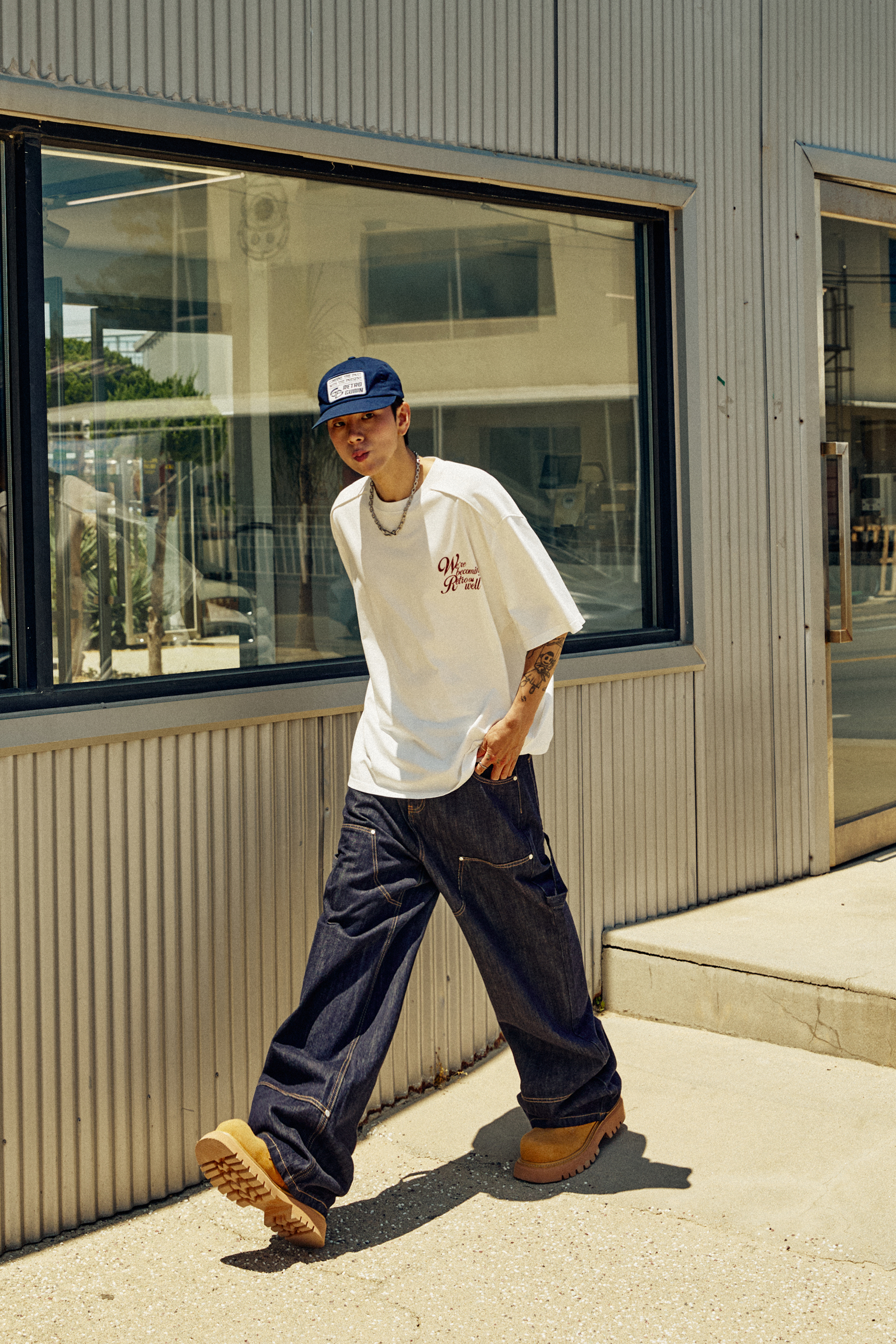 SALVAGE DOUBLE-KNEE LINE DENIM PANTS