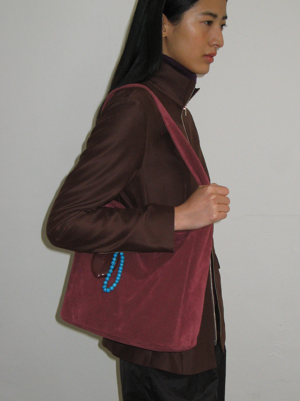 0008 Square Shoulder Bag_Suede Plum
