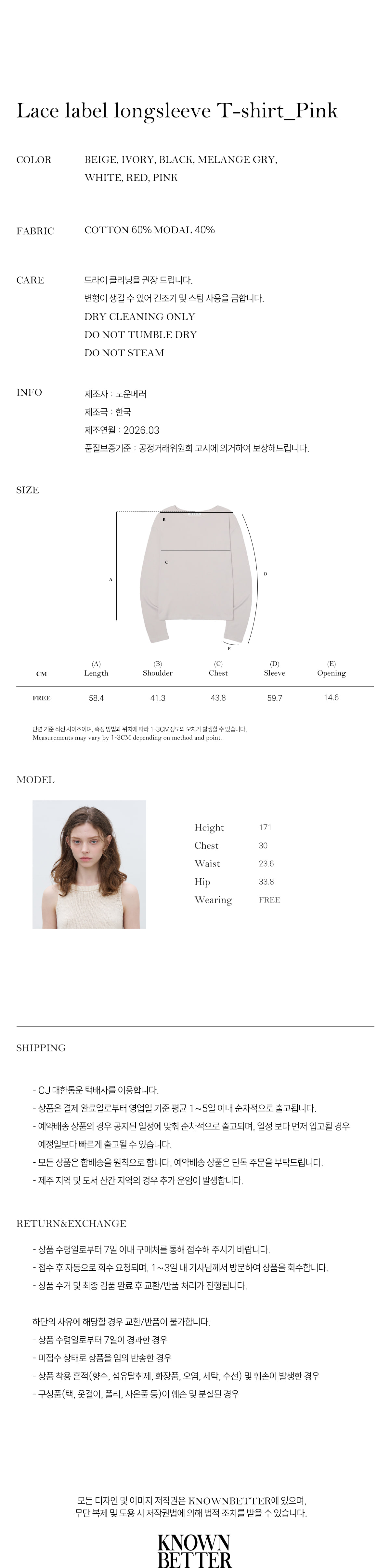 Lace label longsleeve T-shirt [KNSS07TS11]_Pink