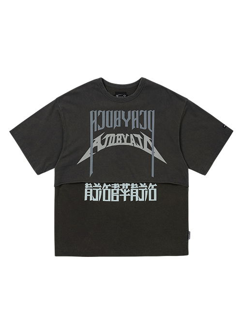 [PBA] Arch Logo Washed Layered T-Shirt [CHARCOAL]