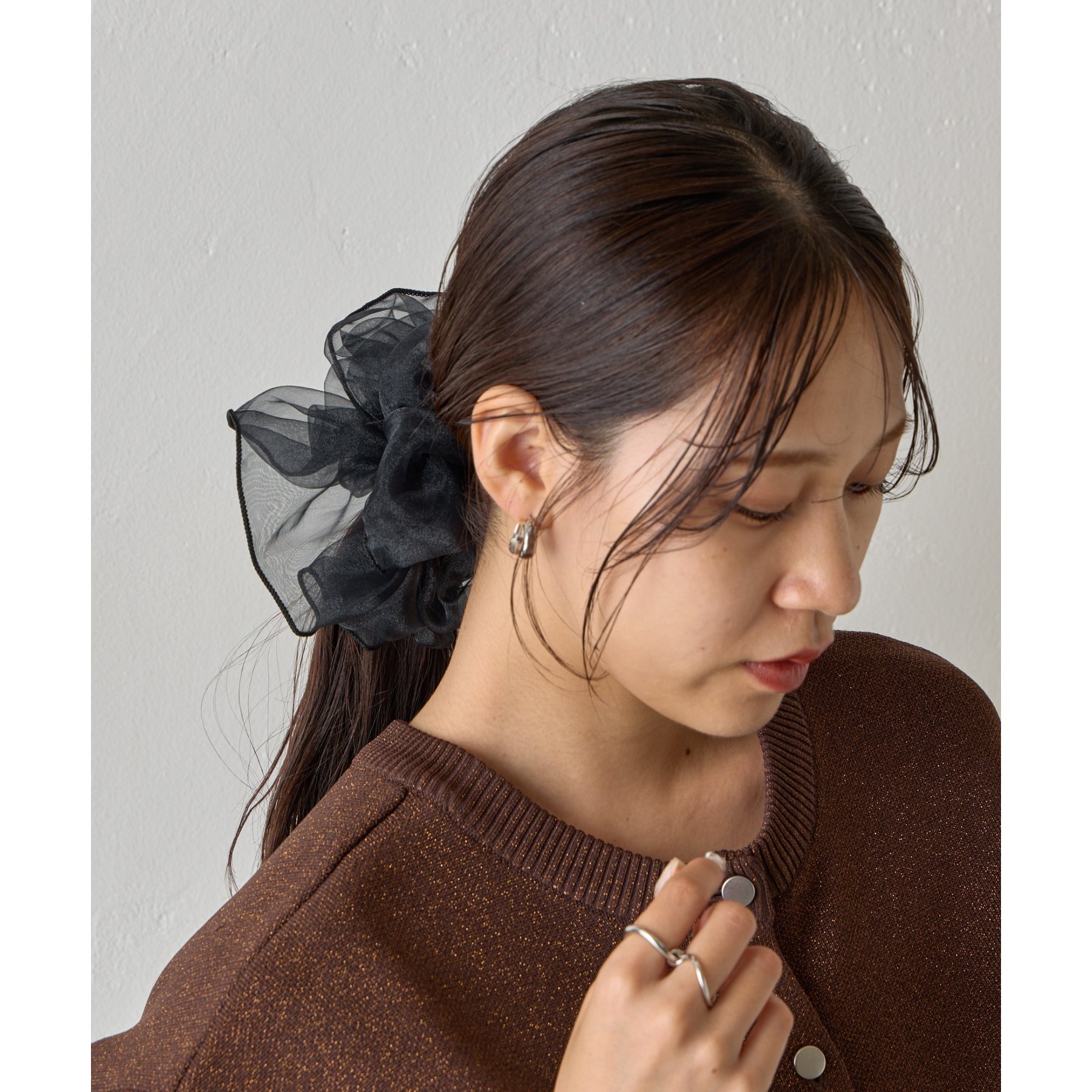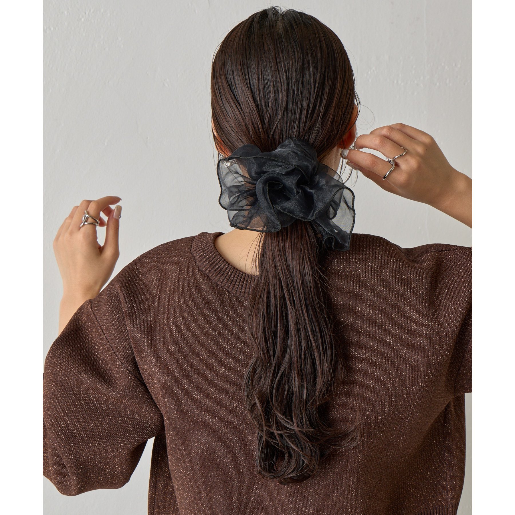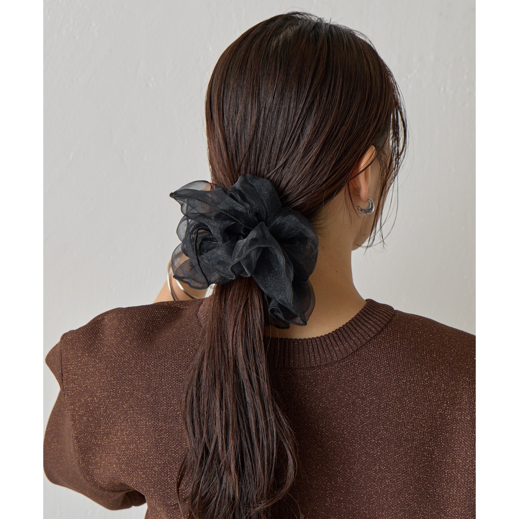 【ふんわり軽やか、シアー素材フリルシュシュ】