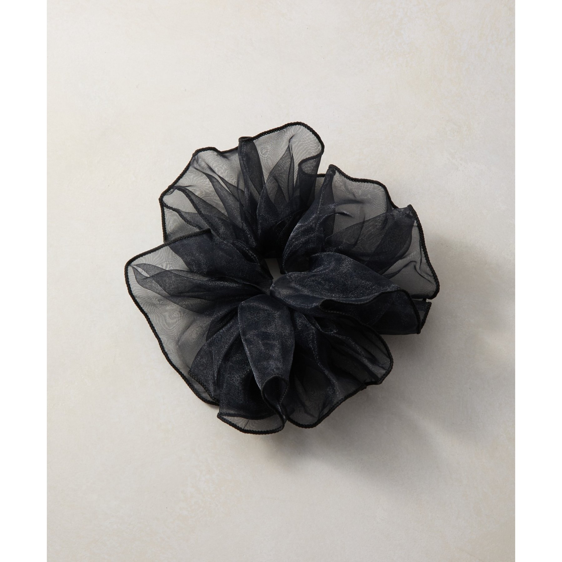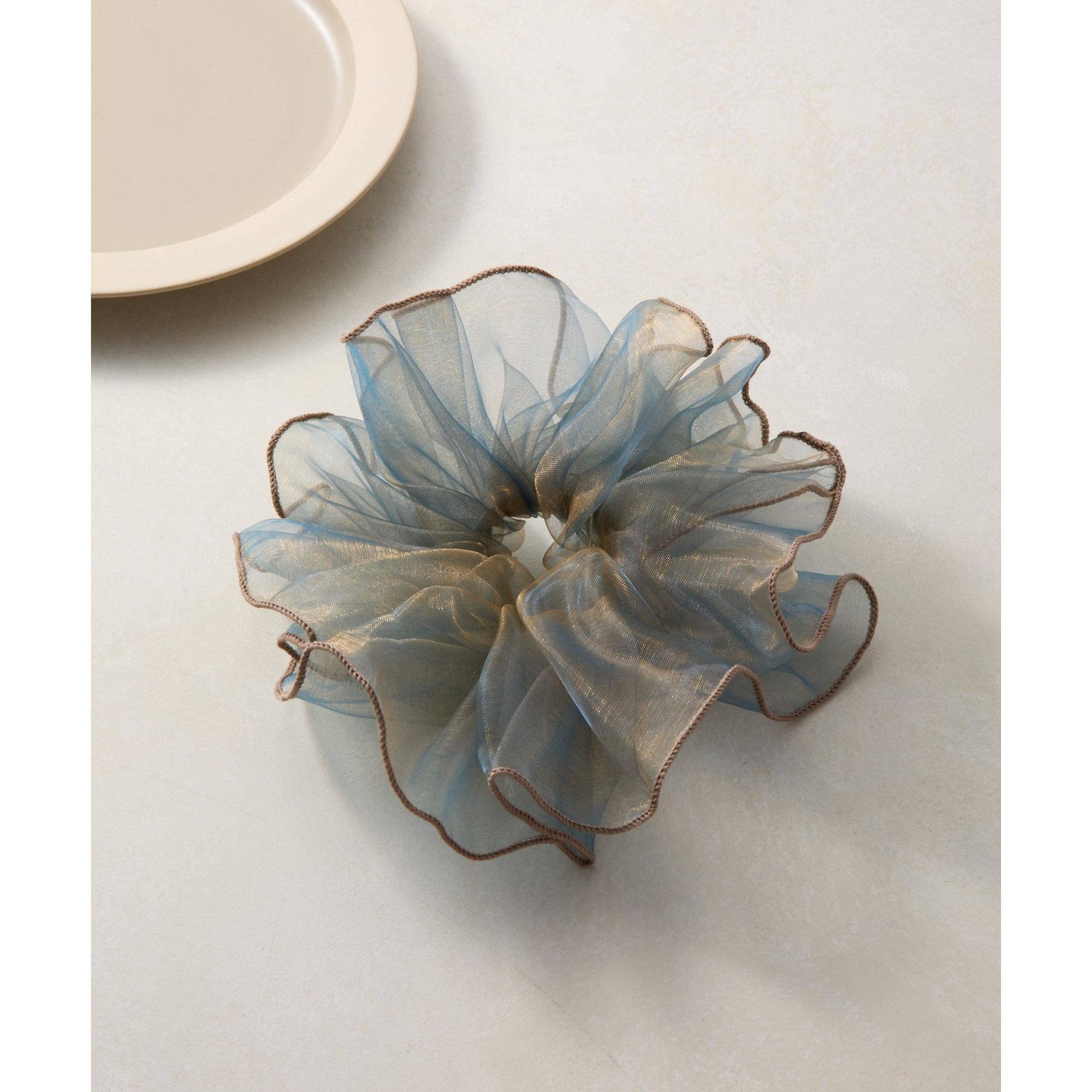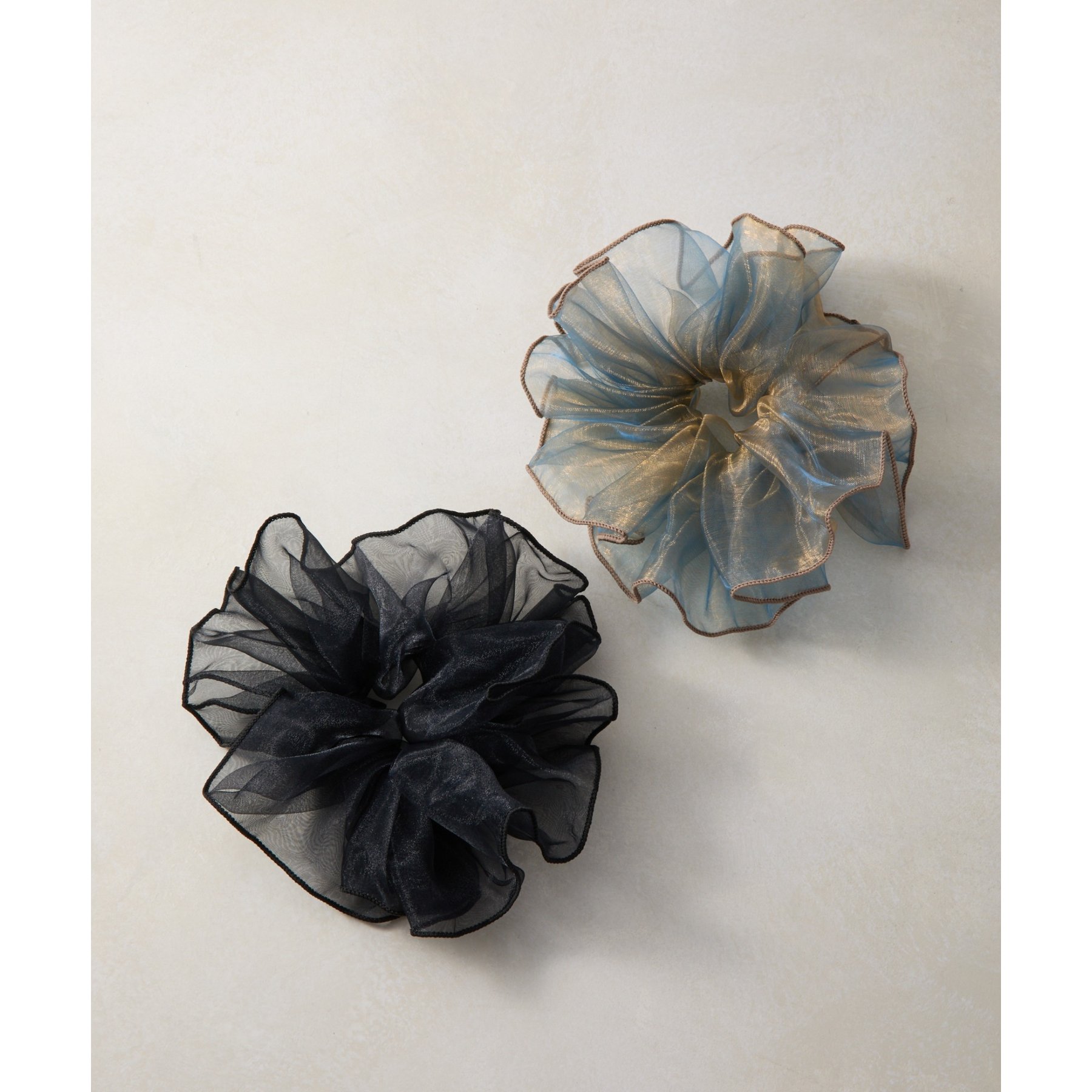 【ふんわり軽やか、シアー素材フリルシュシュ】